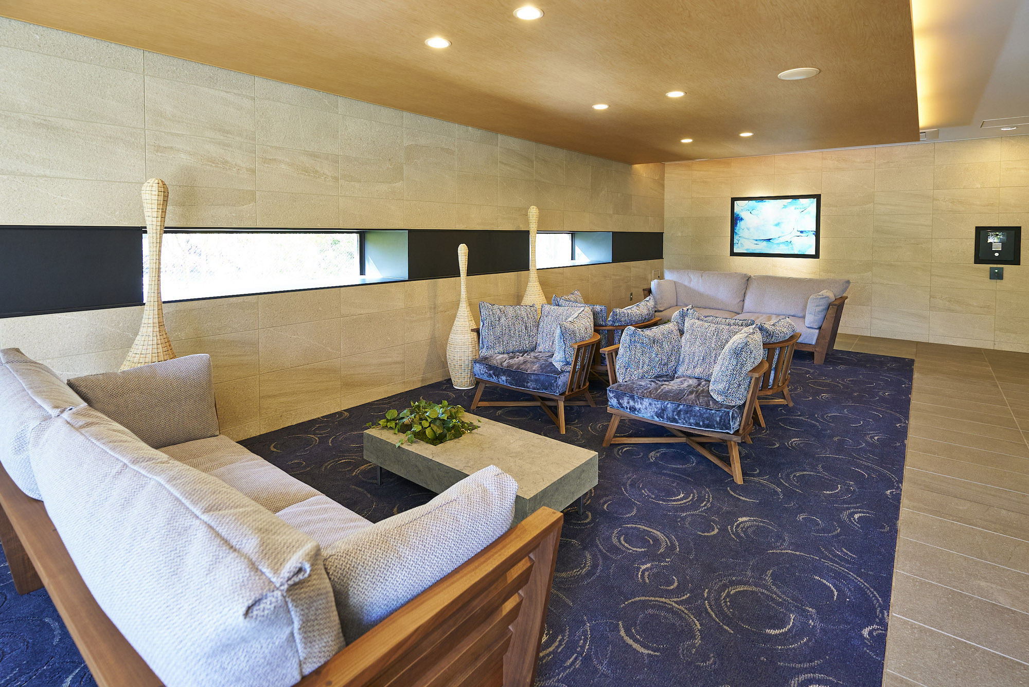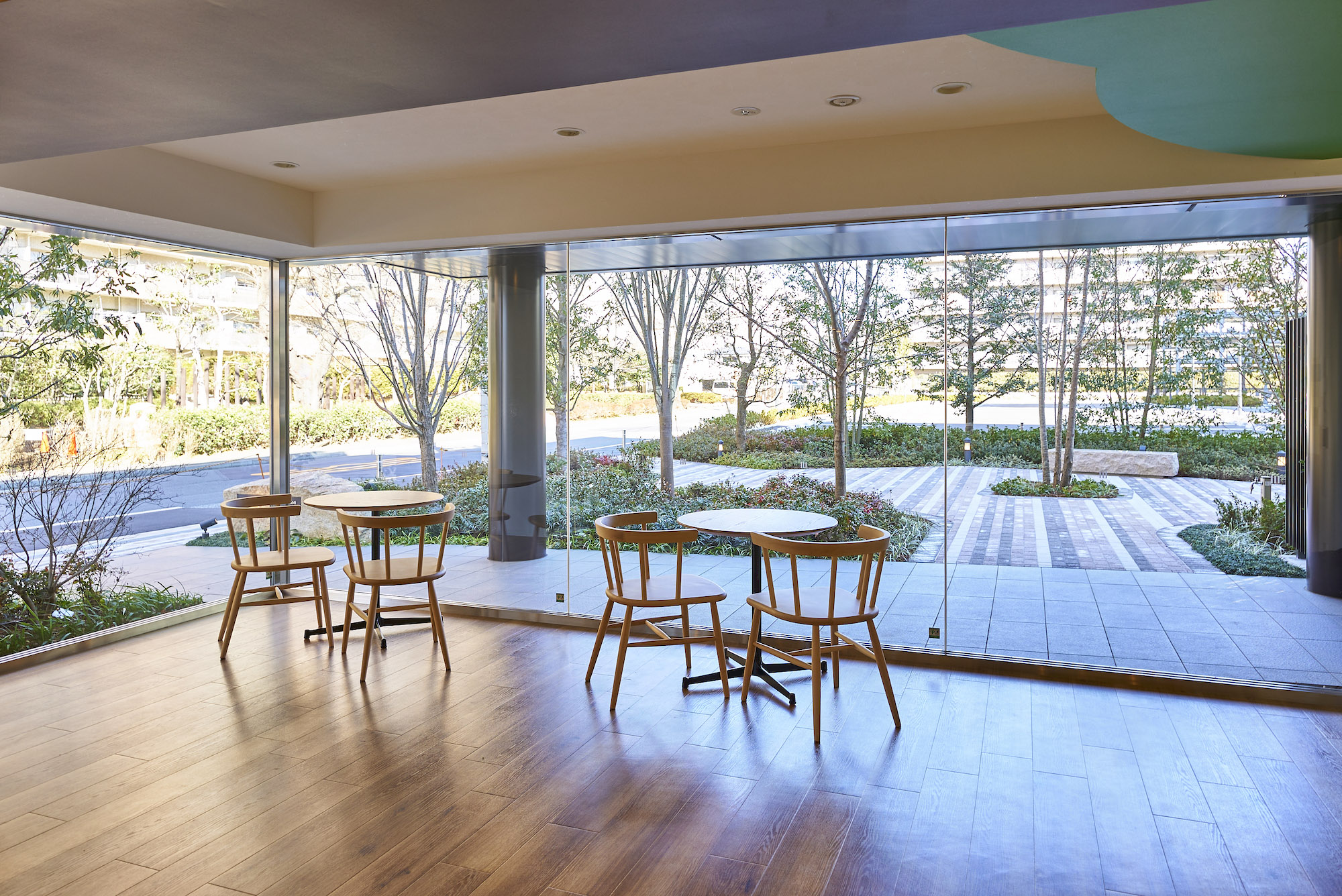 メインエントランスである「水のエントランス」は、インテリアやエッチングガラスのアイストップで「水」の印象を取り込んだラウンジ、モダンな水盤が印象的な「アクアガーデン」が設けられており、癒しの迎賓空間となっています。一方、「森のサブエントランス」では、森をテーマとして、コミューンガーデン(自主管理公園)や入居者専用のプレイガーデンがデザインされた、緑と触れ合う集いの空間です。広さ100㎡のキッズルーム兼集会室も併設されており、樹々の形を模した天井やインテリアが、窓いっぱいに広がる外部の緑と調和して、くつろぎの空間を創り上げています。さらに、屋上には昭島の広大な空と開放的な景色を存分に味わうことができる「スカイビューテラス」を完備。「パークホームズ昭島中神」には、日常をもっと豊かに暮らすためのさまざまな安らぎの共用空間が用意されています。