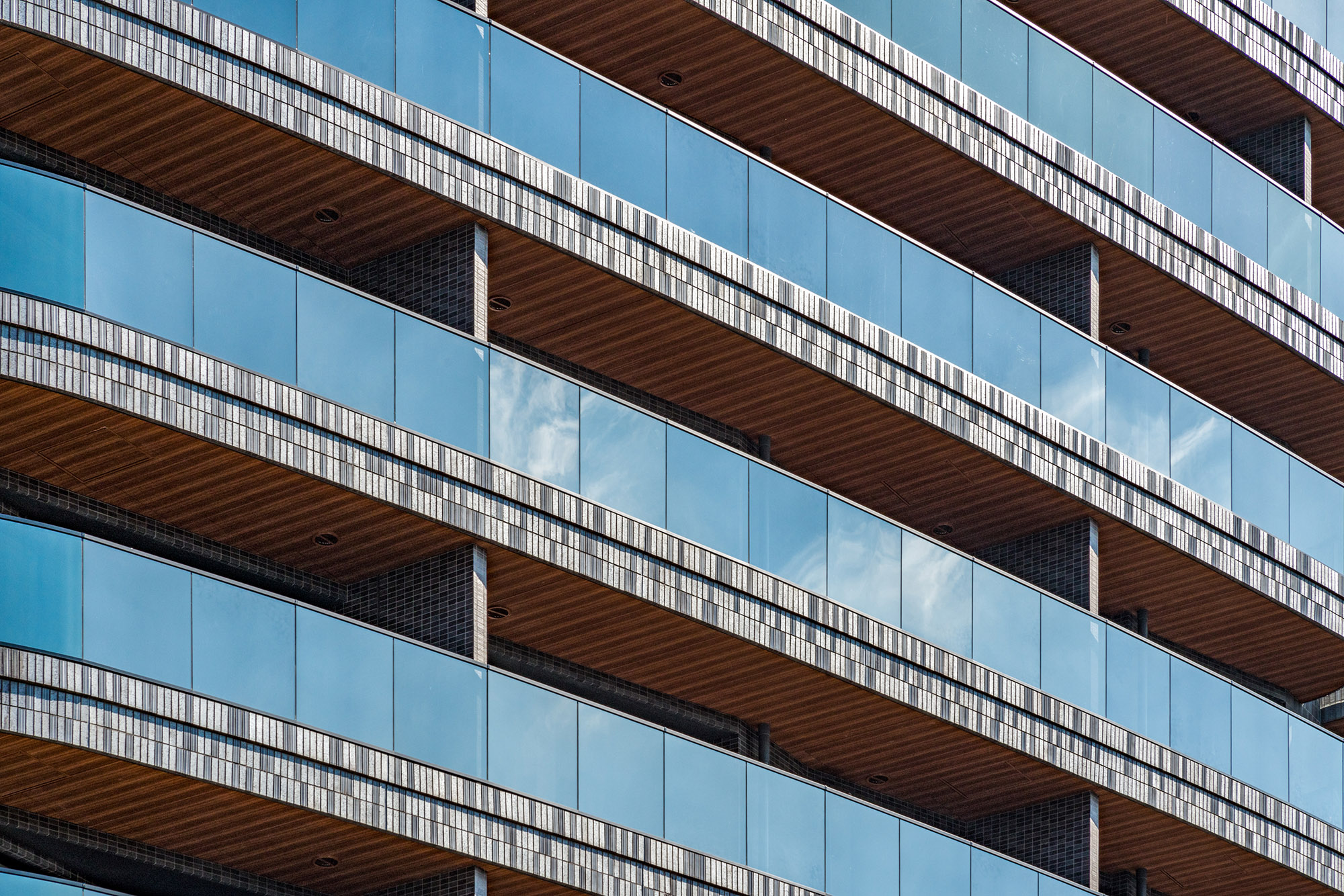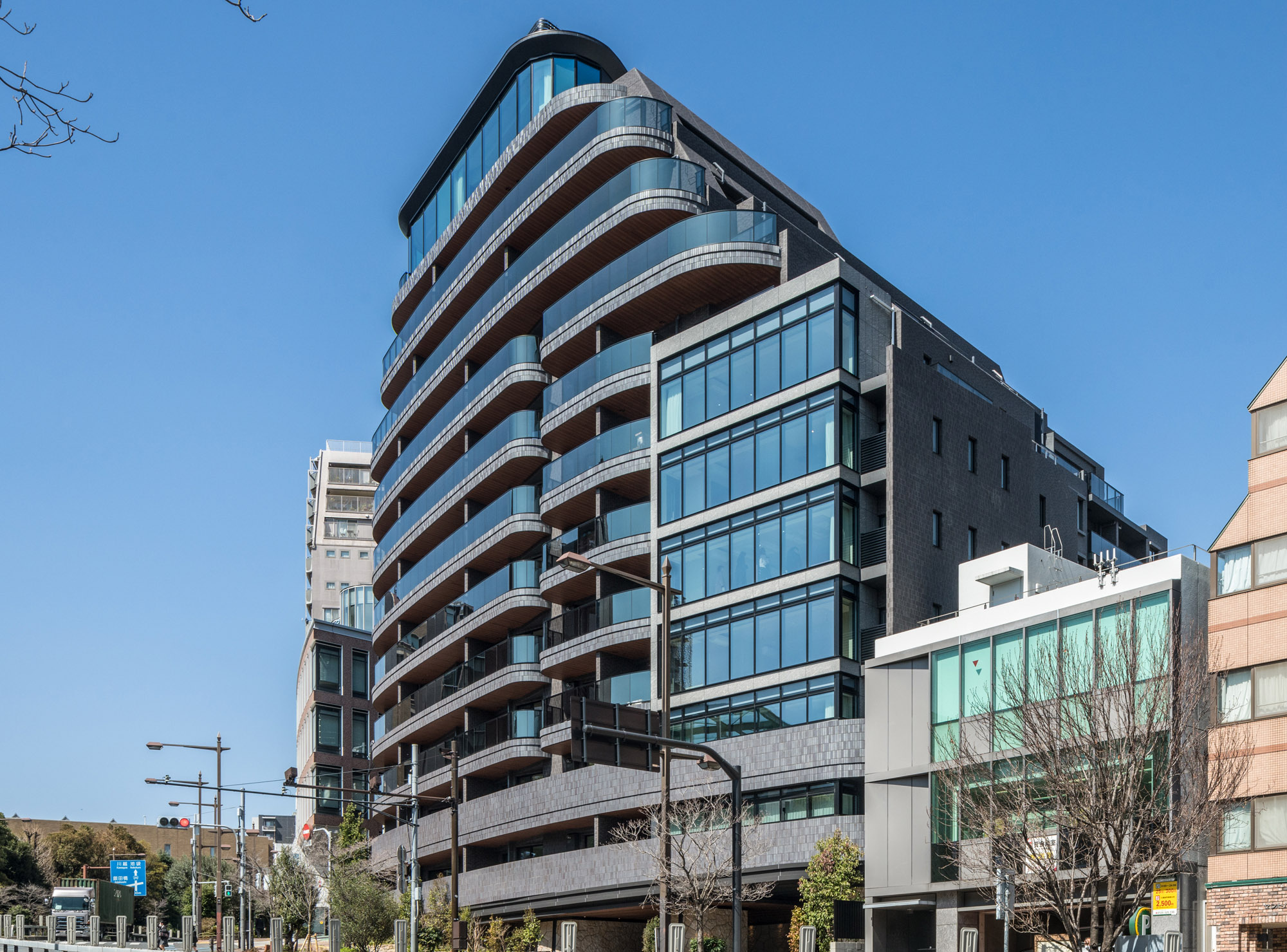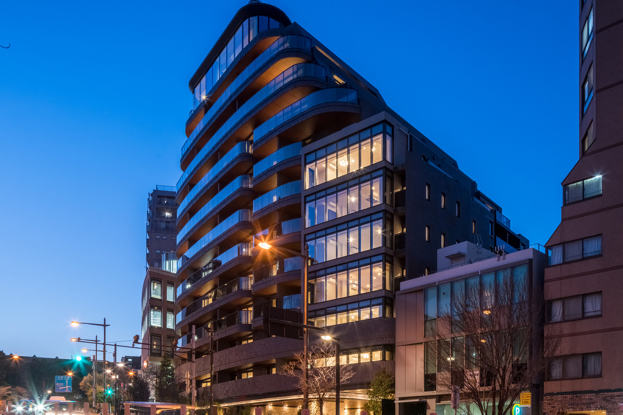 新しい文京邸宅を演出するのは、こだわりを尽くした、フォルムとマテリアル。ファサードを構成するのは、曲線と直線。優美な印象と先進の表情を調和させています。マテリアルにおいても、味わいのあるせっ器質のタイルとシャープな反射ガラスを使用。異なる主張をひとつのカタチとして定着させることで、単調な構成では描くことのできない、奥深さを醸成しています。時間の経過とともに、風合いが増し、愛着が深まっていく一方、エッジィなイメージを保ち続け、日々新しさを感じられる邸宅が表現されています。
