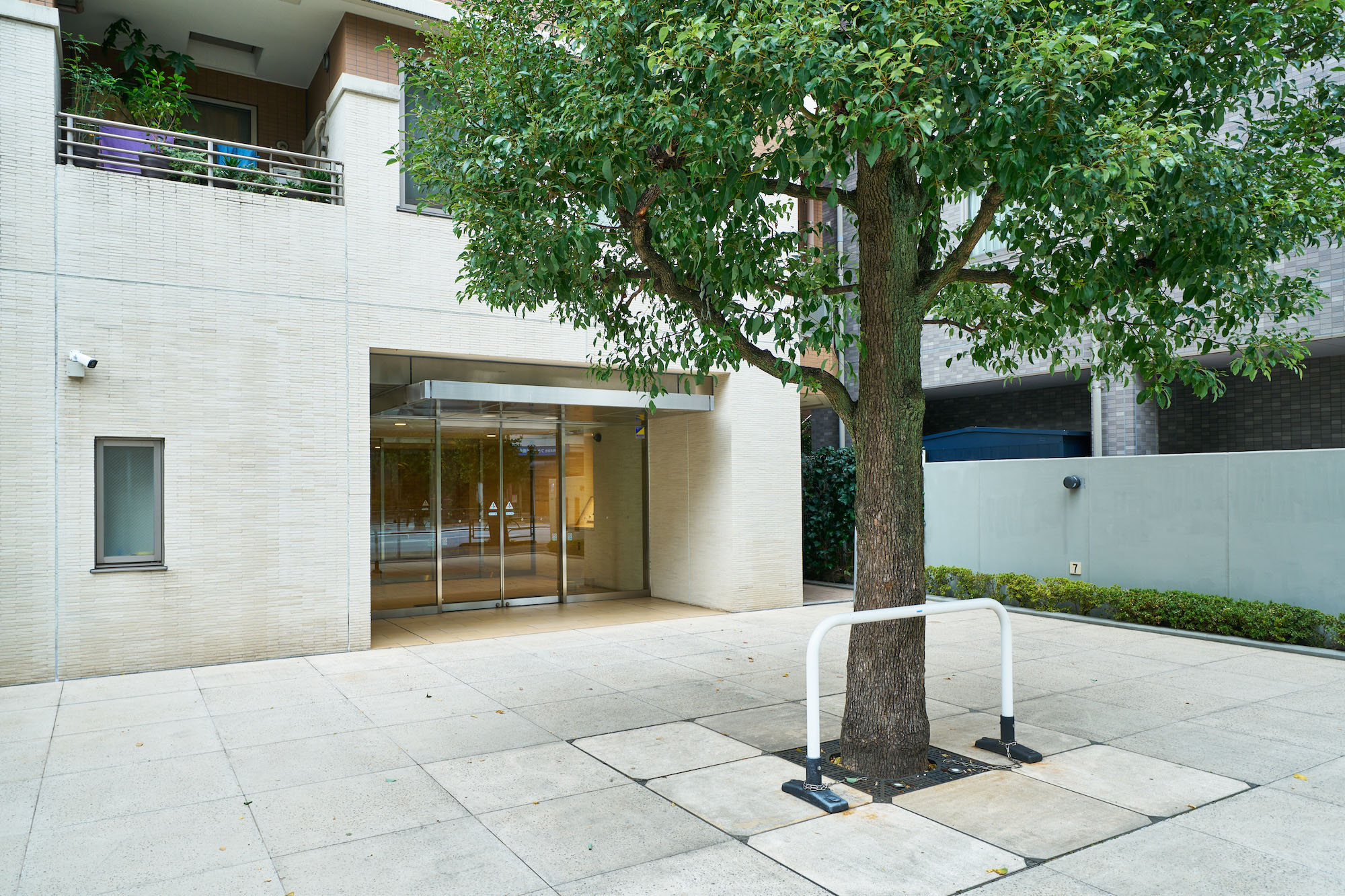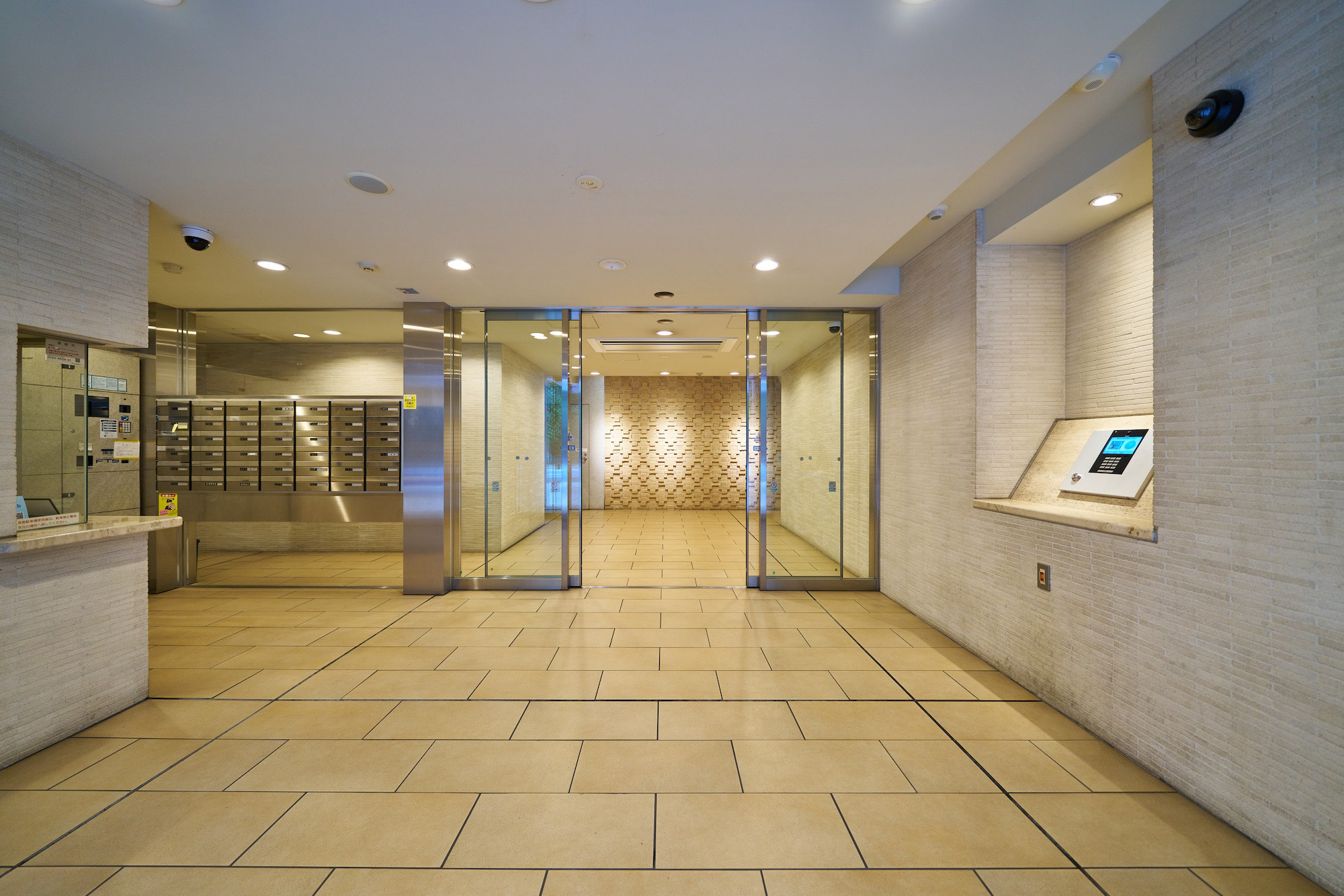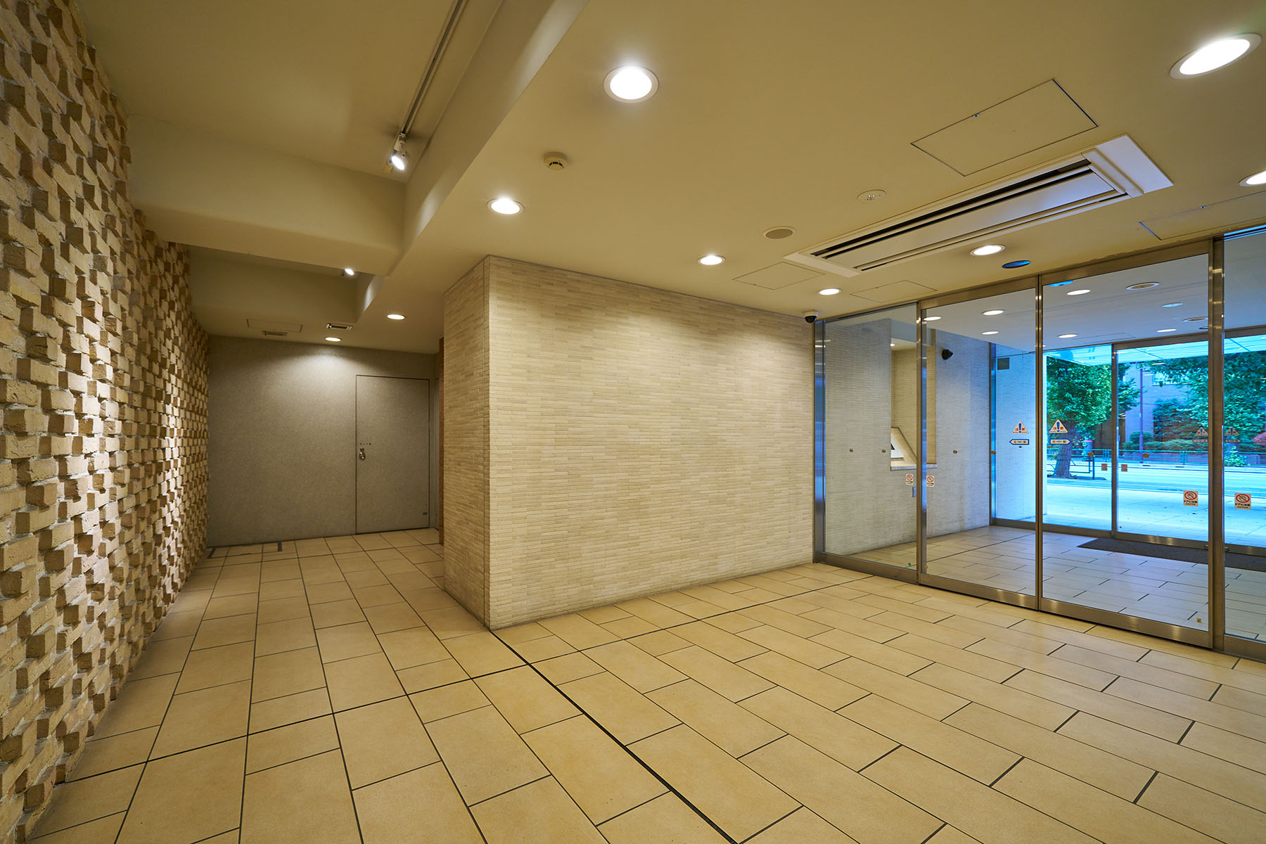 クスノキのシンボルツリーが迎えるアプローチは、前面の道路と敷地の間のプライバシーの境界を演出する設計です。メインエントランスのオートロックドアを抜けると、正面にはドイツレンガ壁を配したエントランスホールへ。ライトアップされた、風合いのあるアンティークレンガが上質な空間を演出しています。各戸につながる共用廊下は、ホテルライクな内廊下を採用。住まう方のプライバシーを守り、静寂のプライベート空間へと誘います。