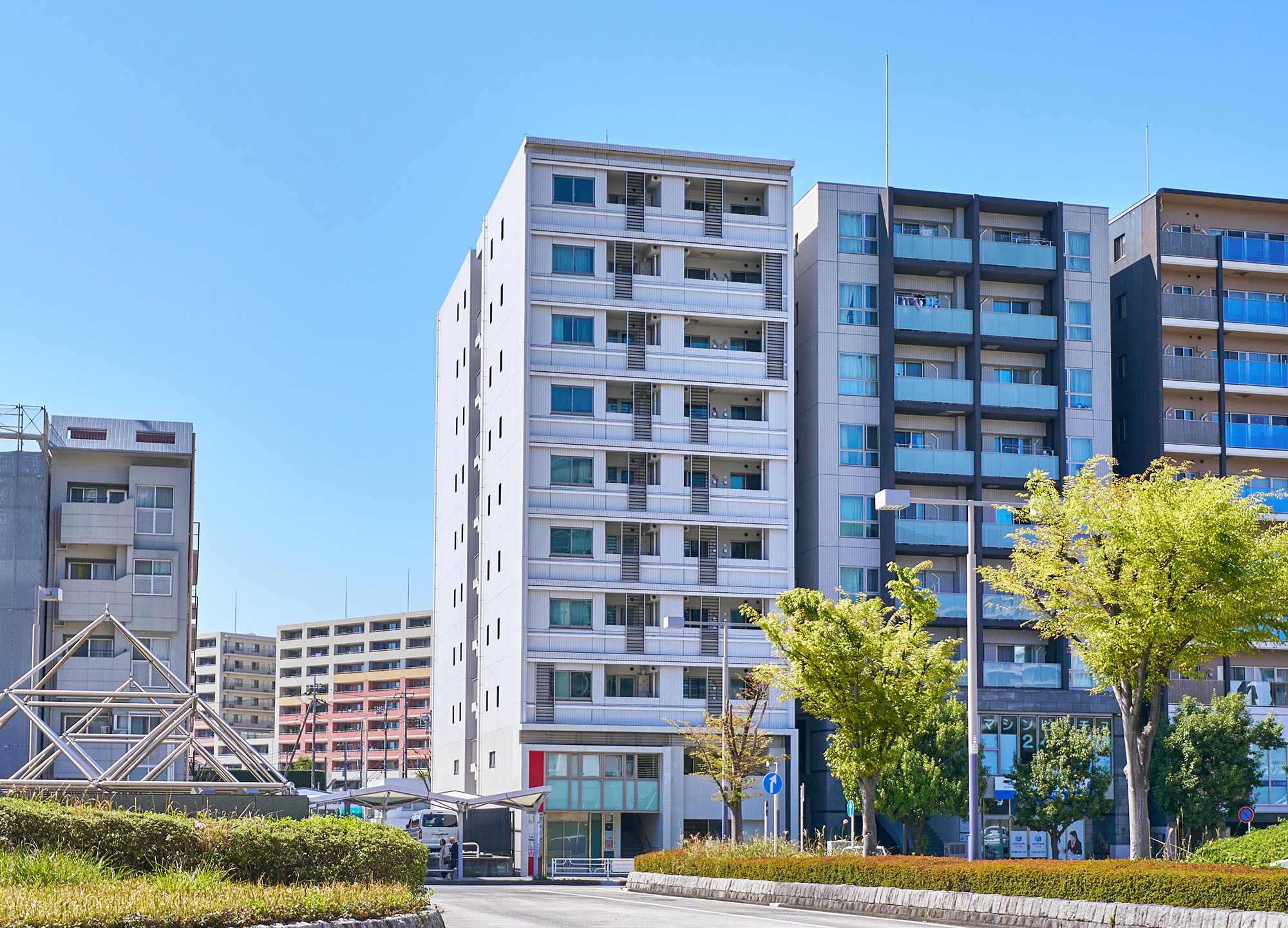 「都市景観100選」にも選ばれたことのある「センター北」の駅前邸宅としてふさわしい住まいであるために、街と調和する美しい外観と、高いプライバシー性を追求。外壁タイルにもこだわりを持ち、白を基調としたタイルをきめ細かく使い分けることで、 より「センター北」の街並みにふさわしい洗練されたデザインに。また、駅前ロータリーに面したバルコニーには意匠性と視線の緩和に配慮し、移動式のルーバーが設けられ、プライバシー性を確保しています。