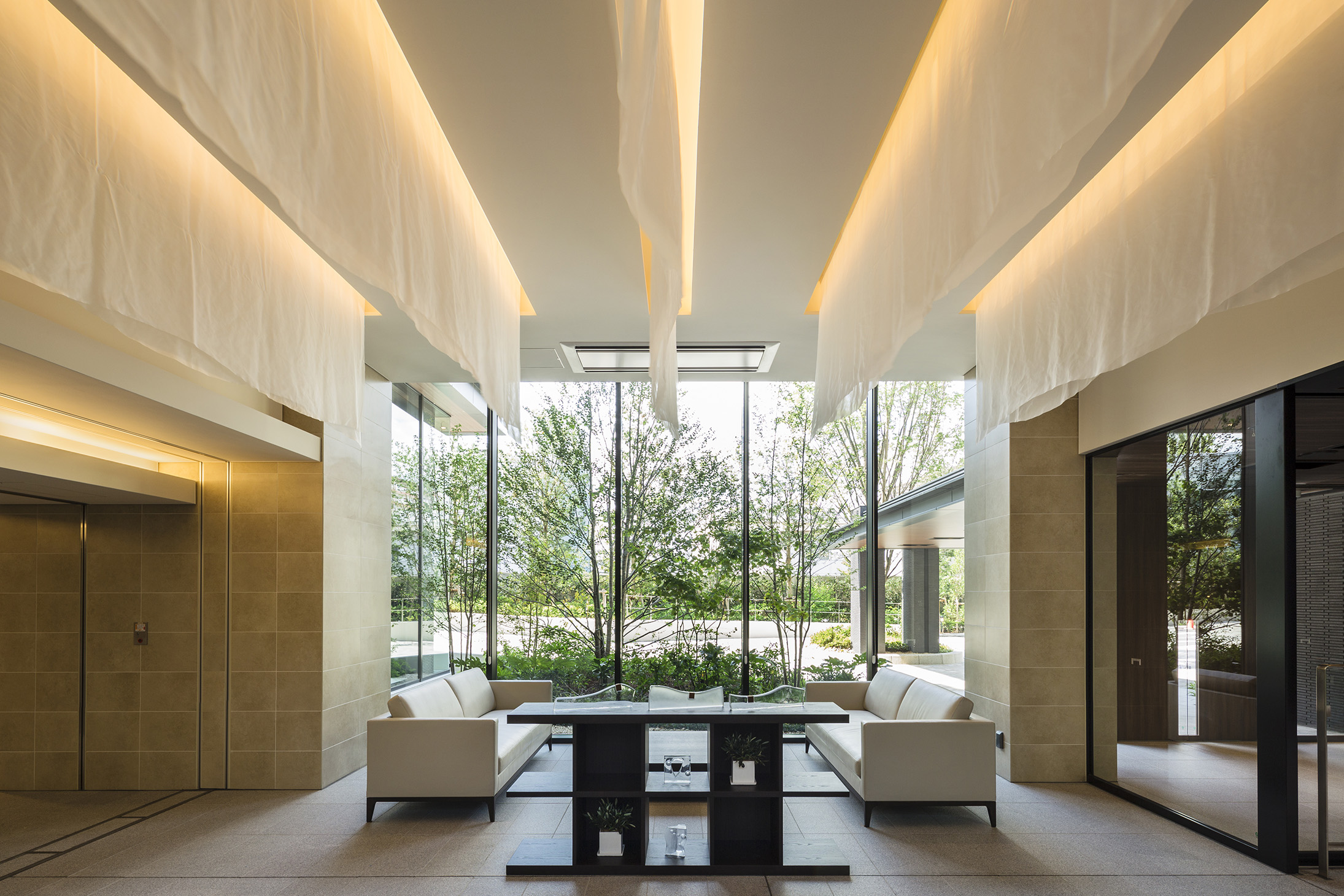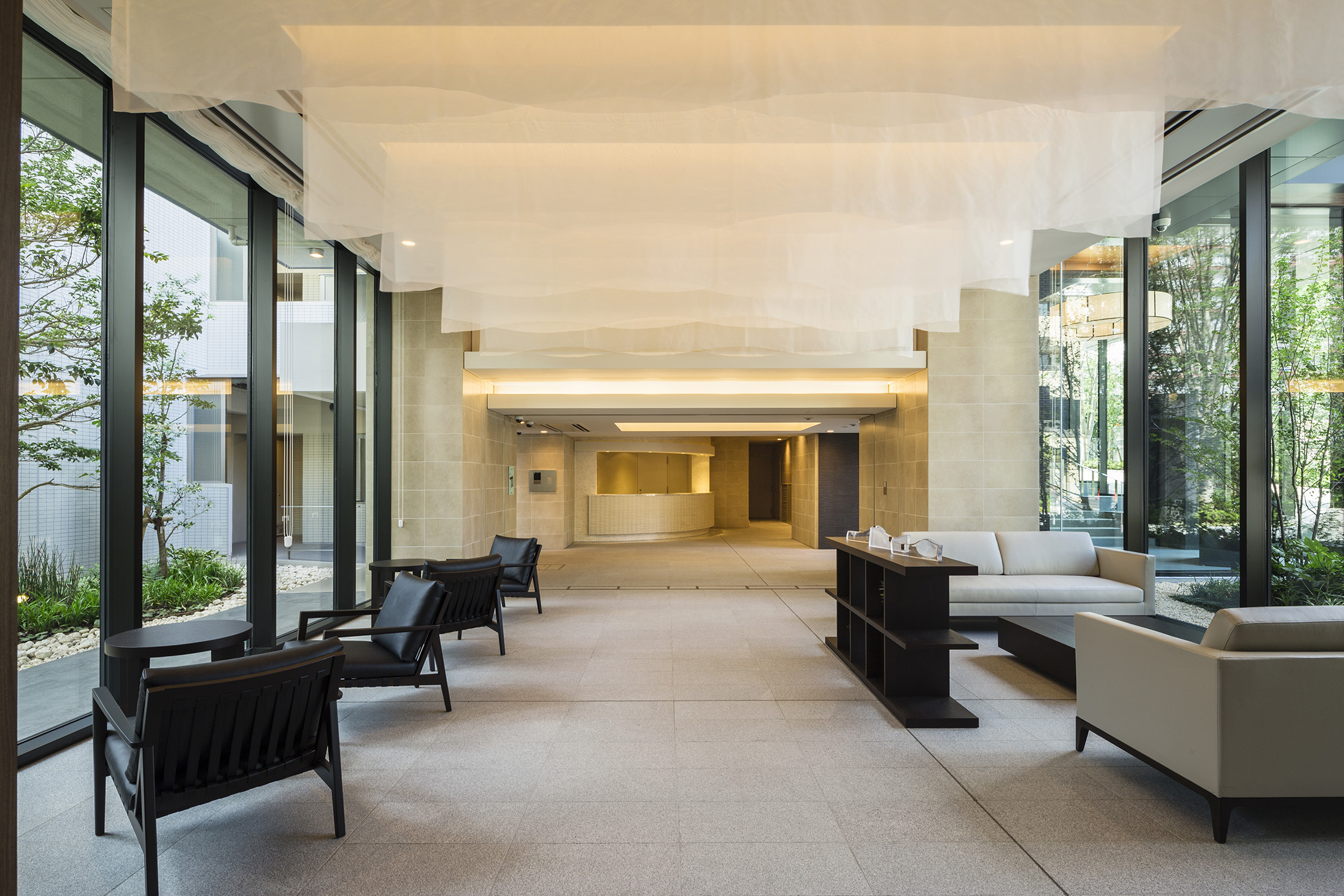 緑を眺めながら寛げる、穏やかな空気漂う空間。コンシェルジュカウンターも備え、暮らしの中の様々な要望に応えてくれます。