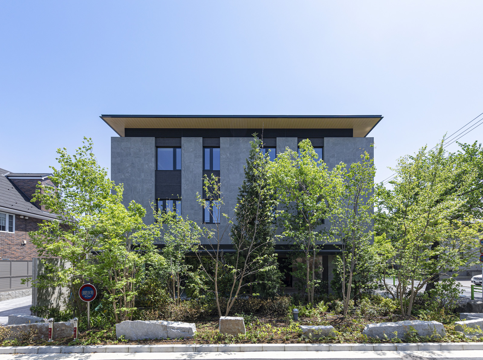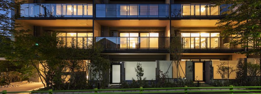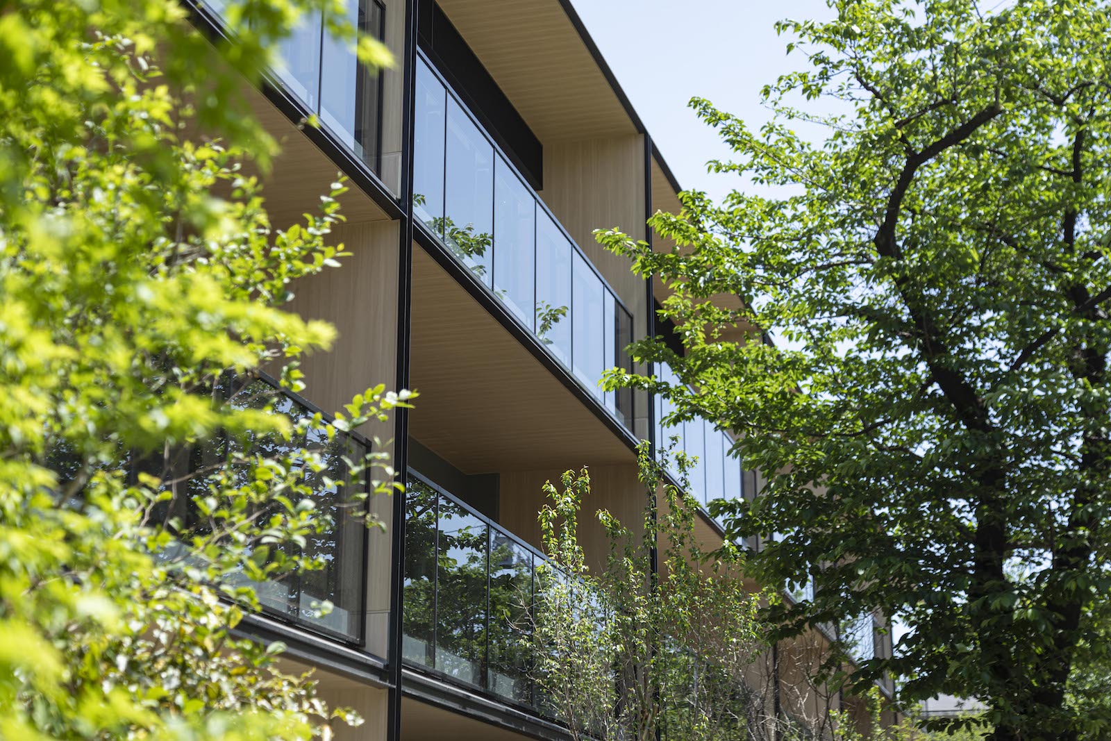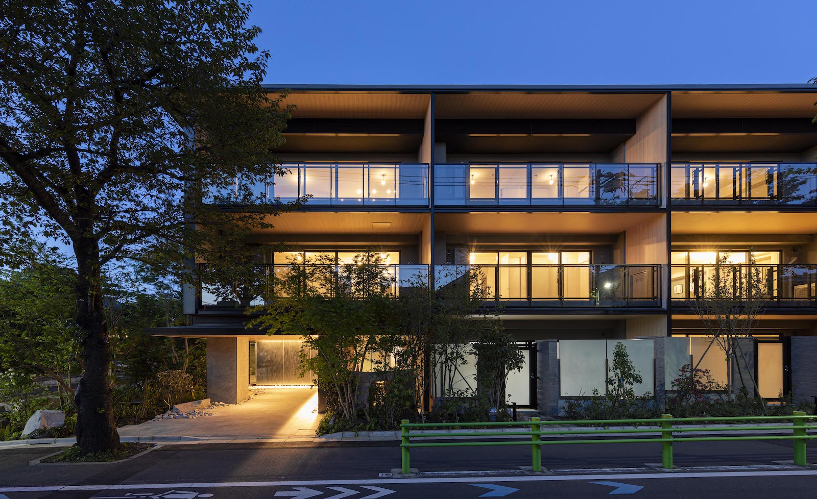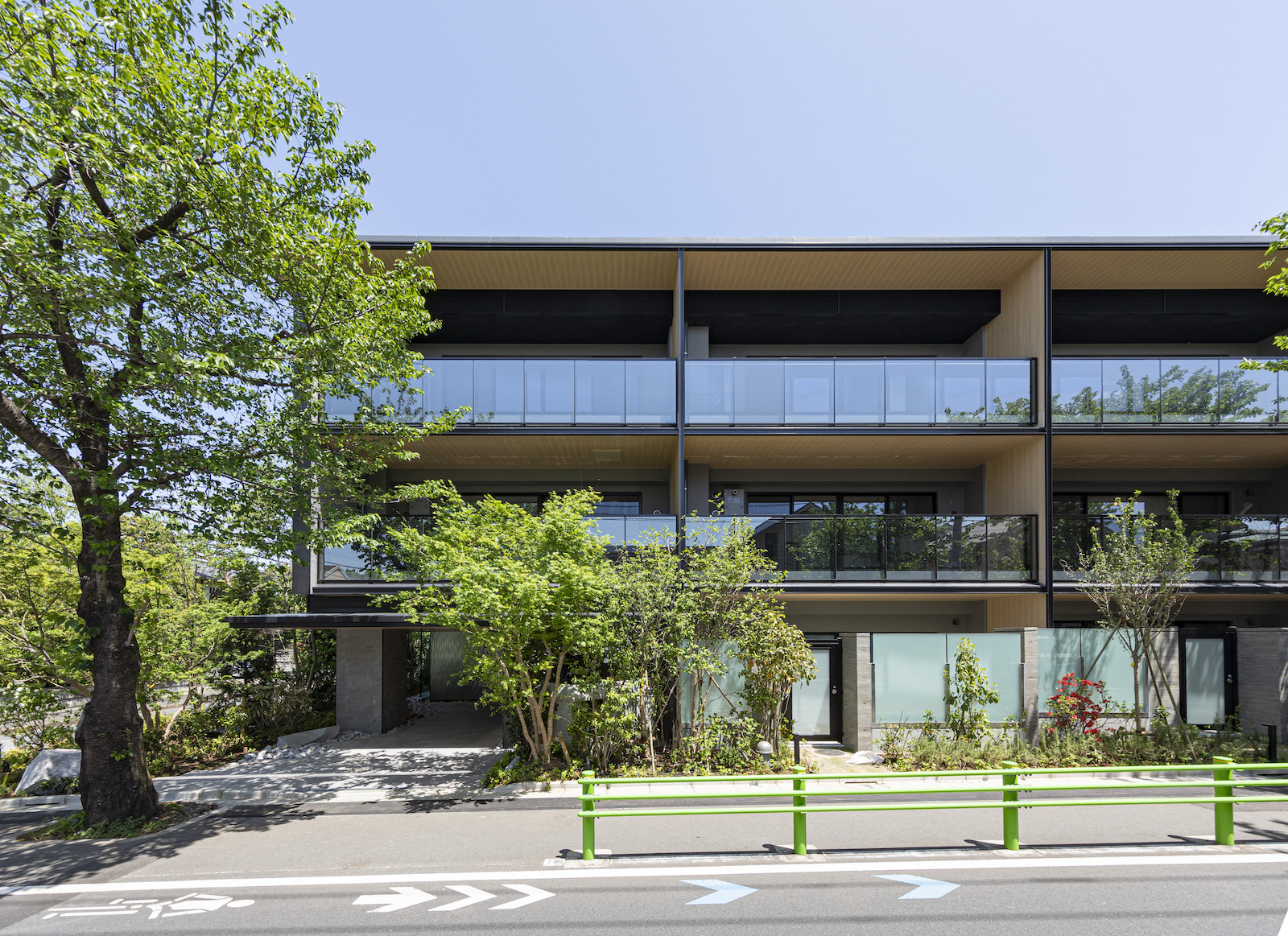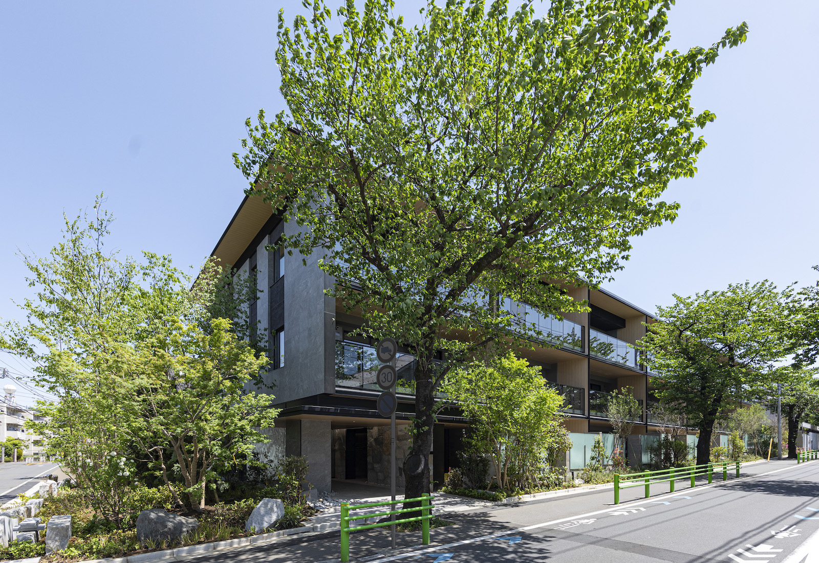 大きく張り出した袖壁や深い軒、彫りの深い開口部や、質感豊かな外壁が邸宅としての格調を表現。エッジの効いたバルコニーの庇と、ガラス手すりの組み合わせにより、モダンで洗練されたシルエットとなっています。外観はグレーを基調とした色彩で、居住者に近いバルコニーの壁面や軒裏には木調素材を使用。深沢の伝統と歴史に響き合う、この地ならではの上質なレジデンスです。