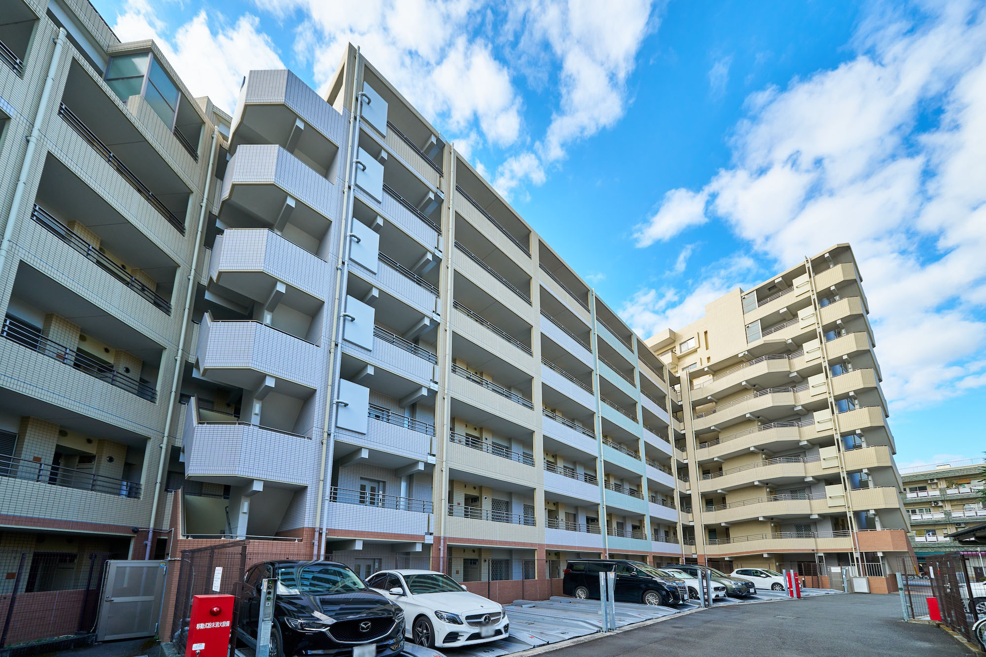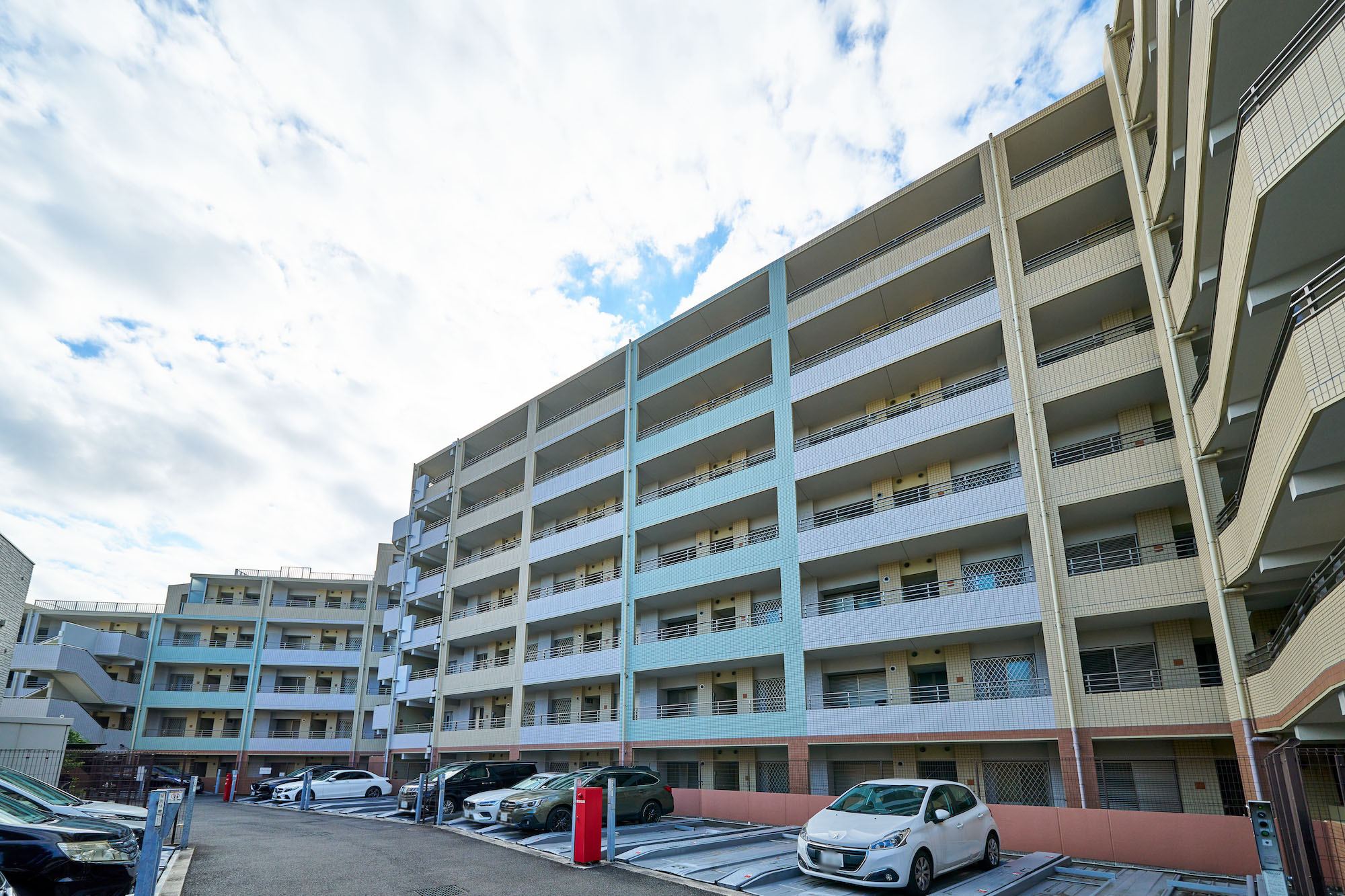 スカイ・ウィング、セントラル・ウィング、サザン・ウィングで構成される住棟は、外観にデザイン的な変化を施しながら、4色の磁器質タイルを配して美観と耐久性に配慮。街並みに映えるランドマークとして、歳月を経ても色あせない洗練さが追求されています。邸宅の顔となるエントランスは、充分な奥行きと広々とした空間を確保し、北欧テイストのデザインを採用。ホテルライクな車寄せを配し、優雅さを湛えた空間デザインが施されています。