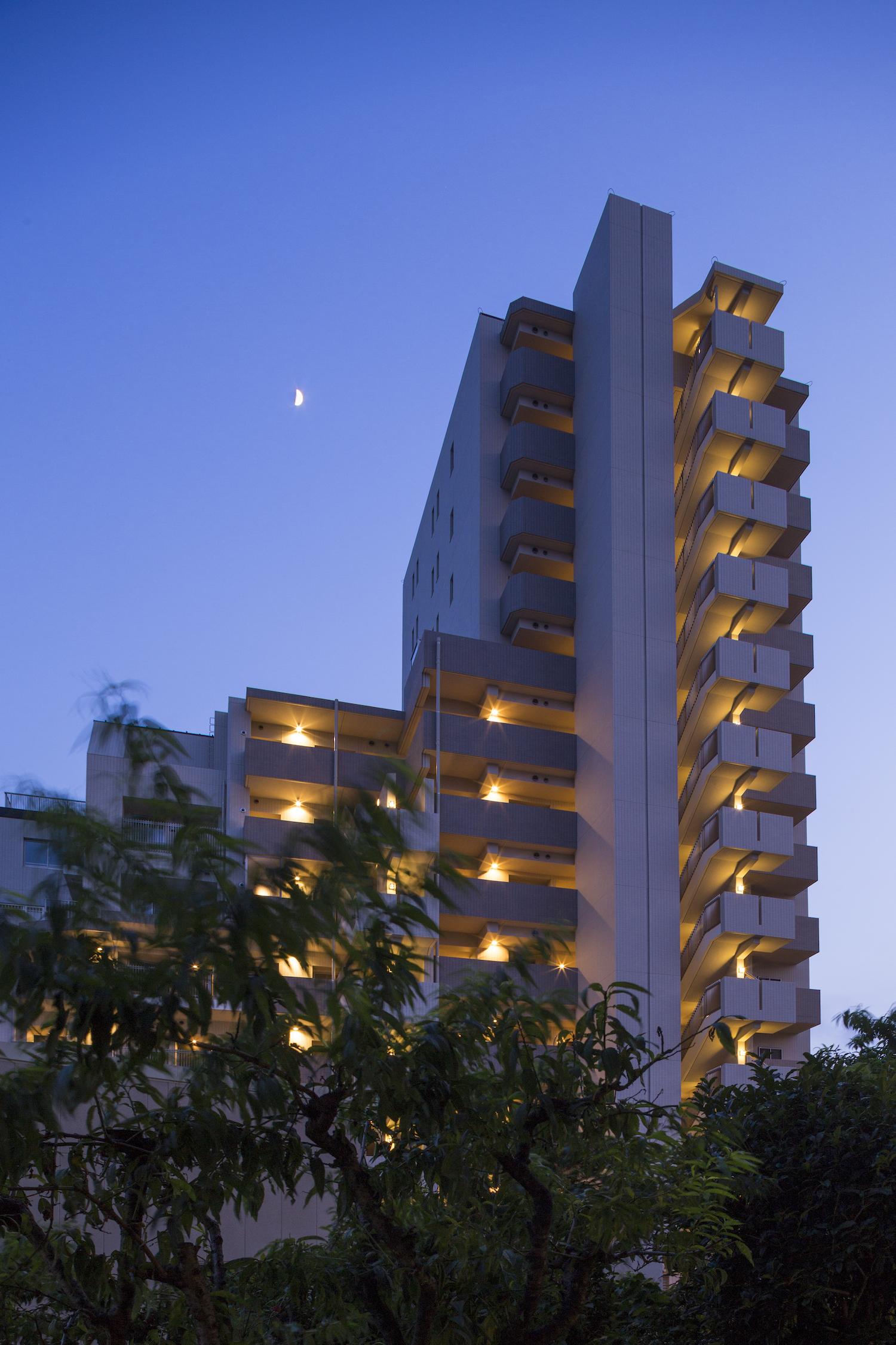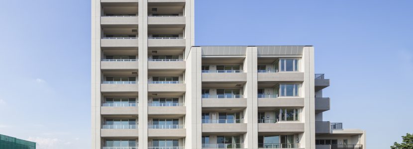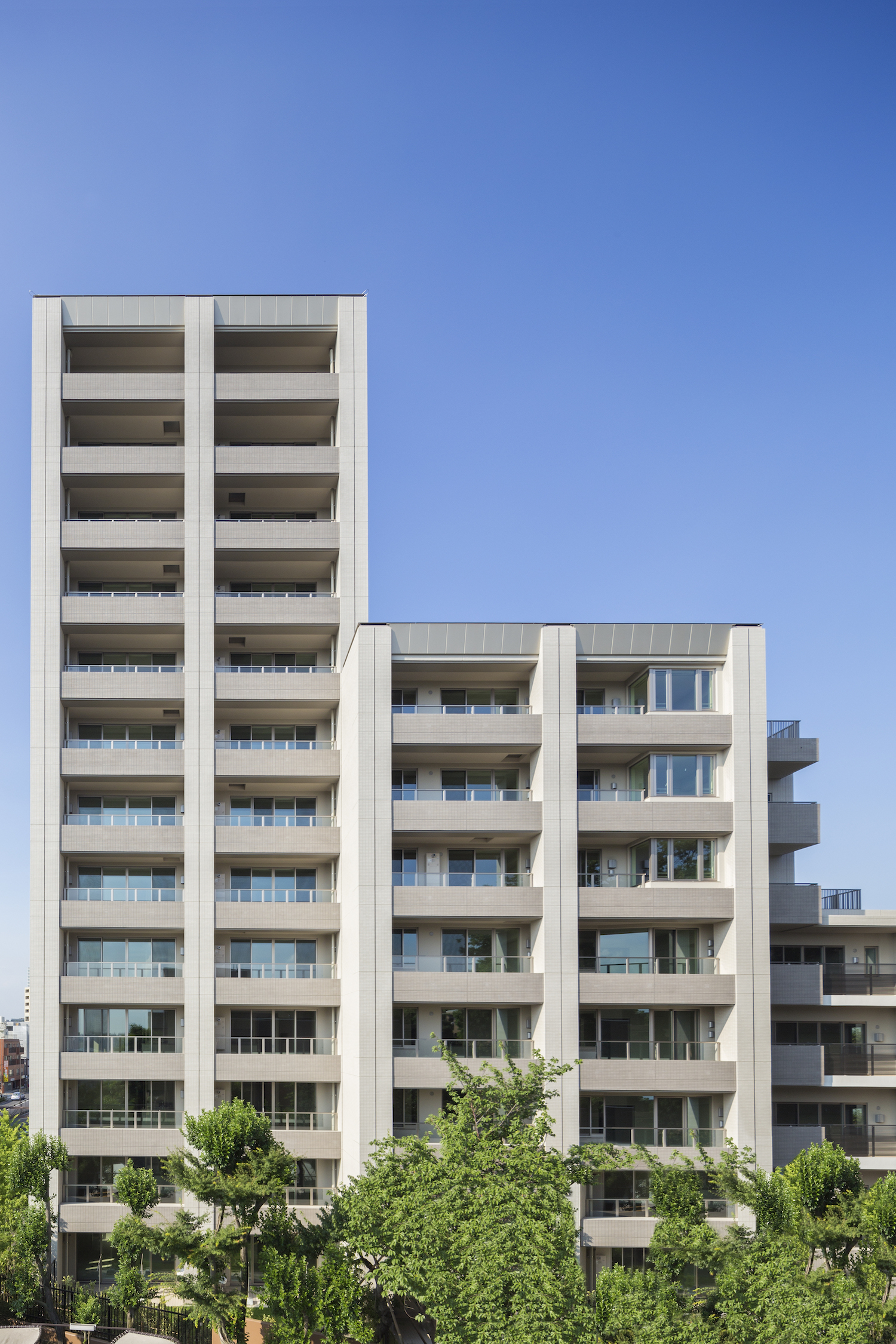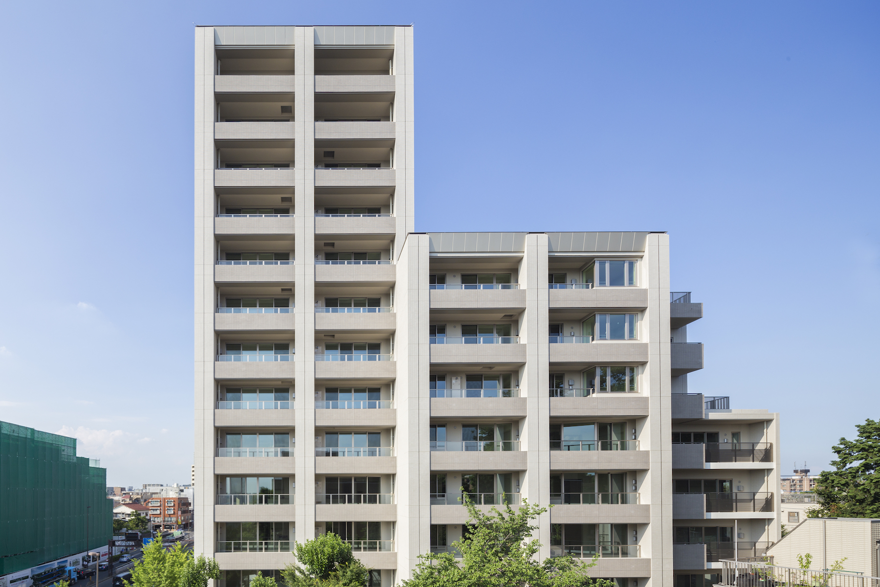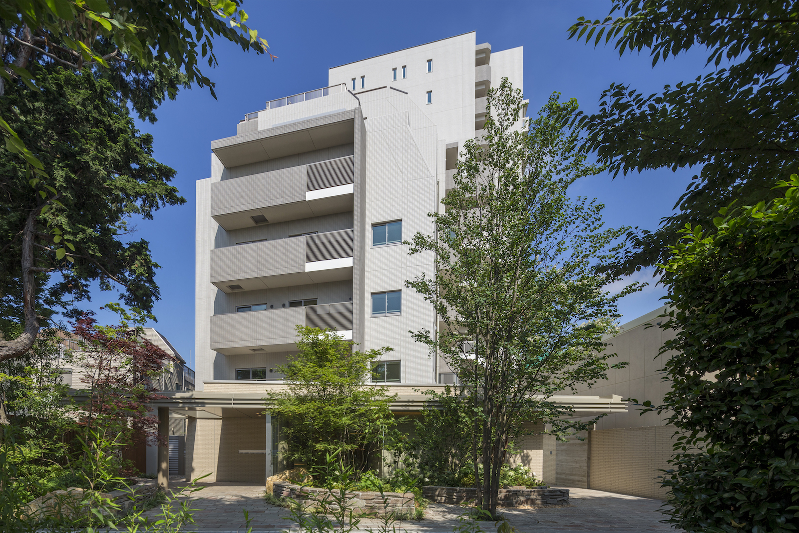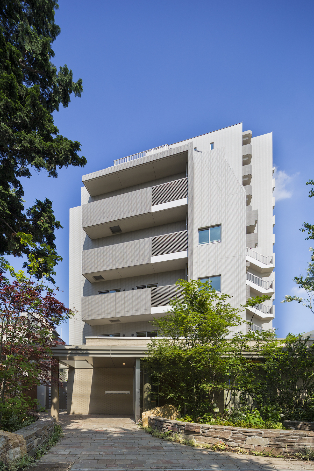 「二子玉川」の洗練された街の印象と、落ち着いた高台の邸宅地「瀬田」の印象。この双方を大切にした意匠設計として、玉川通りサイドの外観は柔らかな白系のタイルを基調に空に伸びるマリオンデザインを強調した都会的な表情を演出。瀬田サイドはアースカラーのタイルを纏い、植栽計画が描く四季の移ろいに調和する意匠となっています。マテリアルは、永い歳月を超えても変わらない普遍性のある素材を採用。エントランスまわりは温もりを感じる斑岩や木彫のドア等を用い、ガーデンの美しさを引き立てています。