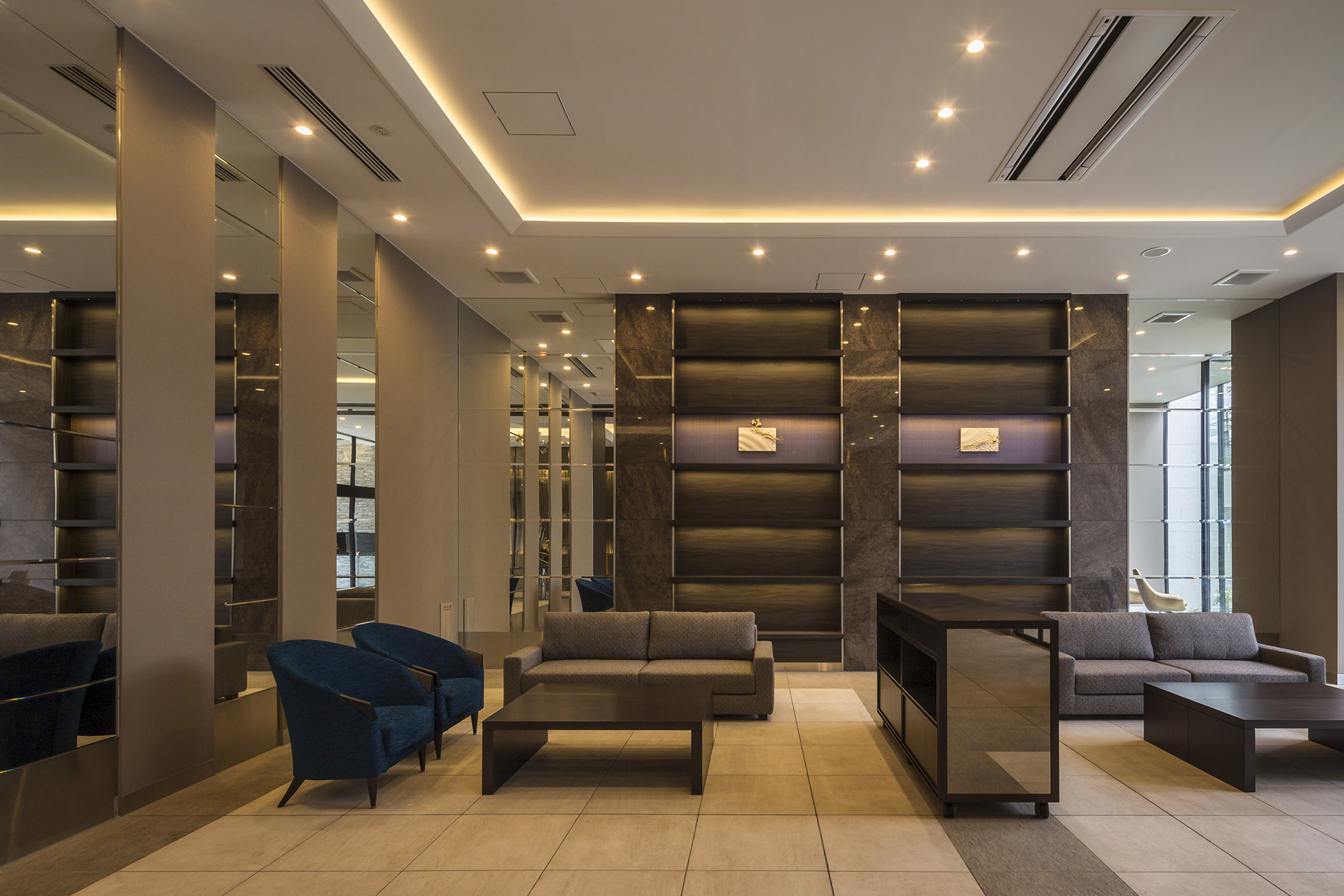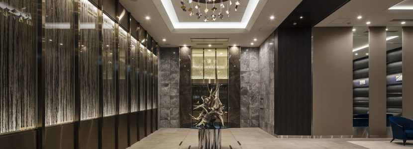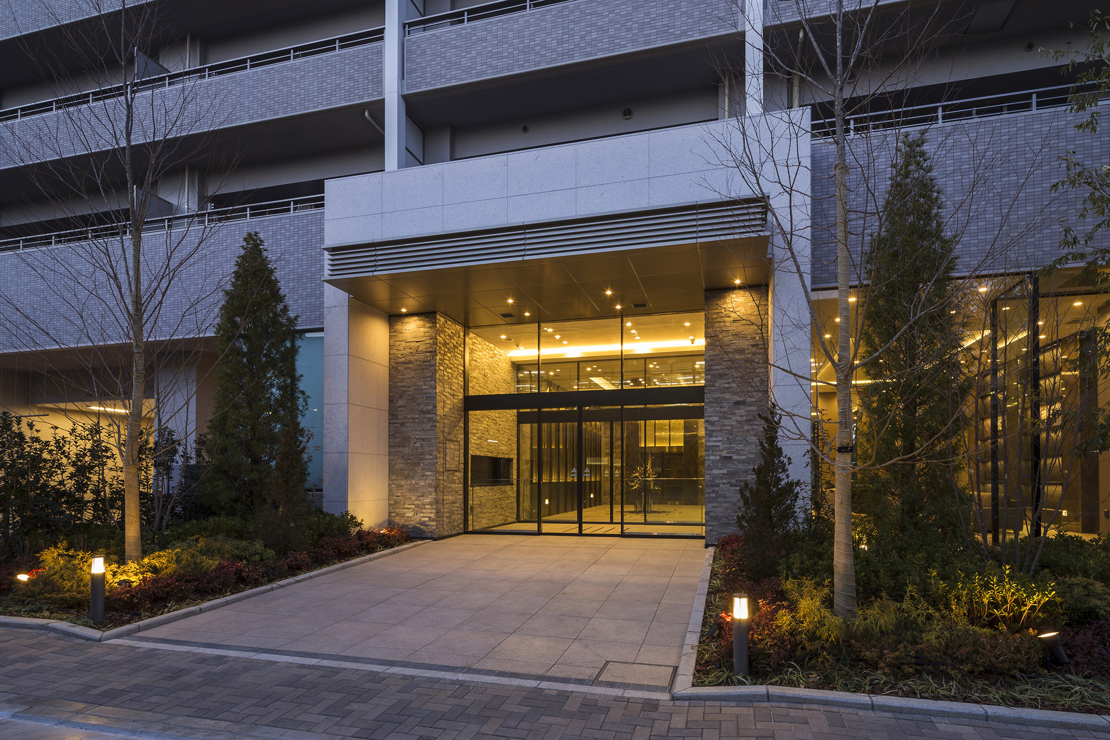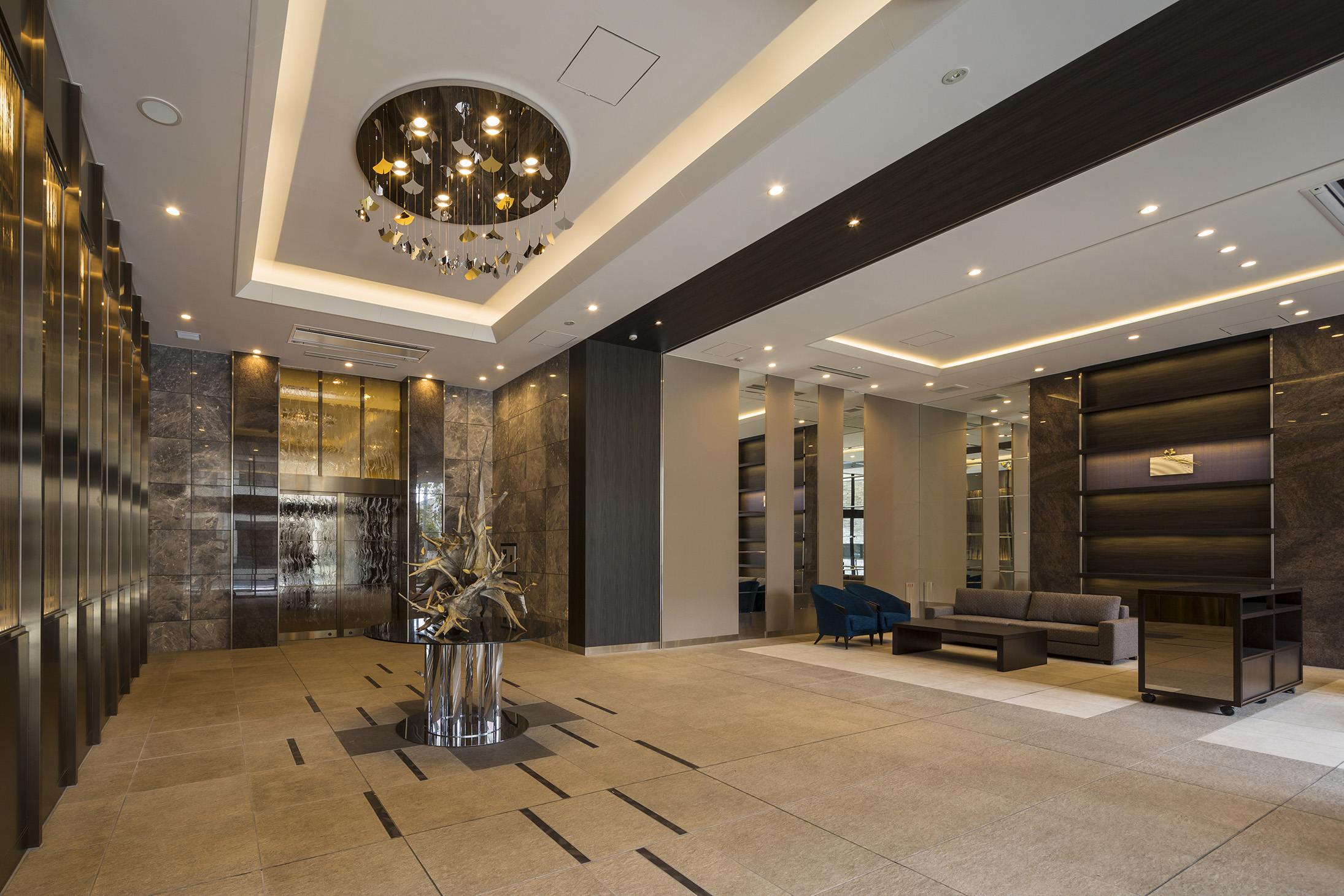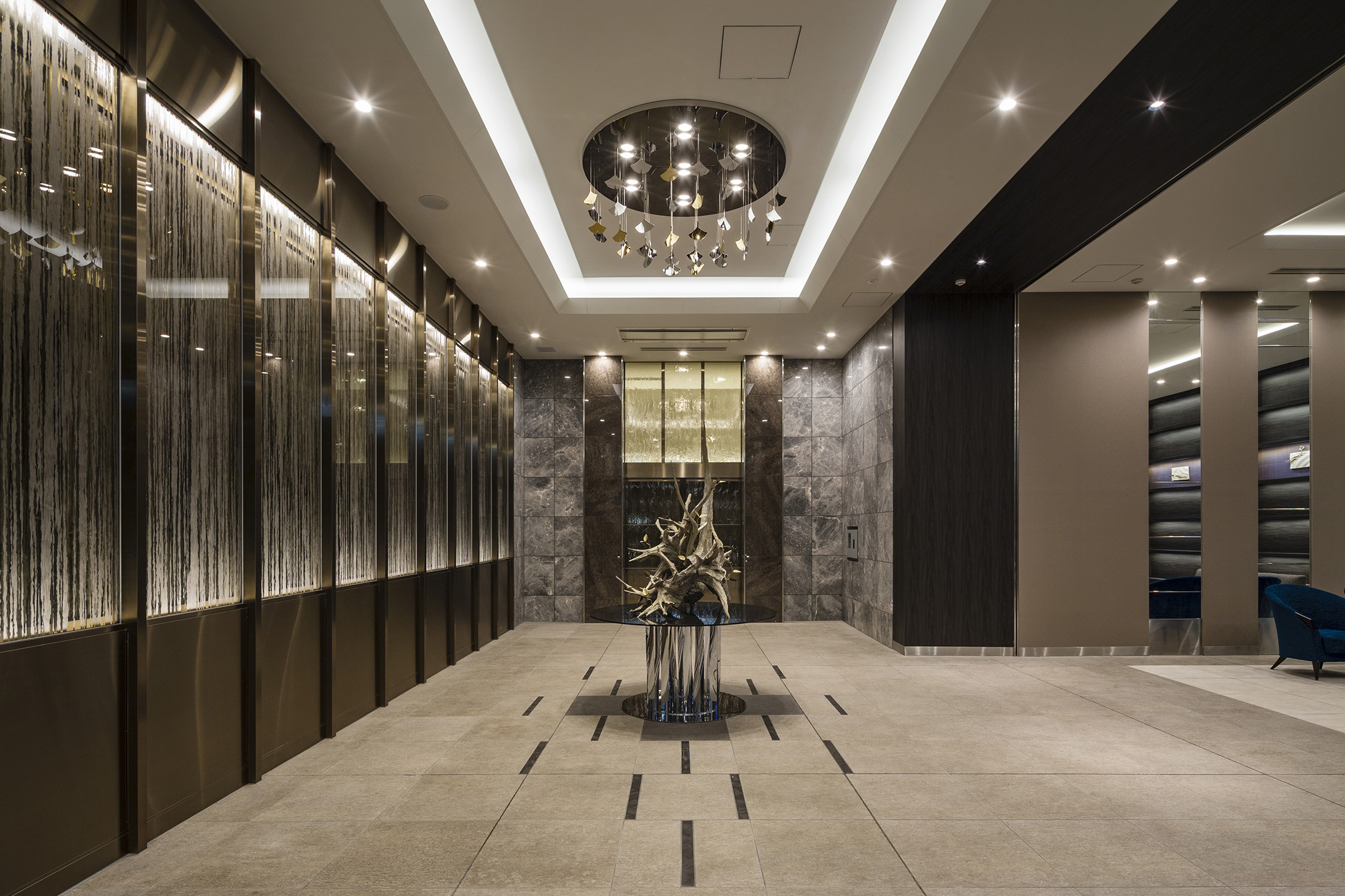 豊かな質感と表情を持った石張りのエントランスは、天井高約4mの開放的な空間で、住まう方はもちろん訪れるゲストの方も心地よく迎え入れます。その先に広がるのは、奥行きと高さのある開放的なエントランスホール。気品と温もりに満ちた迎賓空間は、住まう方同士のコミュニケーションスペースやイベントスペースとしても活躍します。