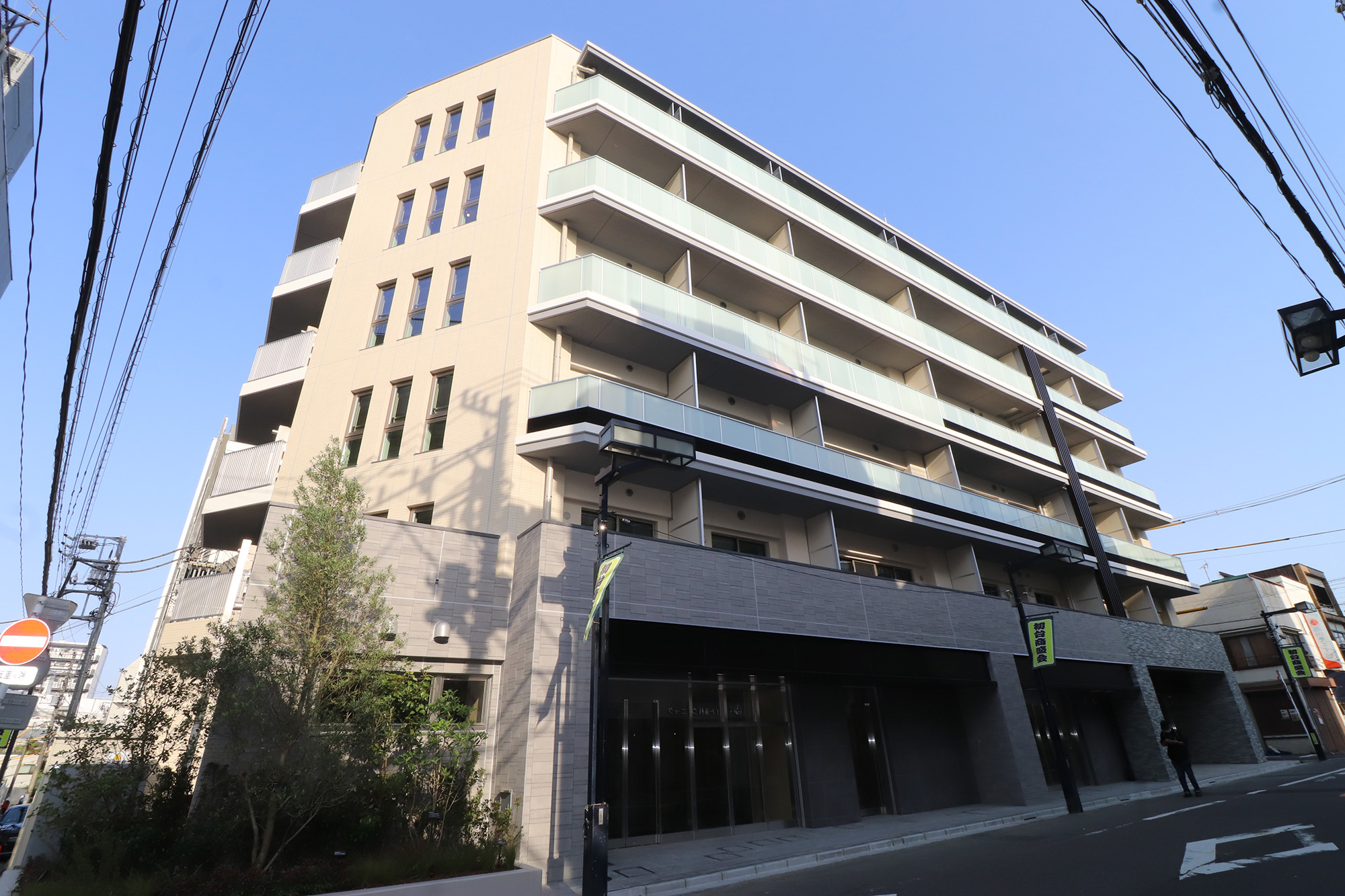 基壇部は邸宅としての落ち着きを感じさせる重厚感のある印象で、中・高層階は明るさや開放感、先進性を感じさせるモダンな佇まいです。またモダンな印象の中にも自然のエッセンスを取り入れ、外観の西側は大樹をイメージしてデザイン。リズミカルに設置したルーバーの手すりやマリオンによって木の幹や枝を表現し、建物中央の幹から左右に枝が広がるレイアウトとなっています。さらに、昼と夜で異なる顔を演出するよう、明るい印象のガラスや、色彩と質感に変化を持たせたタイルを使用。建物全体を立体的に演出し、都会的なレジデンスが表現されています。