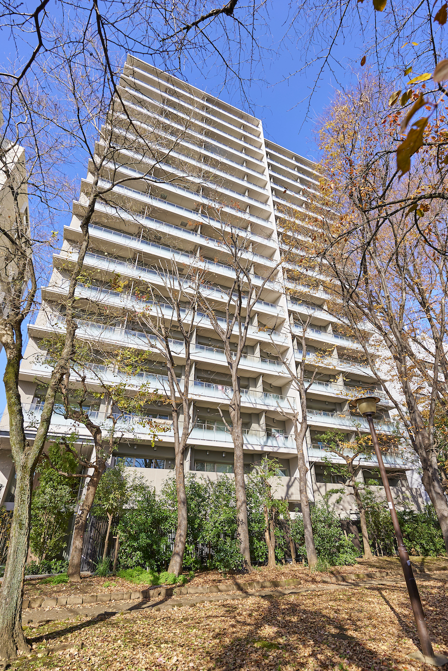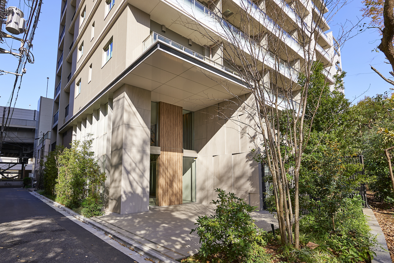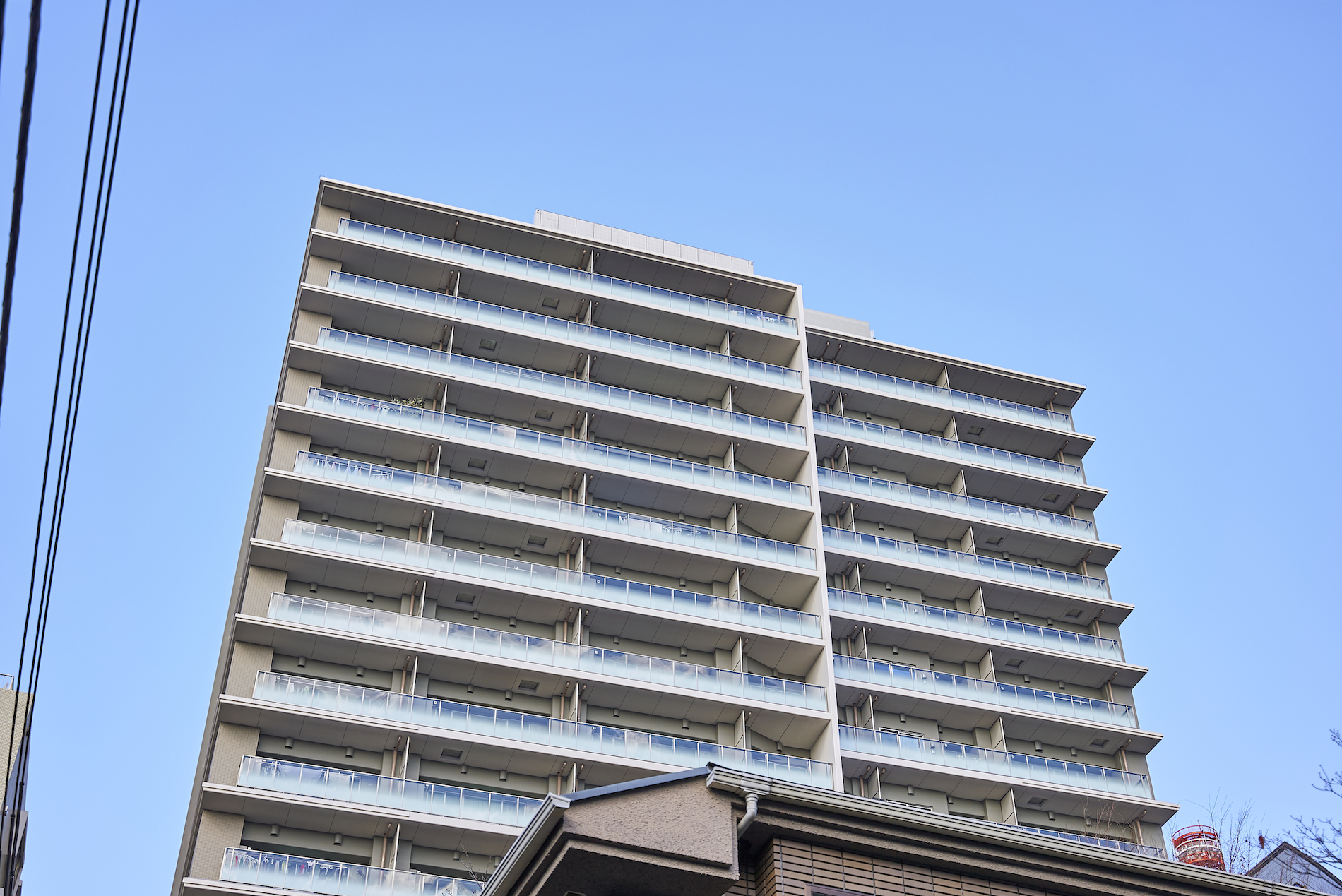 外観の表情を美しく叶えるガラスのグラデーション。下部は外からの視線を避ける乳白色が室内を守り、上部は透明ガラスで空に溶け込んで美しく広がる眺望につながります。