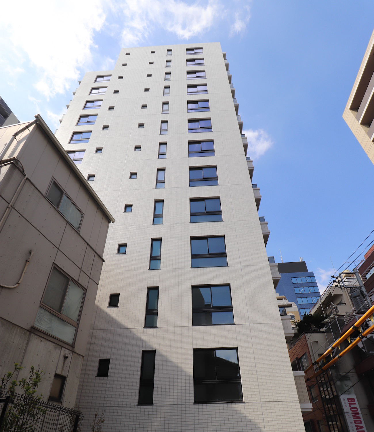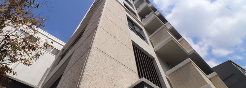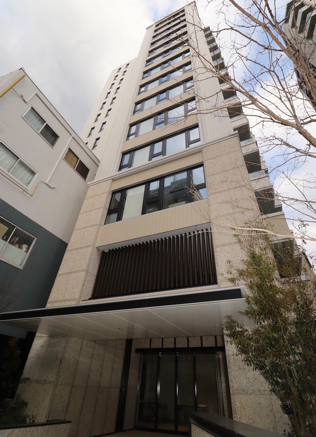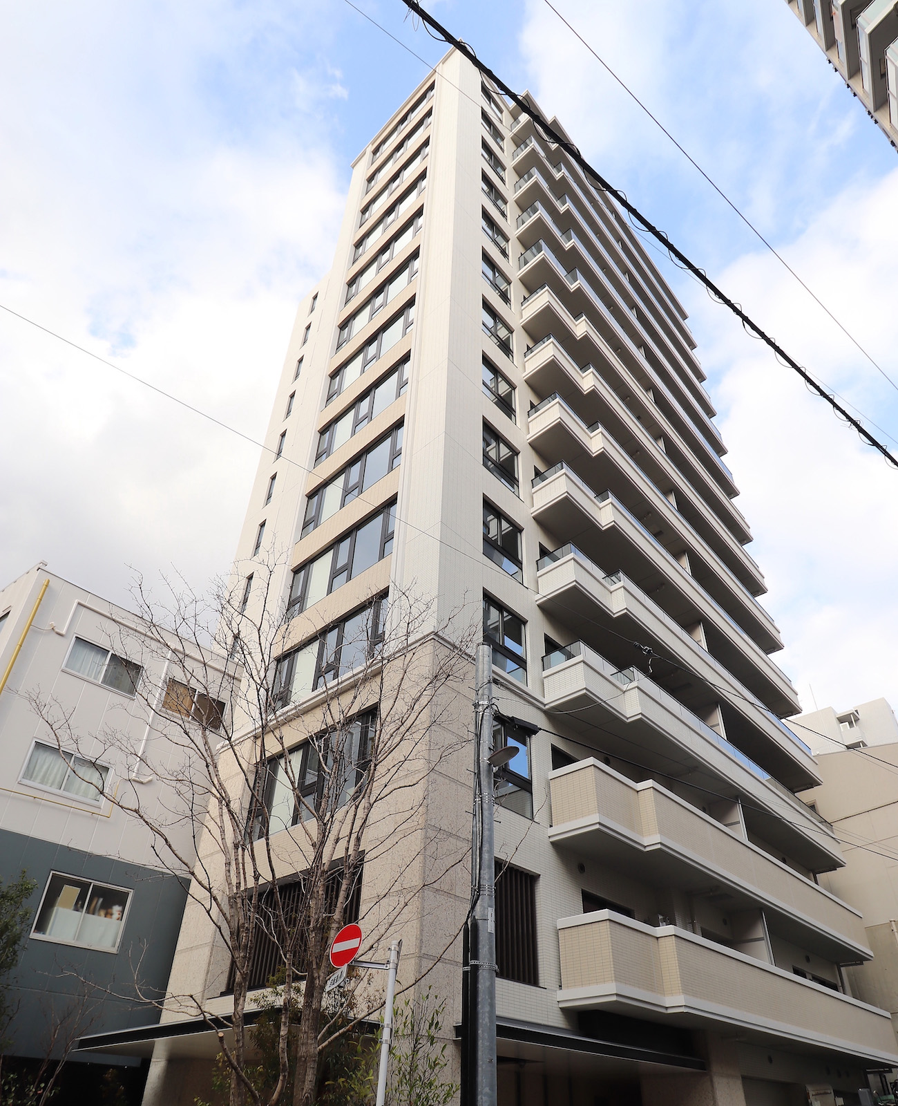 エントランス側を中心とした基壇部には、山の手の地にふさわしい重厚な御影石を採用し、風格ある邸宅の構えを演出しています。一方、中・高層階では、ホワイト系の外壁とリズミカルな窓、ガラス手摺により、シンプルなファサードをデザイン。地に根ざした安定感といつまでも色褪せることのない表情を、地上14階建のシャープなフォルムに昇華させています。