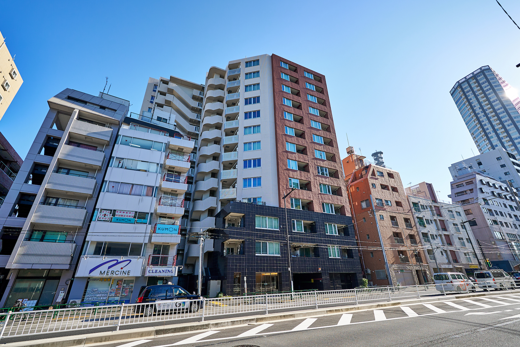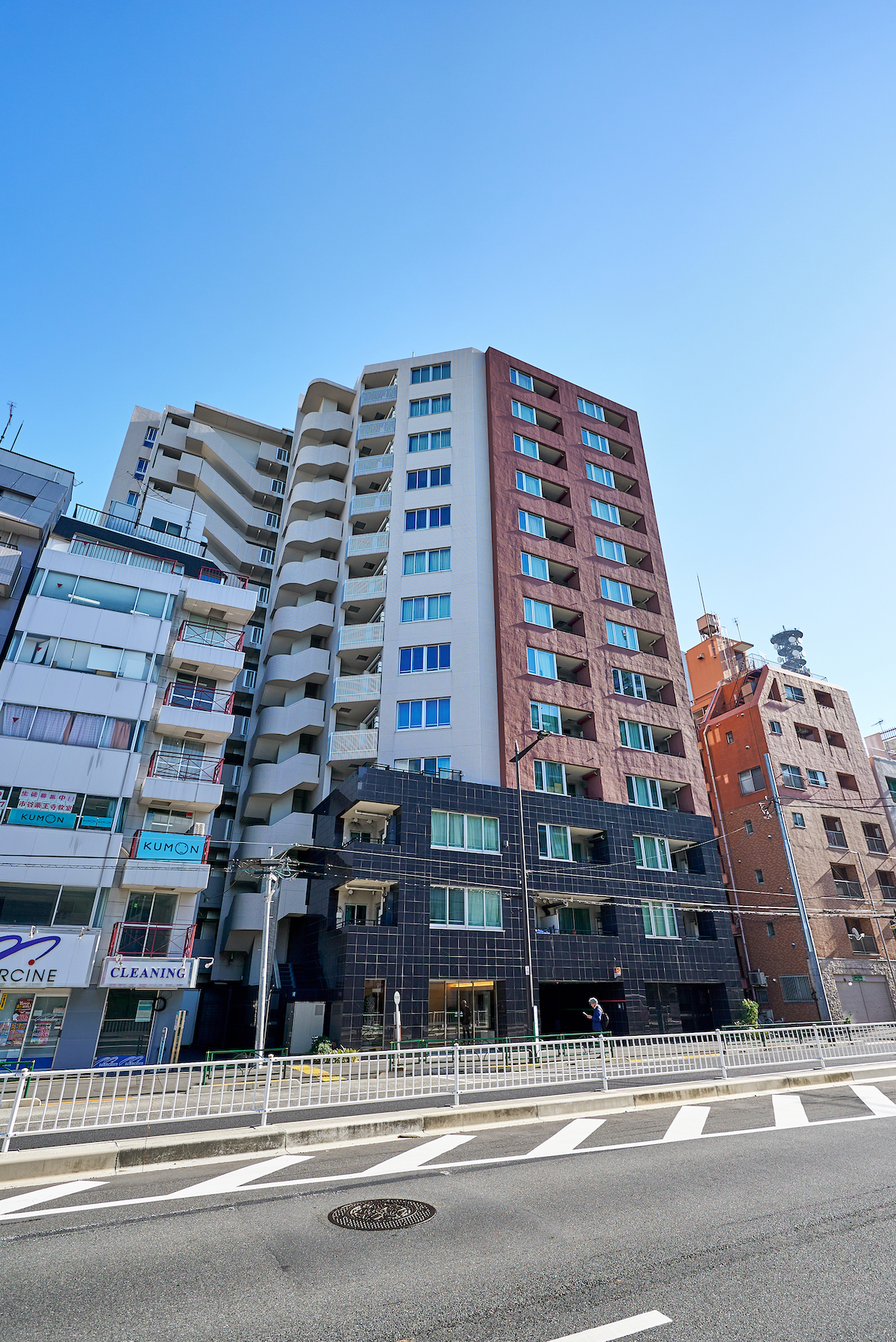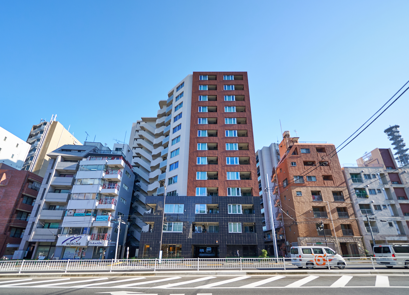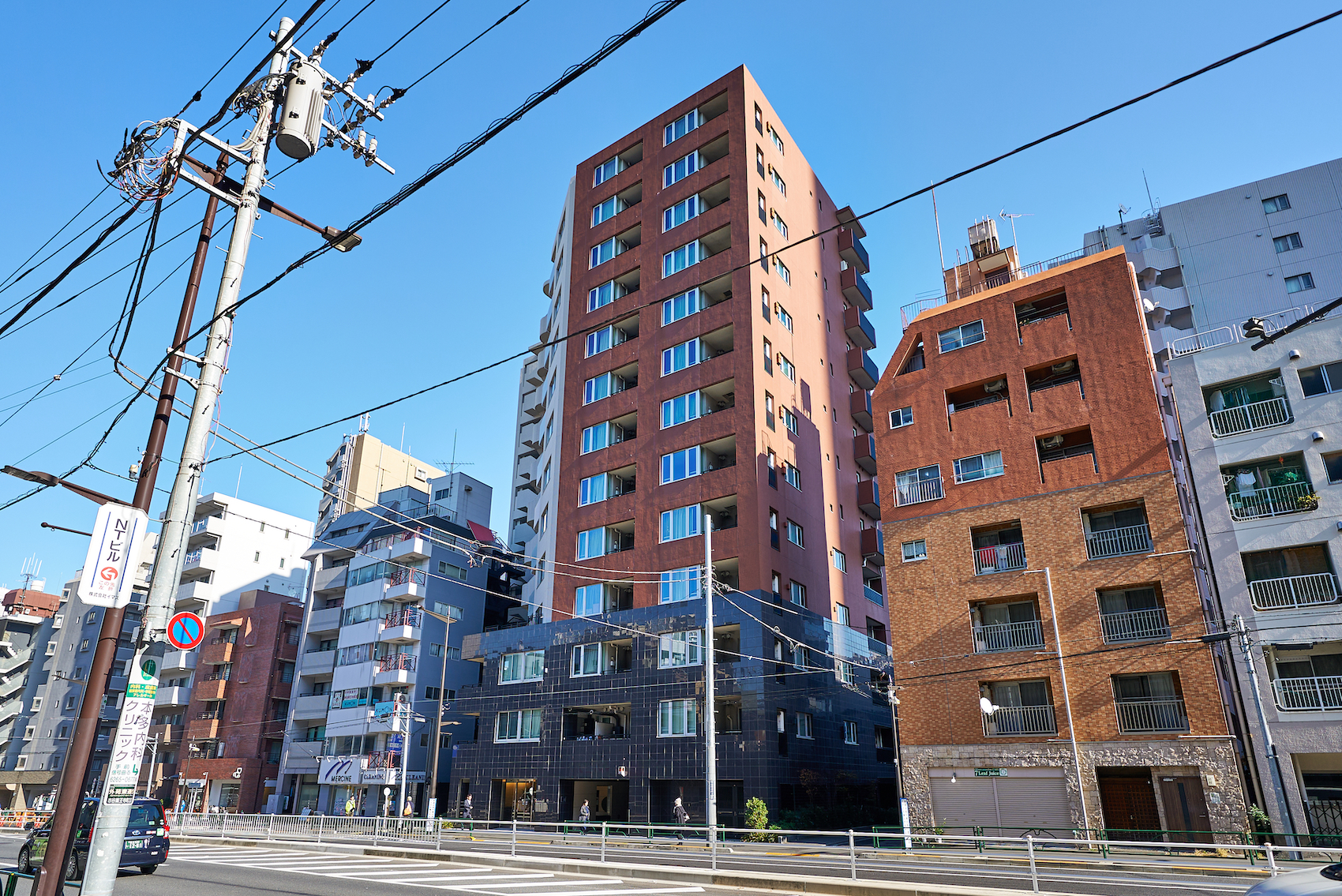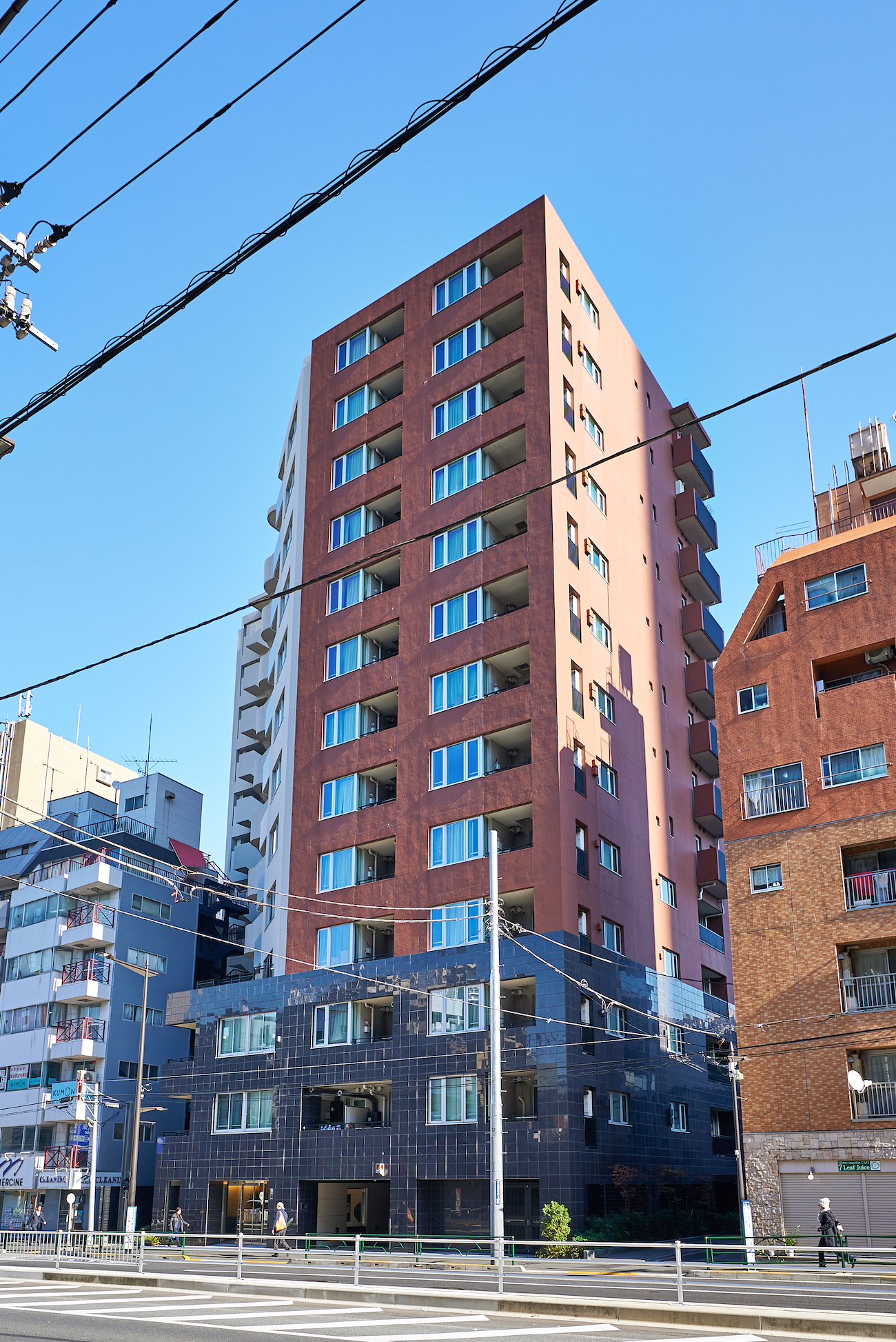 テーマは、黒・レンガ色・白という3色の融合です。3階までの基壇部は強く印象付けるために「黒」を使用。周囲の街並の中で際立つ存在感を創出するとともに、イタリア製のマーブル調磁器質タイルを用いることで高級感とモダニズムを表現しています。その上部は温かみのある「レンガ色」に。黒とレンガ色の掛け合わせで建物の印象を作り、さらに白が組み合わされています。アート(黒)、シンボル(レンガ色)、ライフ(白) が融合したモダンなファサードデザインは、「セントガレリア」(ガレリアはイタリア語でギャラリーという意味)という名に相応しい趣きです。