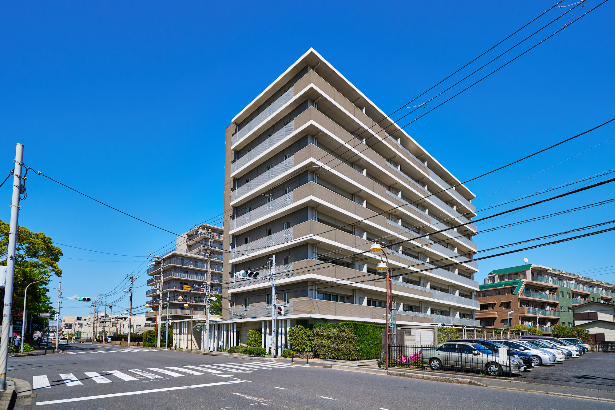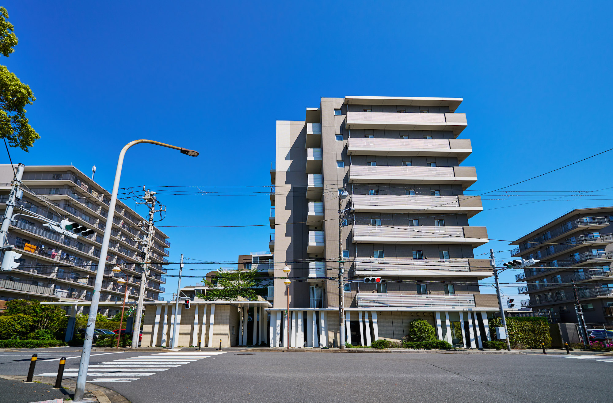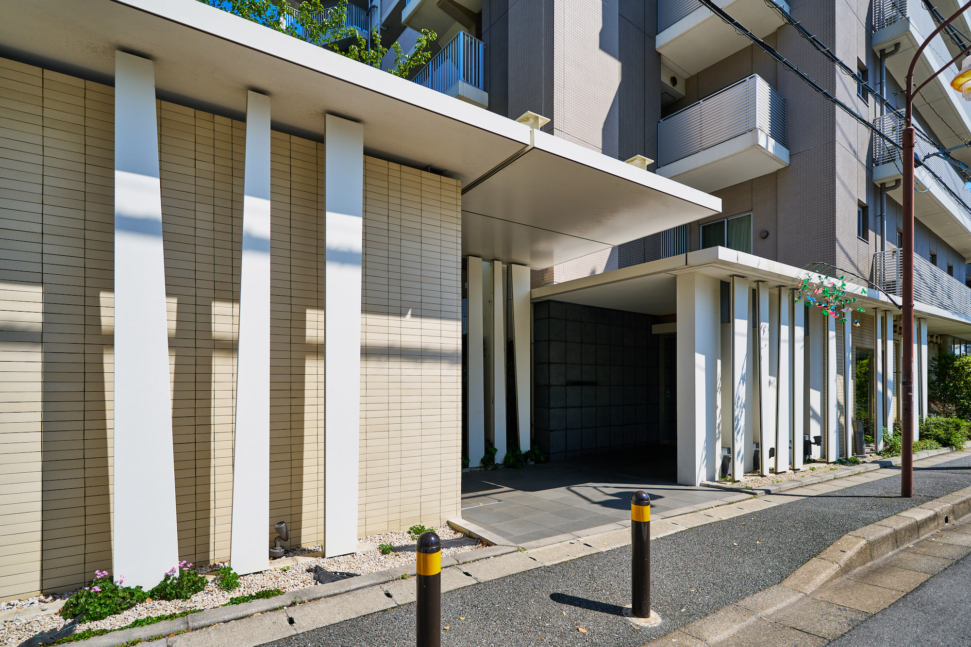 南東側の落ち着いた住宅街と調和する、アースカラーを基調とした外観。色合いにも風合いにもこだわり、心地いい陽光のぬくもりをそのまま風景として描いたかのような、やさしく深みのあるデザインです。住まいの入り口には、特徴的な「格子」と「ひさし」で彩りを添え、この街のシンボルとして誰からも親しまれるような、印象的な表情を描いています。