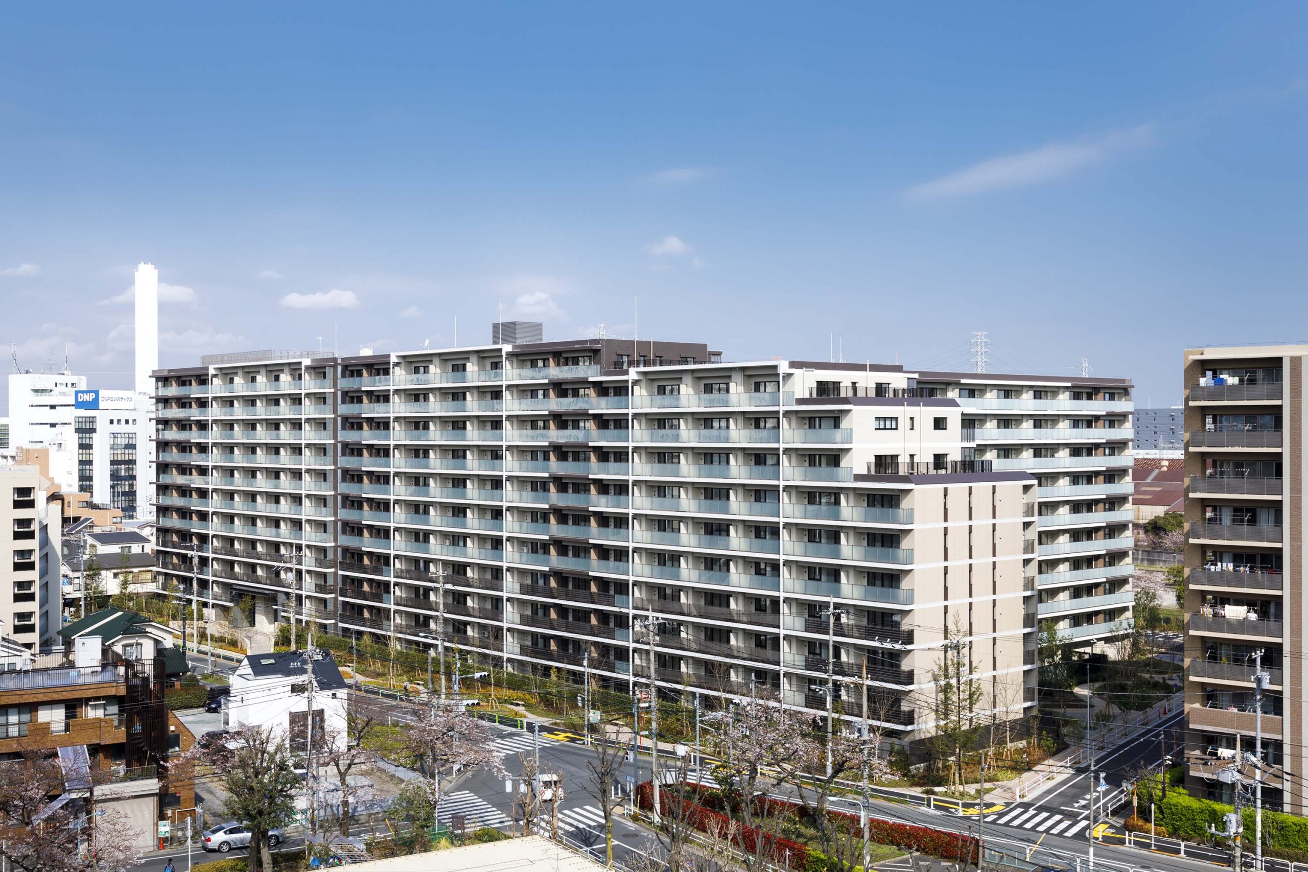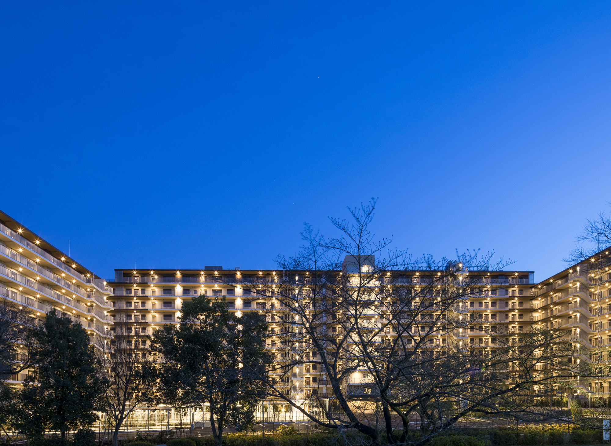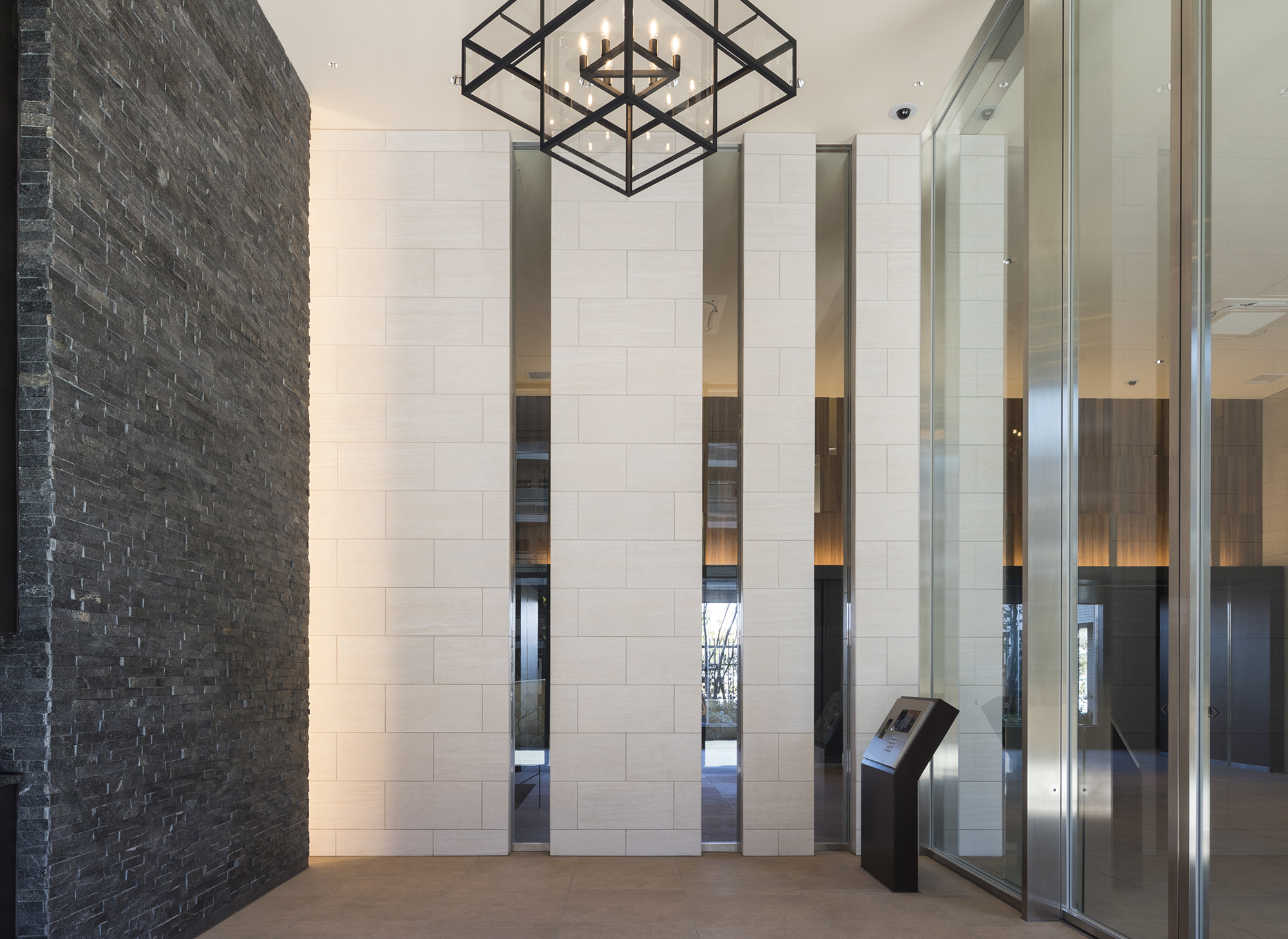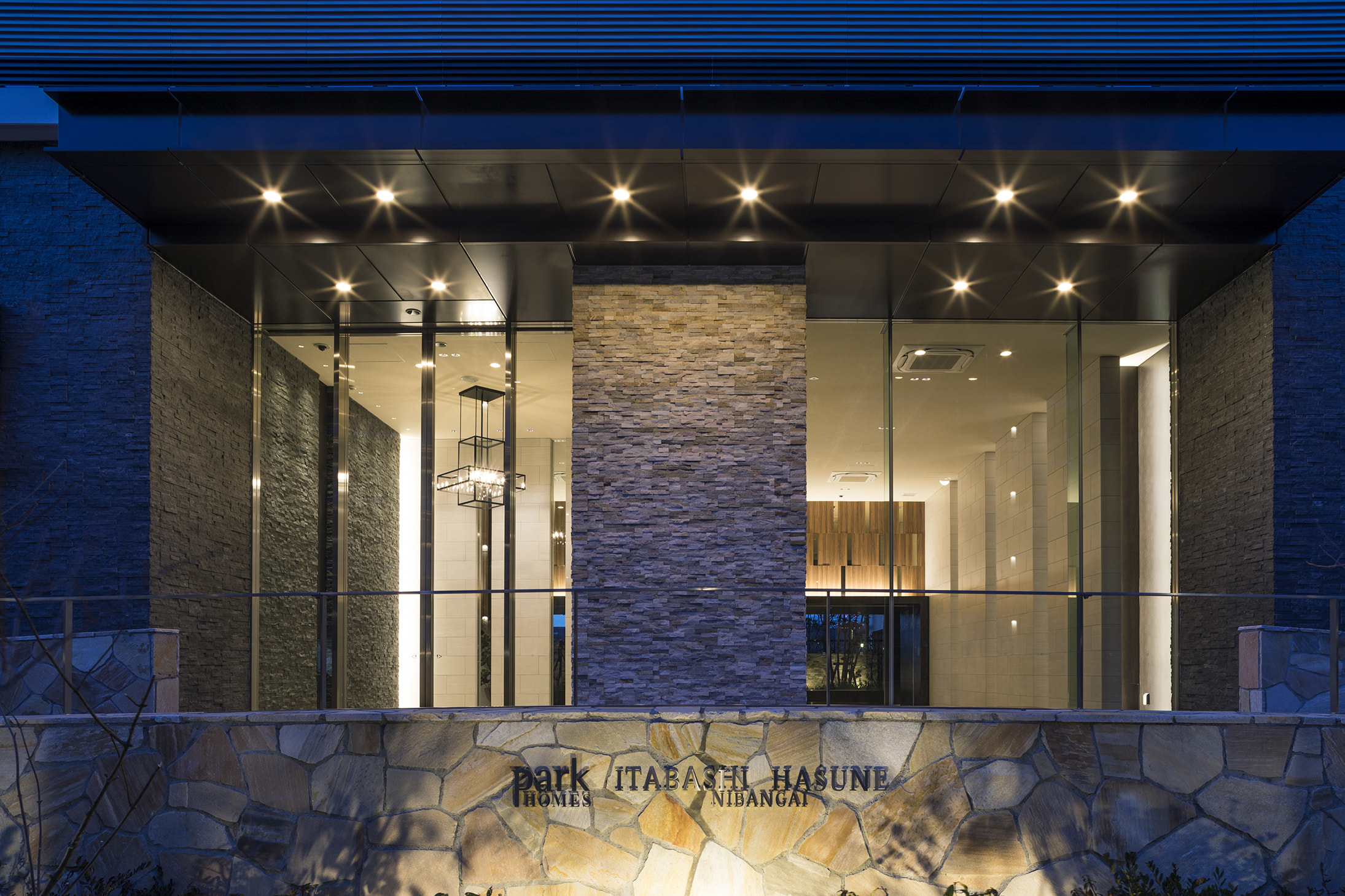 デザインコンセプトは、ゆったりとした温かみを表現した「Slow&Harmony」。外観は一番街と調和する、温かみのあるアースカラーで、南面左部にはベイウィンドウを採用、縦に伸びるマリオンやホワイトのグリッドラインで建物全体にリズム感を与えています。エントランス部分には、石壁などの自然素材による柔らかな印象とともに、ワイドなガラス張りと重厚な庇でスケールに相応しい「品格」を表現。曲線を描くスロープのアプローチを抜けた先には、二層吹抜けの上質な迎賓空間が広がります。