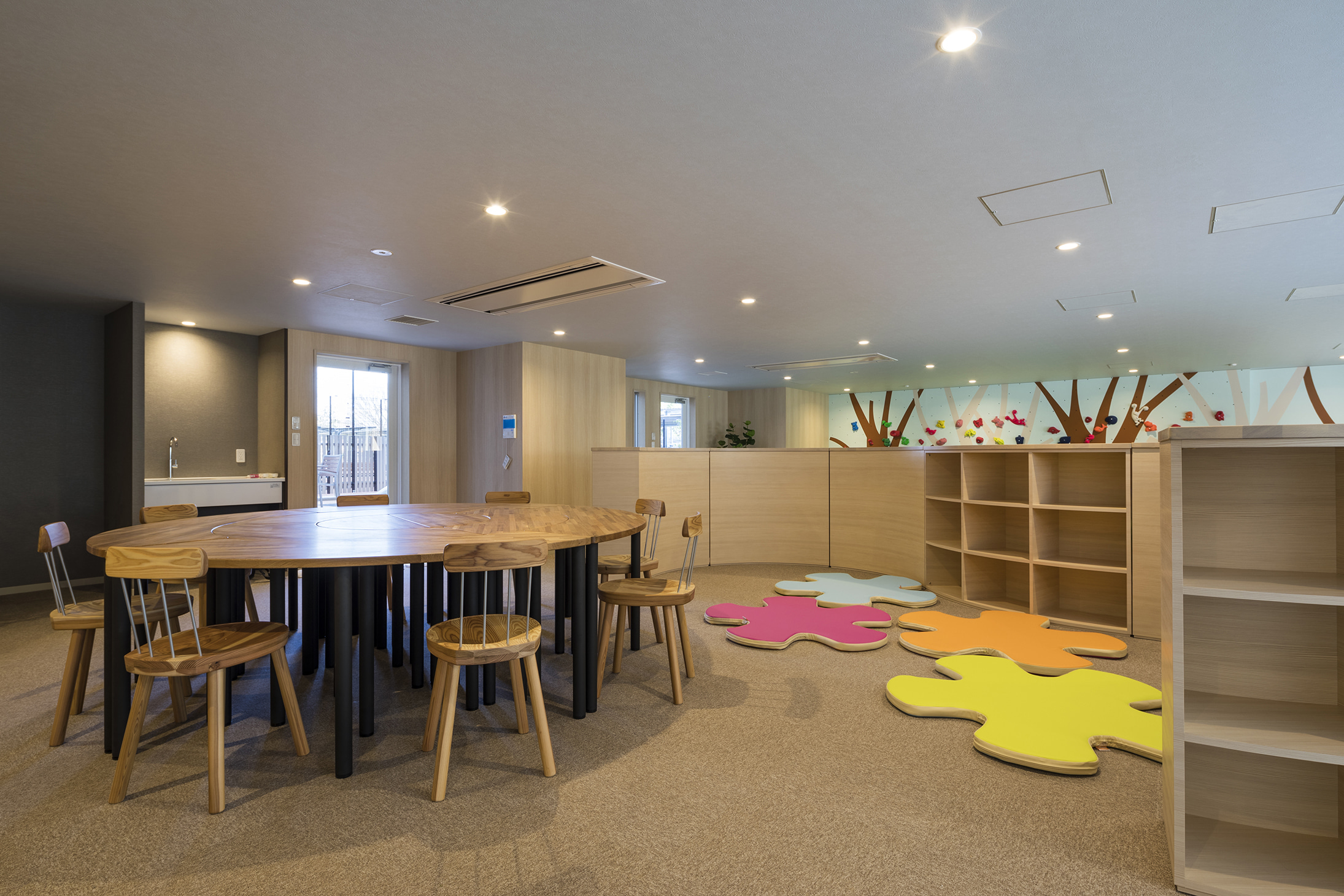「ママズラウンジ」「キッズスペース」「親子の工作コーナー」の3つのスペースから構成された共用スペースです。