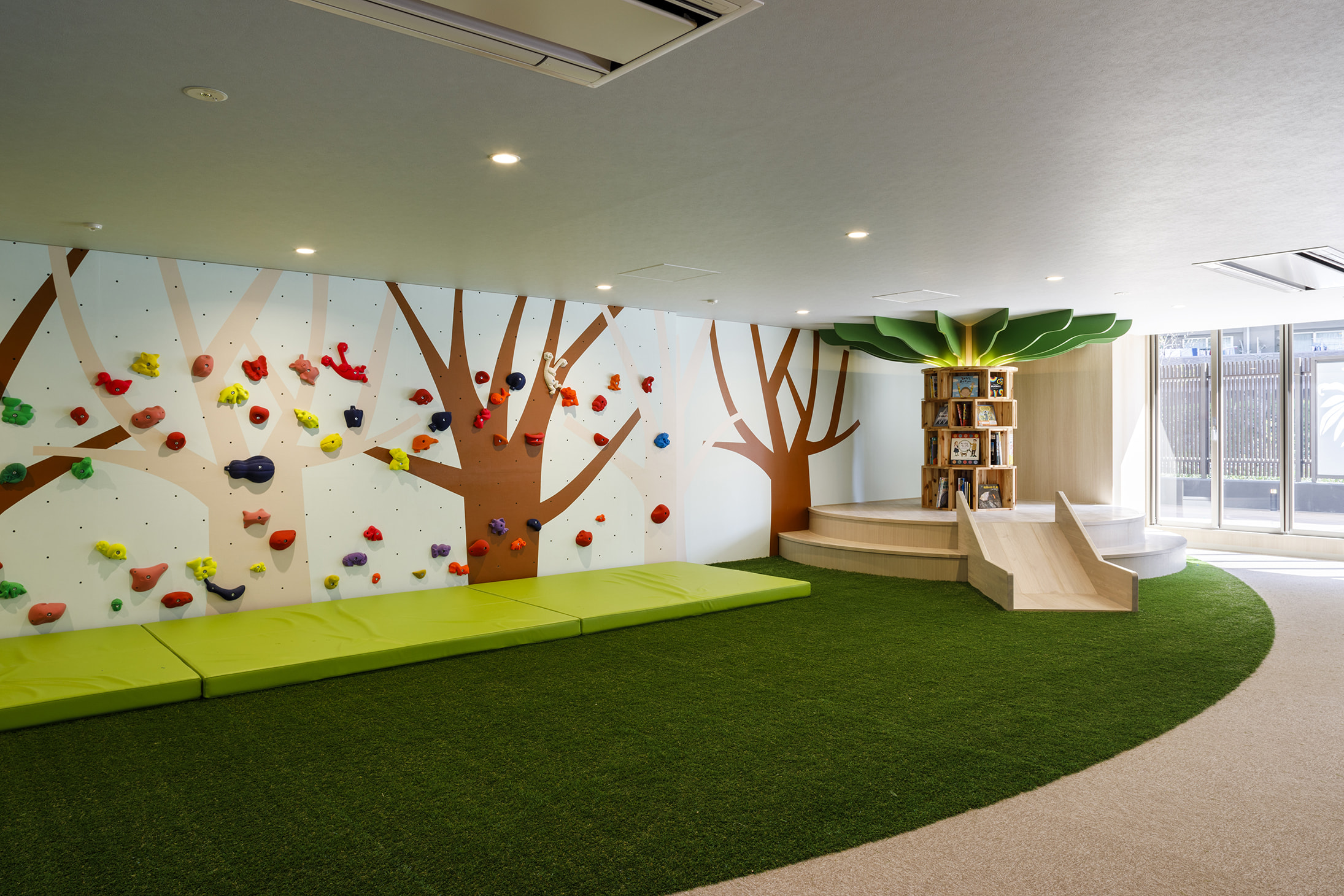 読書を楽しんだり、ボルダリングで遊べるスペースで、雨の日も元気に冒険できる空間です。