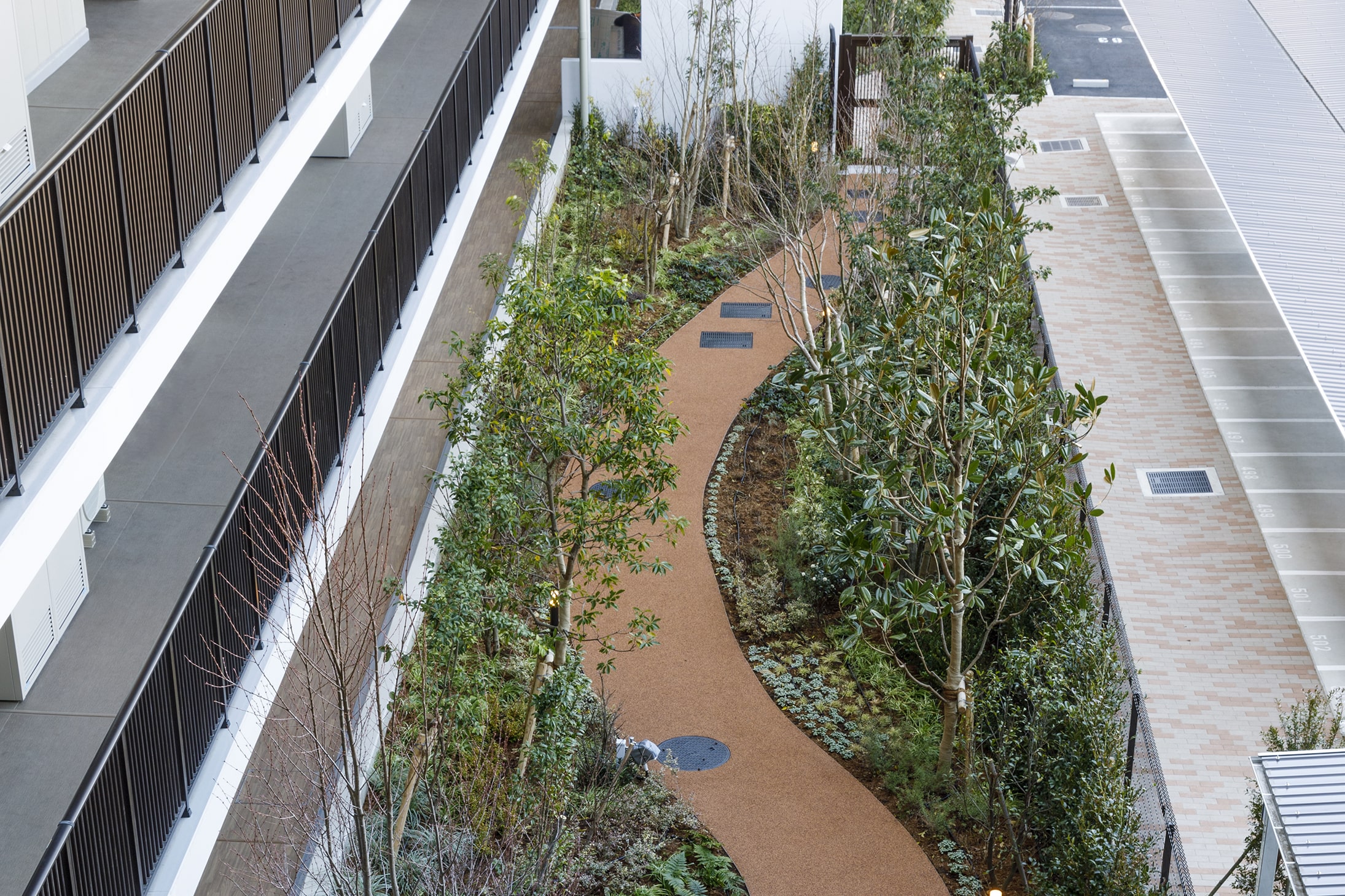全台平面駐車場や洗車スペース、チャイルドシートのあるレンタサイクルなど、よりスマートに、楽しく暮らせるサポート体制も整備。また、広大な敷地には自然溢れる広場や小径が設置され、心癒される緑彩空間が広がっています。