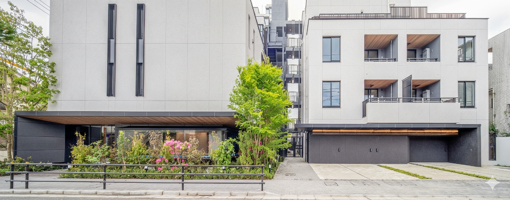 城北中央公園を暮らしの一部とする住まいに相応しい、自然を引き立てる白を基調としたデザイン。国産天然木をエントランスや各住戸のバルコニーの軒天に採用することで、経年と共に天然木が質感を深め、愛着と誇りがいっそう感じられる住まいに彩られていきます。エントランスは、公園の四阿(あずまや)をテーマにしたデザイン。天然木と鋼板で縁どられた庇と、豊かに植えられた樹木や緑が調和した佇まいが、美しく瑞々しい風景を描き出し、住む人々を優しく迎えます。