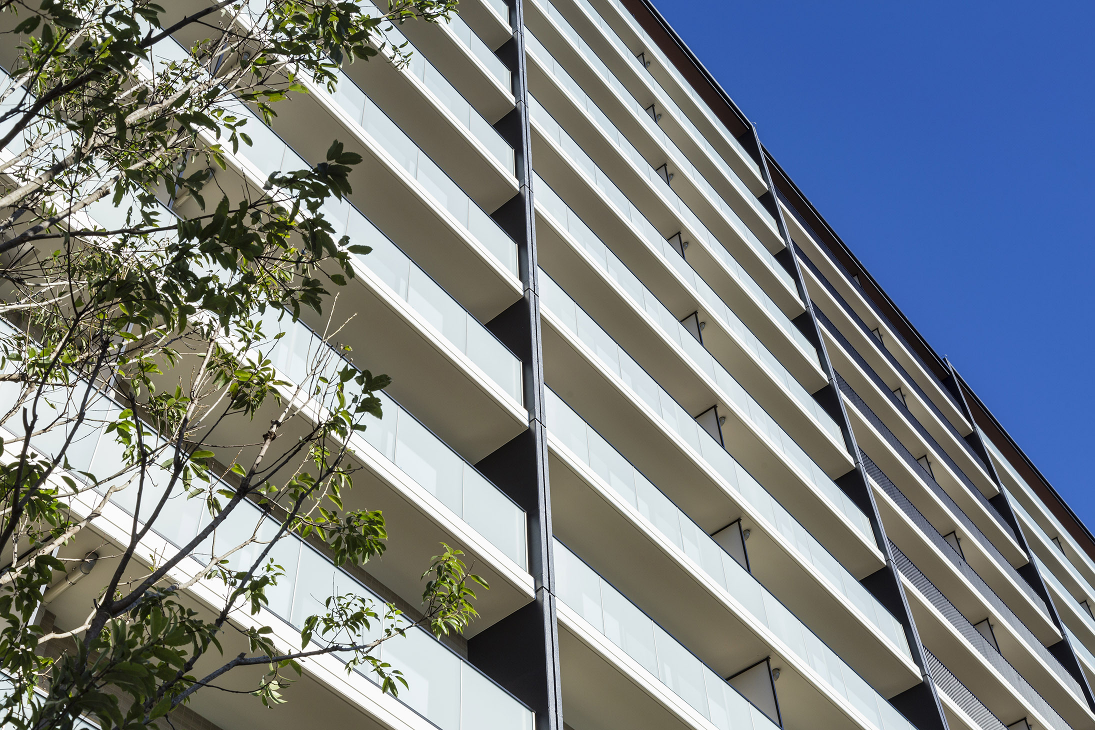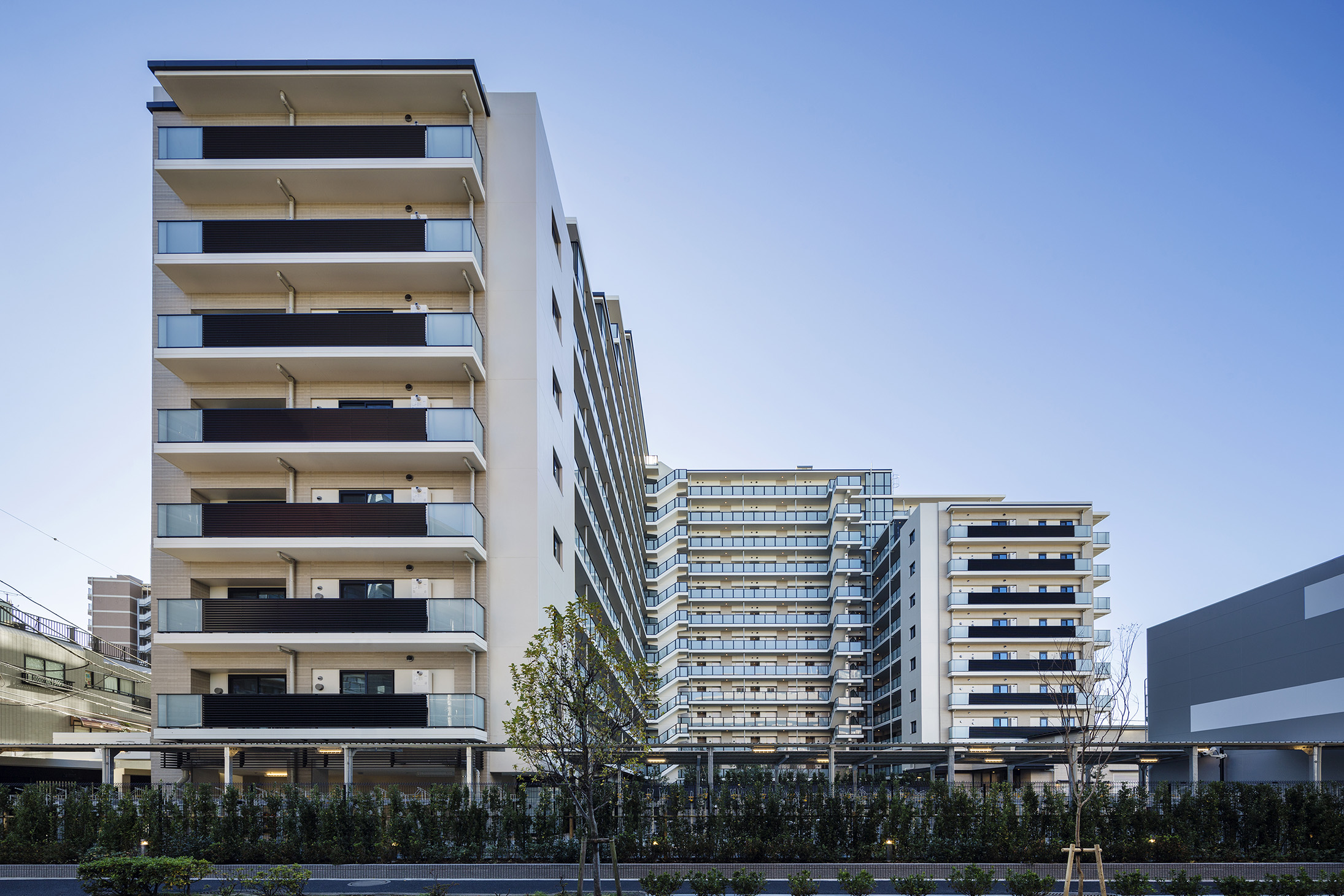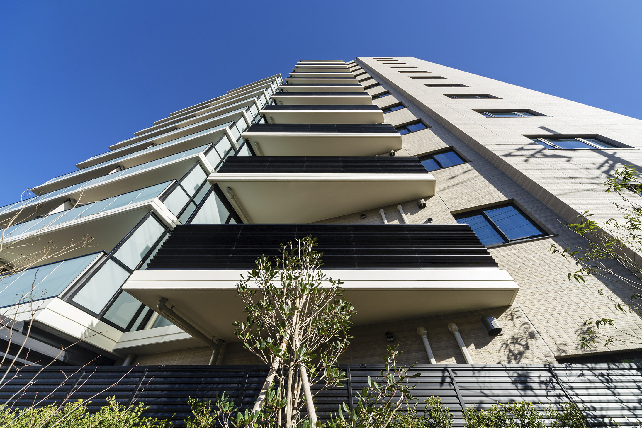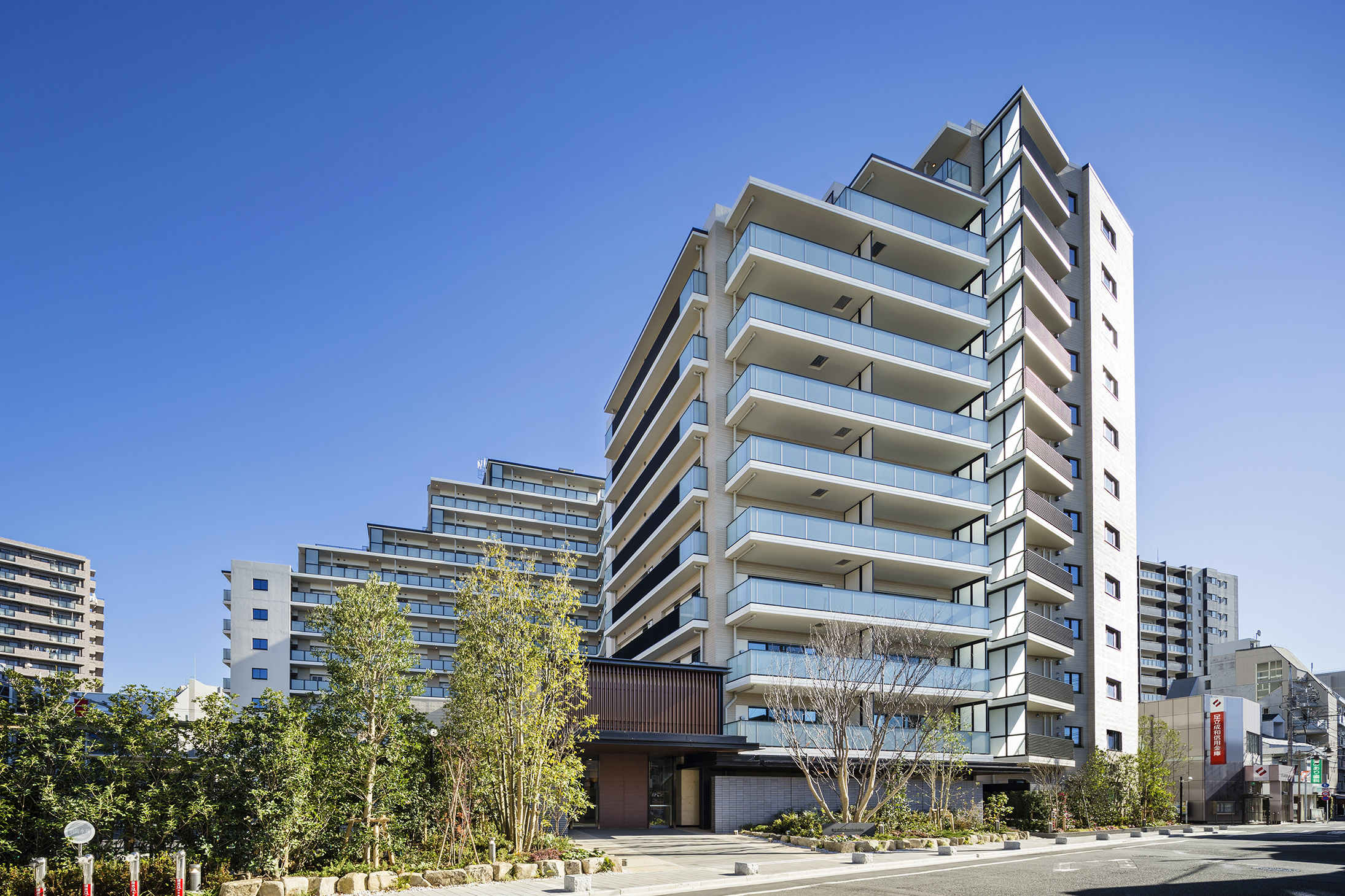 デザイン 邸宅としての佇まいを意識したファサード。 土の風合いを感じるタイルや、マリオンにより分節化され細やかな印象を持たせた工夫など、邸宅としての美意識を大切にしたデザイン。街を象徴するレジデンスに相応しい意匠を実現しています。