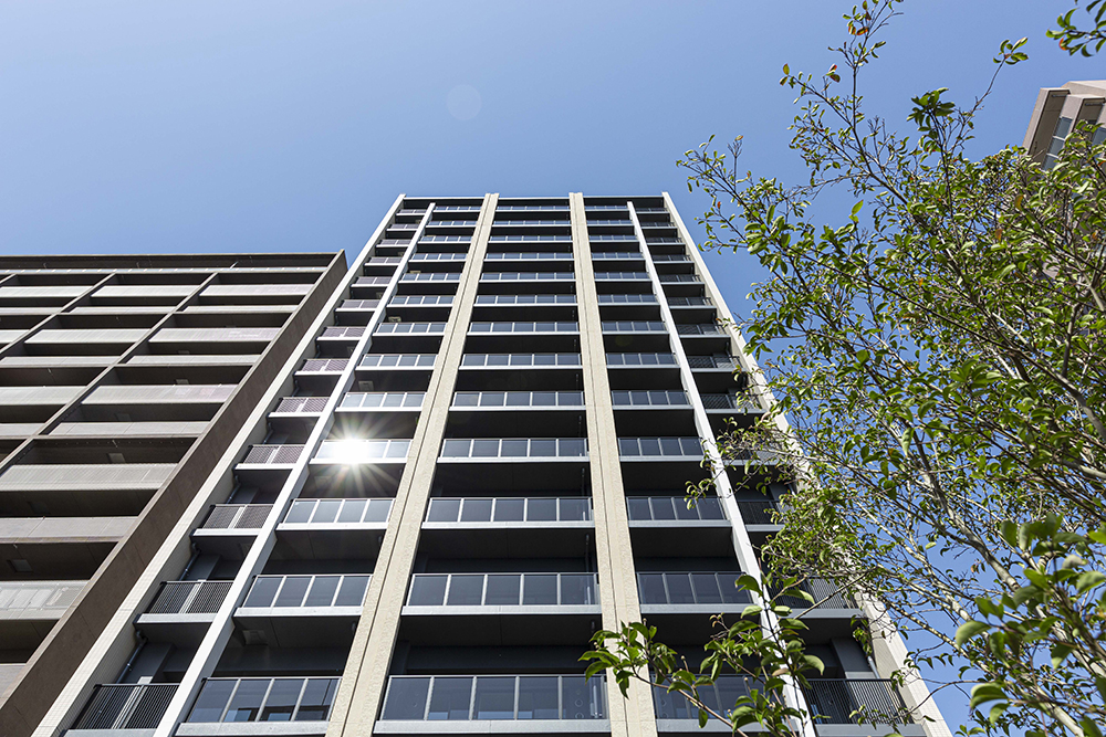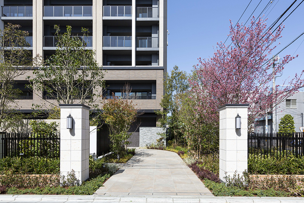 地歴を継ぐ「蔵づくりのまち川越」。そんな地に相応しい、格式ある洋館を彷彿とさせる佇まい。外観意匠で特徴的なマリオンは、太さや長さを変えることで、様式美を主張。リブで陰影をつけ、基壇部との切り替えにモールディングを採用し、シンメトリーで端正なフォルムにアクセントを加えます。色合いは、アースカラーが基調。川越に残っている建築様式に倣い、左右対称の空間配置などクラシックな要素を省略せず、モダンに再解釈して表現。次の時代へ継承される川越を感じる街づくりの一翼を担います。