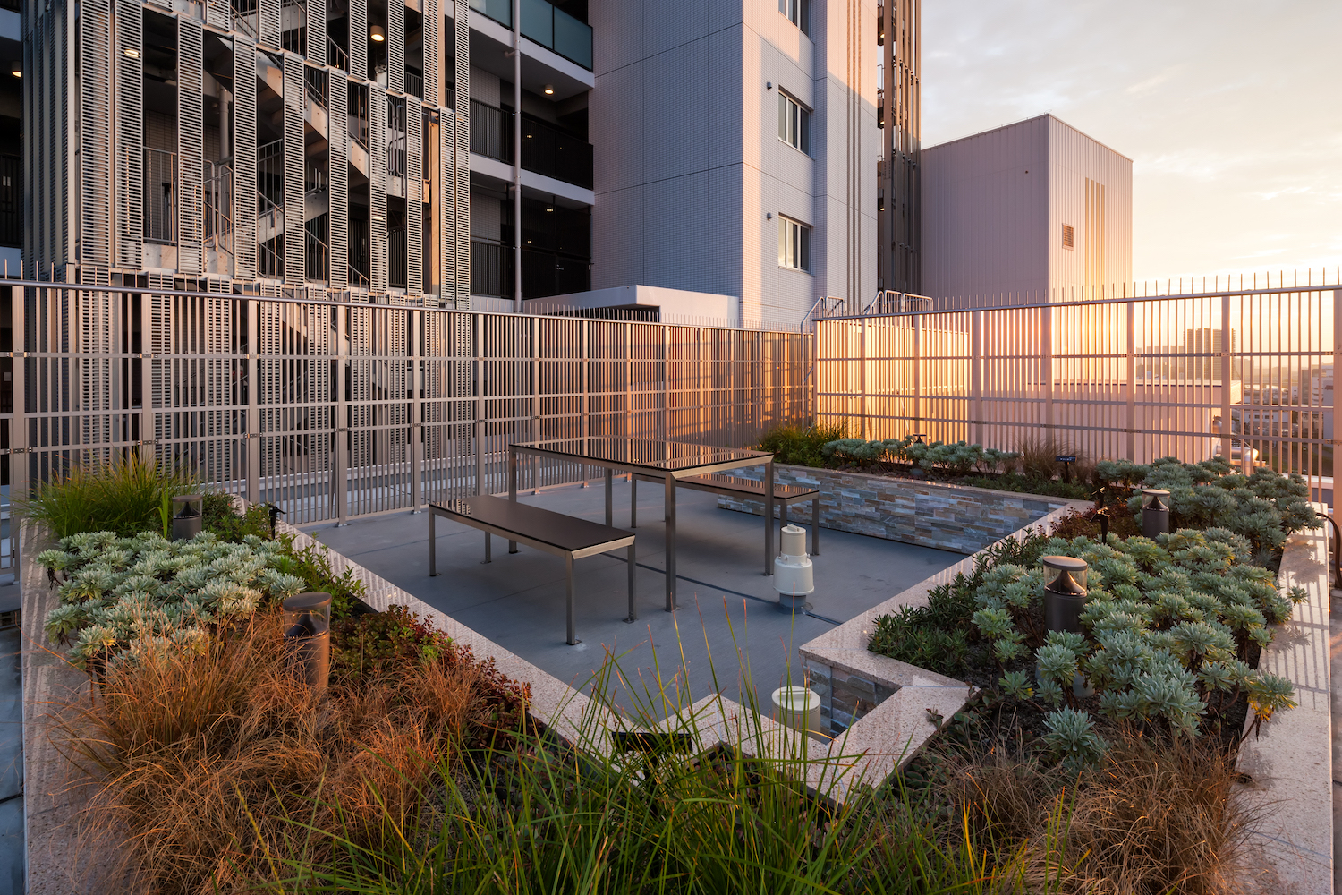 東棟屋上には、大きな空と見晴らしを満喫できる「空庭」を配置。壮大な眺めは、ランドマークに住む誇りと歓びを実感させてくれます。入居者同士の交流の場にもなるスペースです。