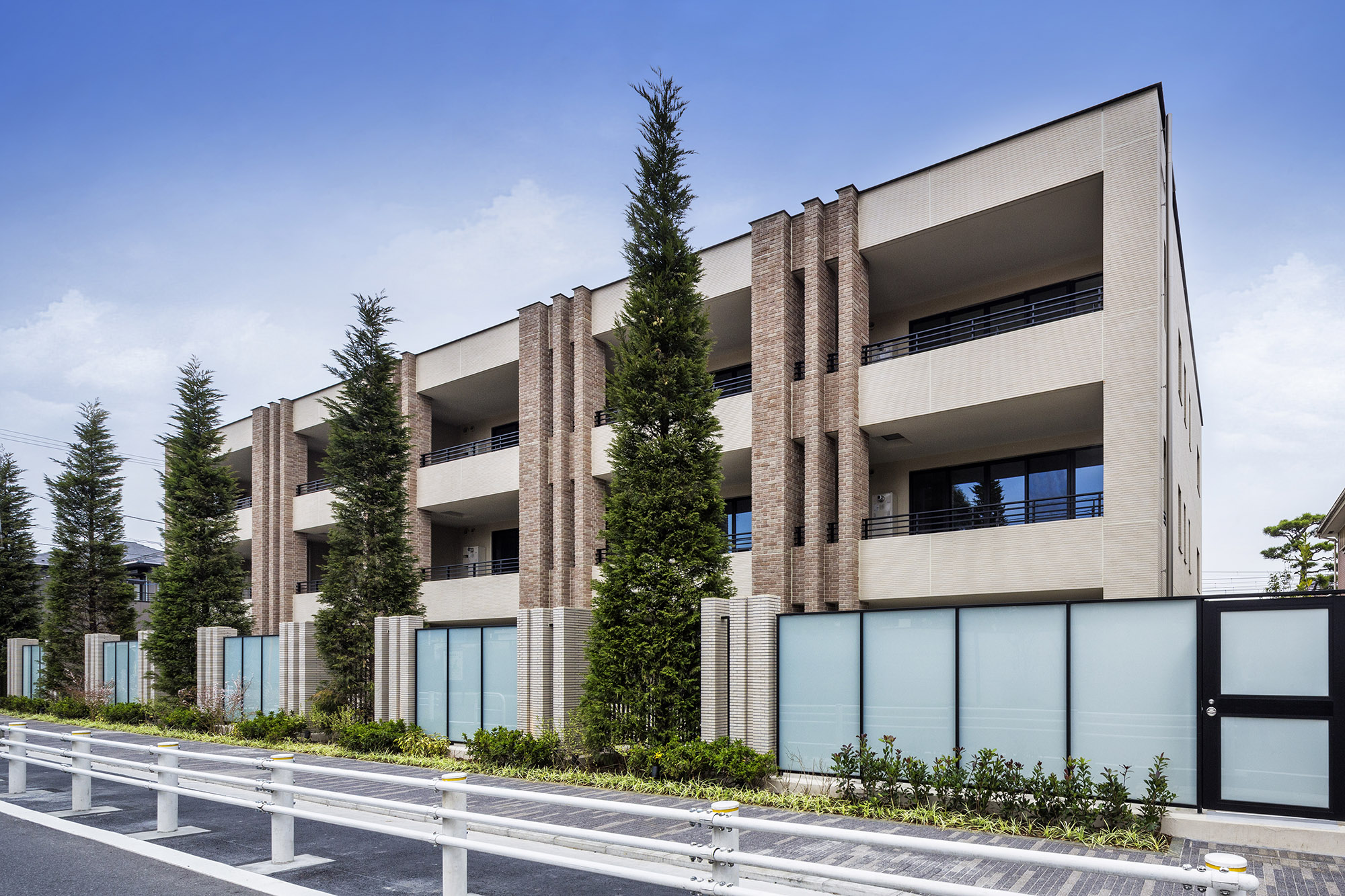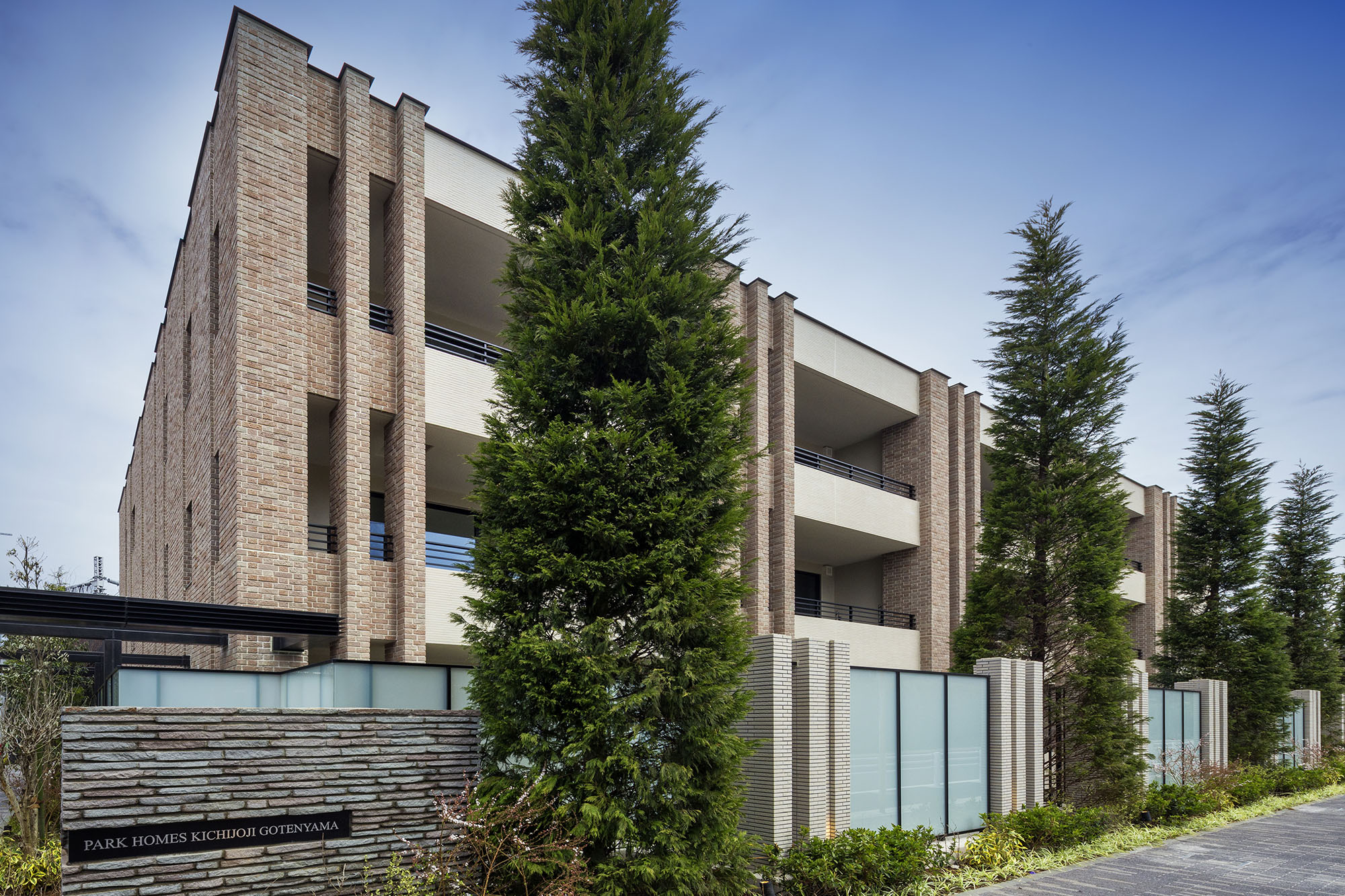 「井の頭恩賜公園」に臨み、邸宅の連なる第一種低層住居専用地域が広がる「御殿山一丁目」に佇む「パークホームズ吉祥寺御殿山」。その外観には、吉祥寺の街の景観にも見られるノスタルジックなレンガ調タイルが取り入れられ、ハンドメイドの温もりや趣き深さがデザインされています。敷地南側にはシンボリックな針葉樹を列植し、縦のラインを強調するマリオンと共に建物を美しく演出。また、エントランスまわりにも針葉樹や武蔵野市「市民の木」であるケヤキを配植し、アプローチ脇の西側前面道路はインターロッキング舗装とするなど、周囲景観との調和を図っています。住まわれる方の誇りとなる高級感と同時に、安らぎや、温かみを感じることができるレジデンスです。