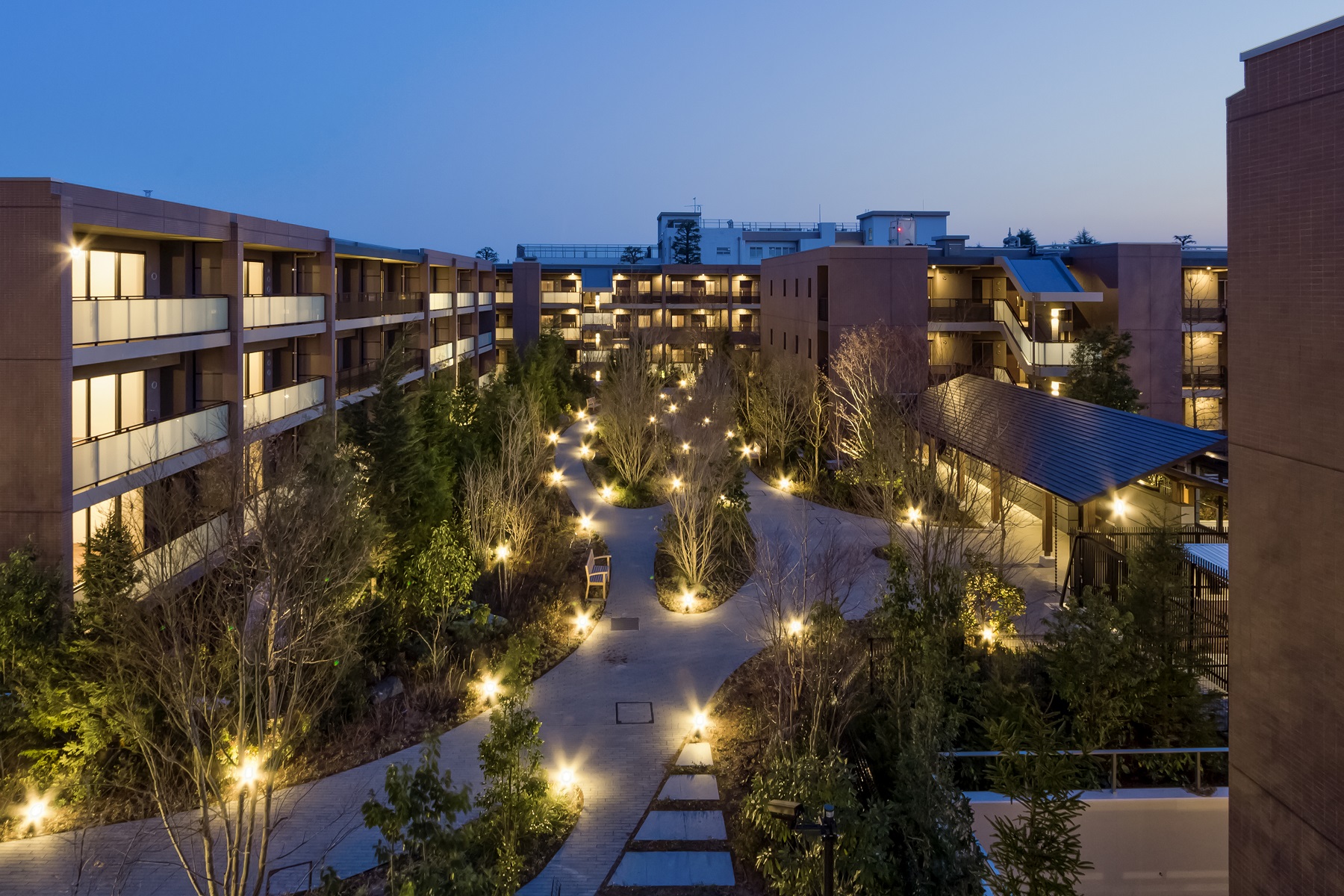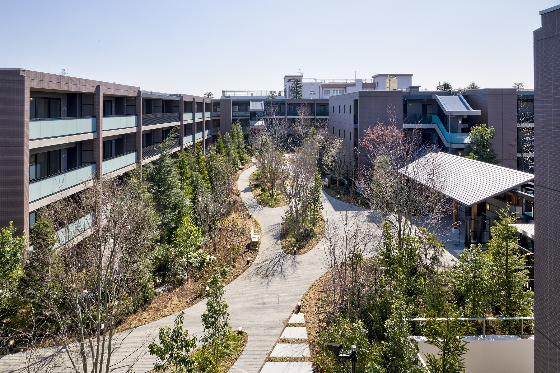 ガラス張りで洗練された印象のヴィラエントランスを抜けると、大きな窓と高い天井の開放感あふれるガーデンコリドーが広がります。そこはまるで、プライベートヴィラに帰ってきたような落ち着きが、住まう人、訪れる人を包み込む、上質な迎賓空間です。他にも、暖炉風のしつらえで深いくつろぎへ誘うオーナーズラウンジ、キッチンとダイニングセットに加えてソファや本棚もある広々としたパーティールーム、ガーデンテーブルを備えた緑に包まれるフォレストテラスなどの共用スペースを完備。随所にVILLAを思わせる演出が施され、ゆったりと落ち着いた暮らしを叶えてくれます。