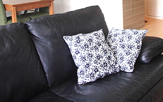 シンプルな花柄のクッションカバーも奥様のお手製。
