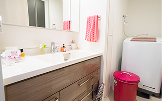 ピンクをアクセントとしたサニタリースペース。
