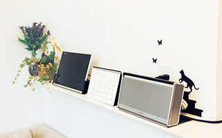 インテリアへのこだわりはカラーだけでなくデザインにも。タオルやハンガーなどの小物は大好きな黒猫をテーマに選んだ。