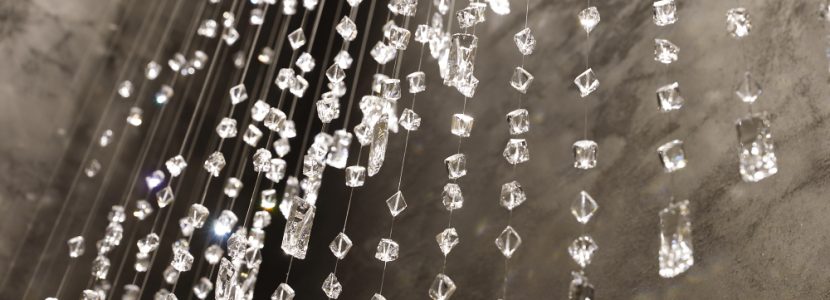 従前邸の広大な庭にあった滝をスワロフスキー®・クリスタルを使用したクリスタルアートで表現。周囲の左官仕上げによる壁面は、そのテクスチャーがかつての土の風合いや朝霧の輝きを想起させます。土地の記憶をエントランスホールに刻み、内包することで、由緒ある歴史を継承する空間を創り上げています。また、大判タイルを大胆に用いることで空間の高さや広さを強調。間接照明による光壁は、光による心の安らぎを演出します。