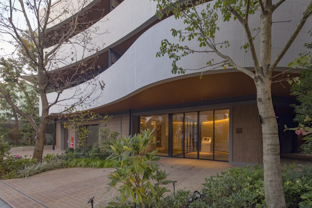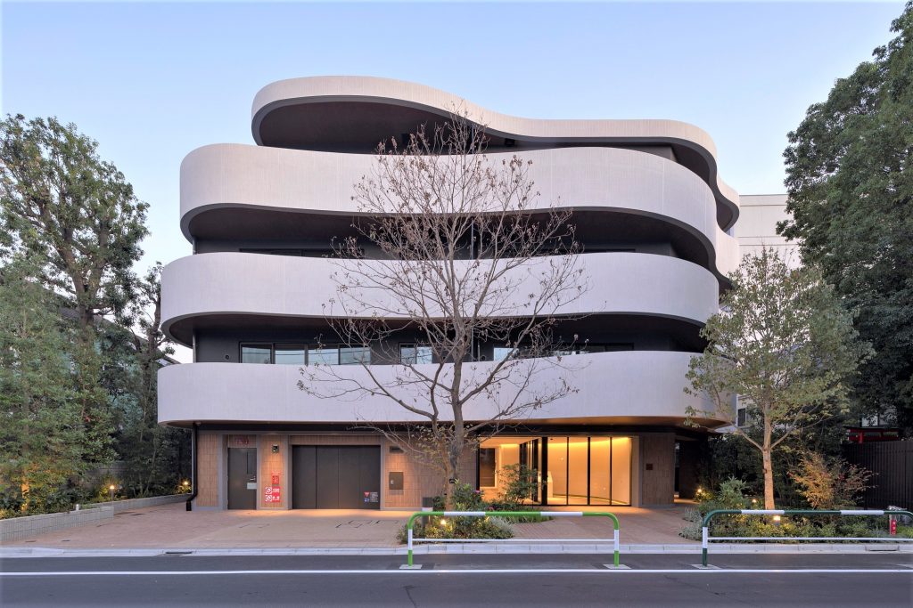 デザイン 住まう方を優しく迎え入れる、 曲線を活かしたファサード。 曲線がもつ柔らかで温もりのあるデザインが、ヒューマンスケールの心地よさを演出。駒沢公園の緑との連続性を意識した、住まう方を優しく迎え入れるレジデンス。