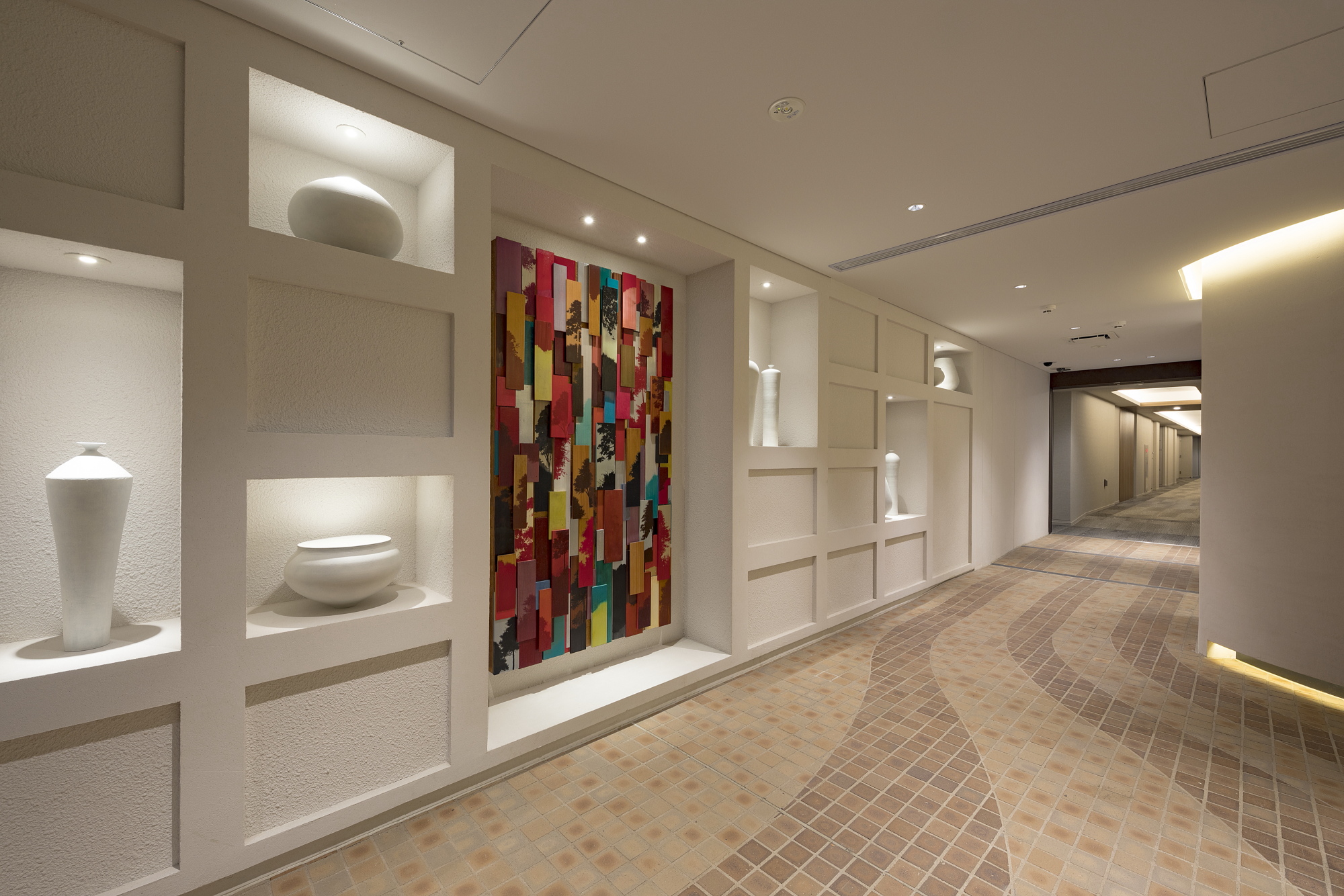 庭を感じる外部空間から内部空間へと呼応するように、エントランスホールにも曲線のデザインを取り入れ、内外の連続性を意識したクリエイティブスペースに仕上げました。