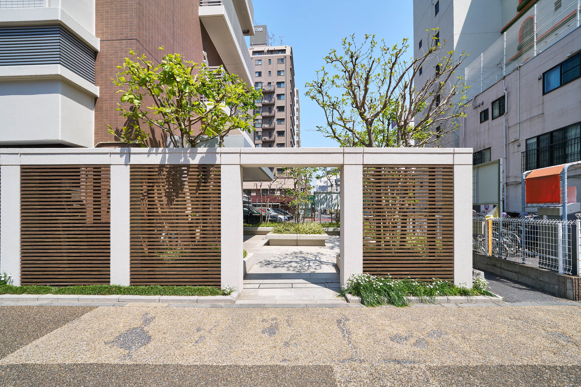 印象的にベニスモモのシンボルツリーを配した、気品あふれるエントランス。周りには高低バランスよく配した豊かな植栽、外部からの視線を緩やかに遮るウッドフェンスが設置されており、潤いと安らぎの空間を形成しています。風除室とエントランスホールは、壁を異なる色や素材で貼り分け、モダンな印象のデザインに。明るく洗練された空間が、住まう方や訪れる方を優しく迎え入れてくれます。