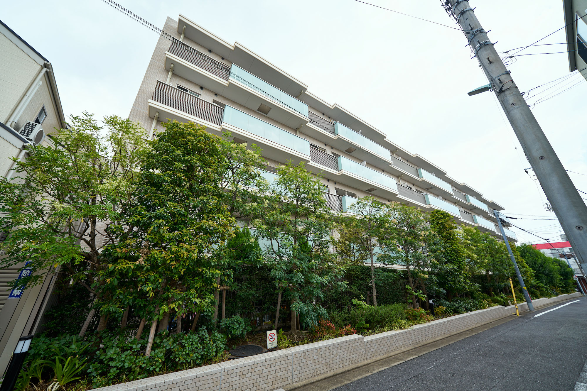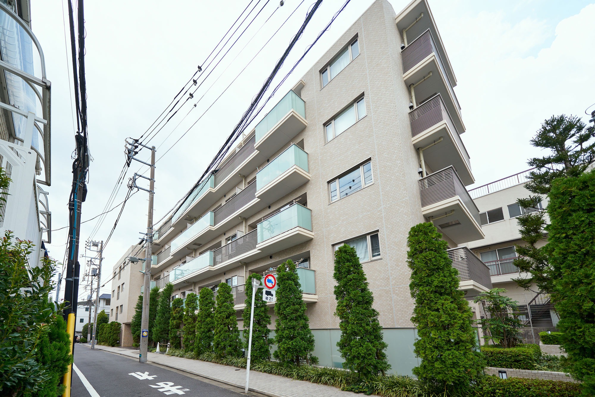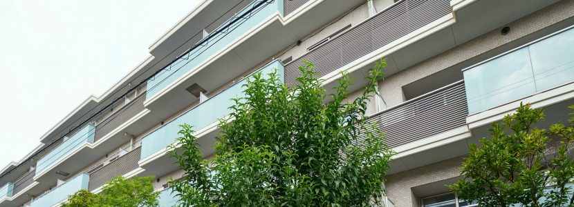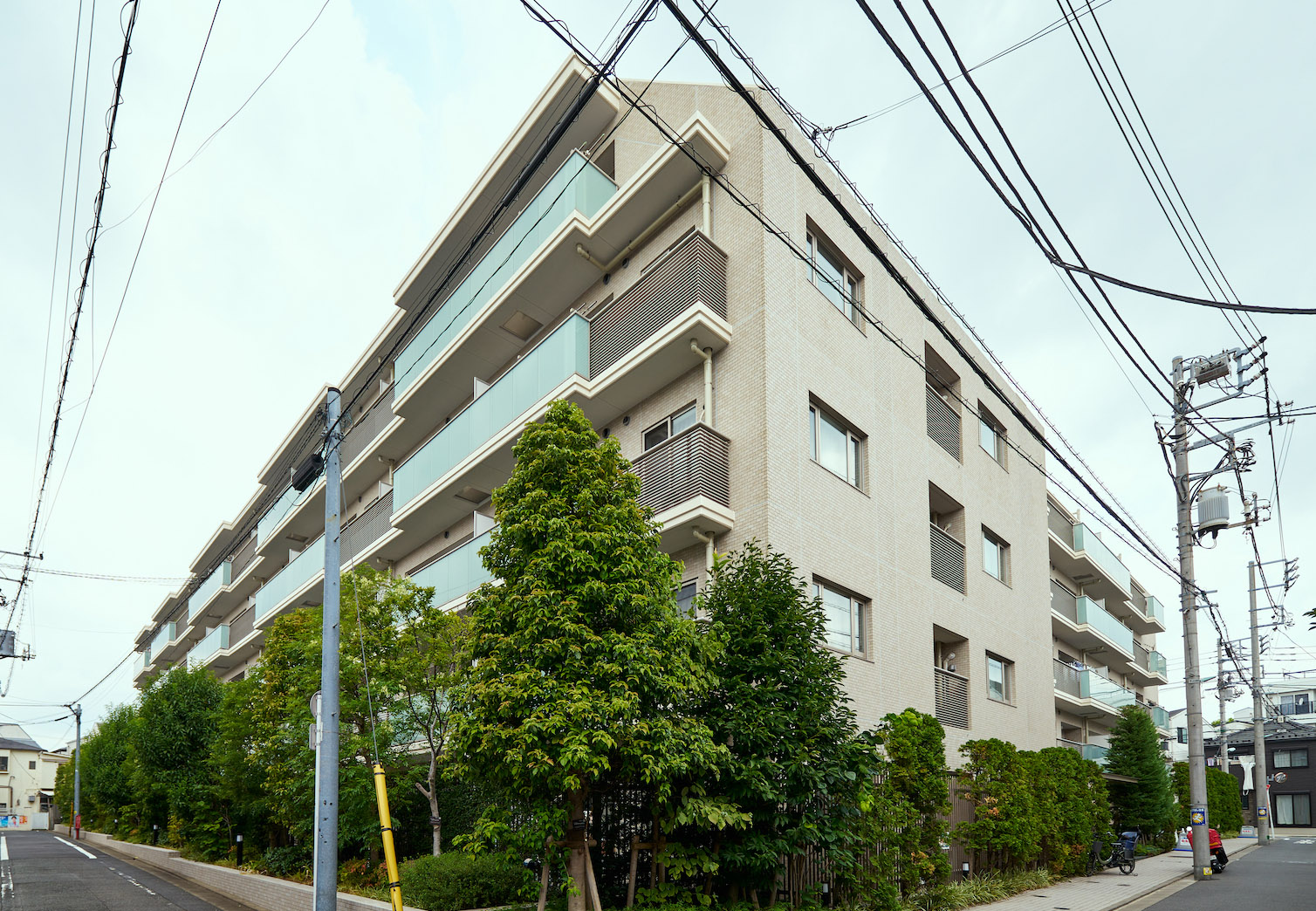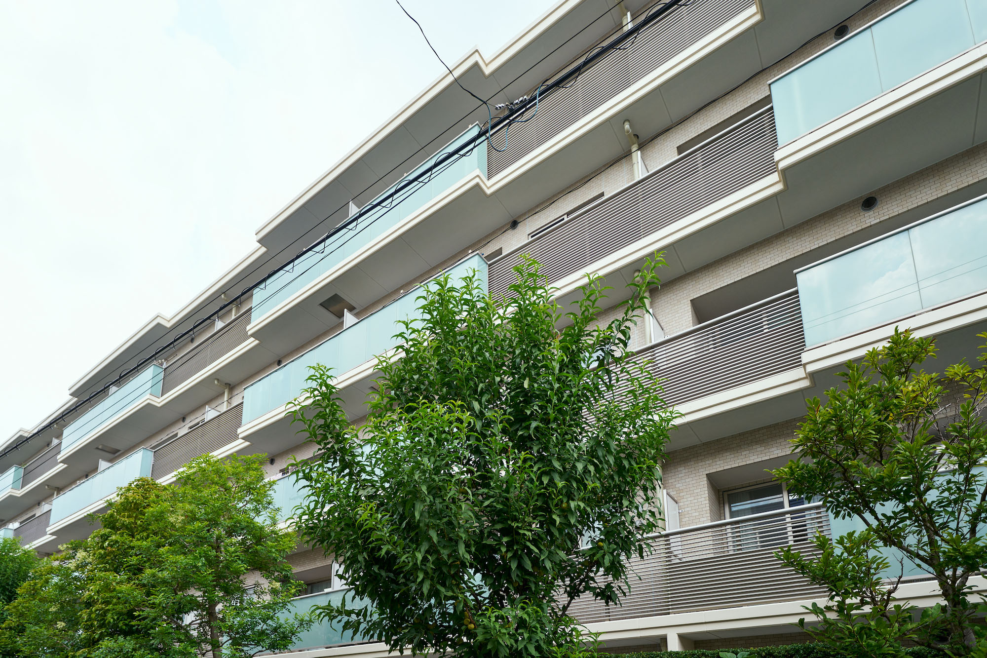 「パークホームズ目黒中町」の意匠のテーマは、「リファインドモダン(洗練されたモダン)」。色調は品の良いベージュトーンとしながらも、バルコニーのアルミ横ルーバーや、水平に伸びる連続したガラス手摺などでシャープなラインを強調。またバルコニーの凹凸形状や素材の切り替えで建物に変化やリズム感を創出。さらに外壁タイルのナチュラルなテクスチャーとガラス・金属など素材のコントラストが、深い印象を残す佇まいを生み出しています。バルコニーのガラスの縦フレームを最小限にするなど、ガラスの持つ透明感が分断されることなく、美しさの精度が高められています。