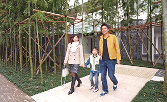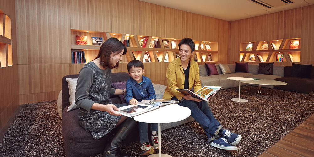 「エントランスのデザインや竹林も気に入っています。パーティルームなどの共用施設も充実していて、子どもの友だち3家族で、たこ焼きパーティを開いたりしています。宿泊もできるんですよ」「仕事から帰宅した時、エントランスに入ると、コンシェルジュの方が『おかえりなさい』と声をかけてくれるんです。そんな時、大きな喜びを感じます」外観デザインやソフトサービスの点でも満足していると語ってくれた。