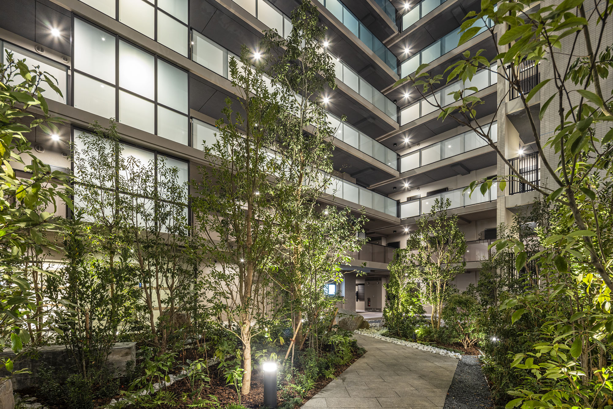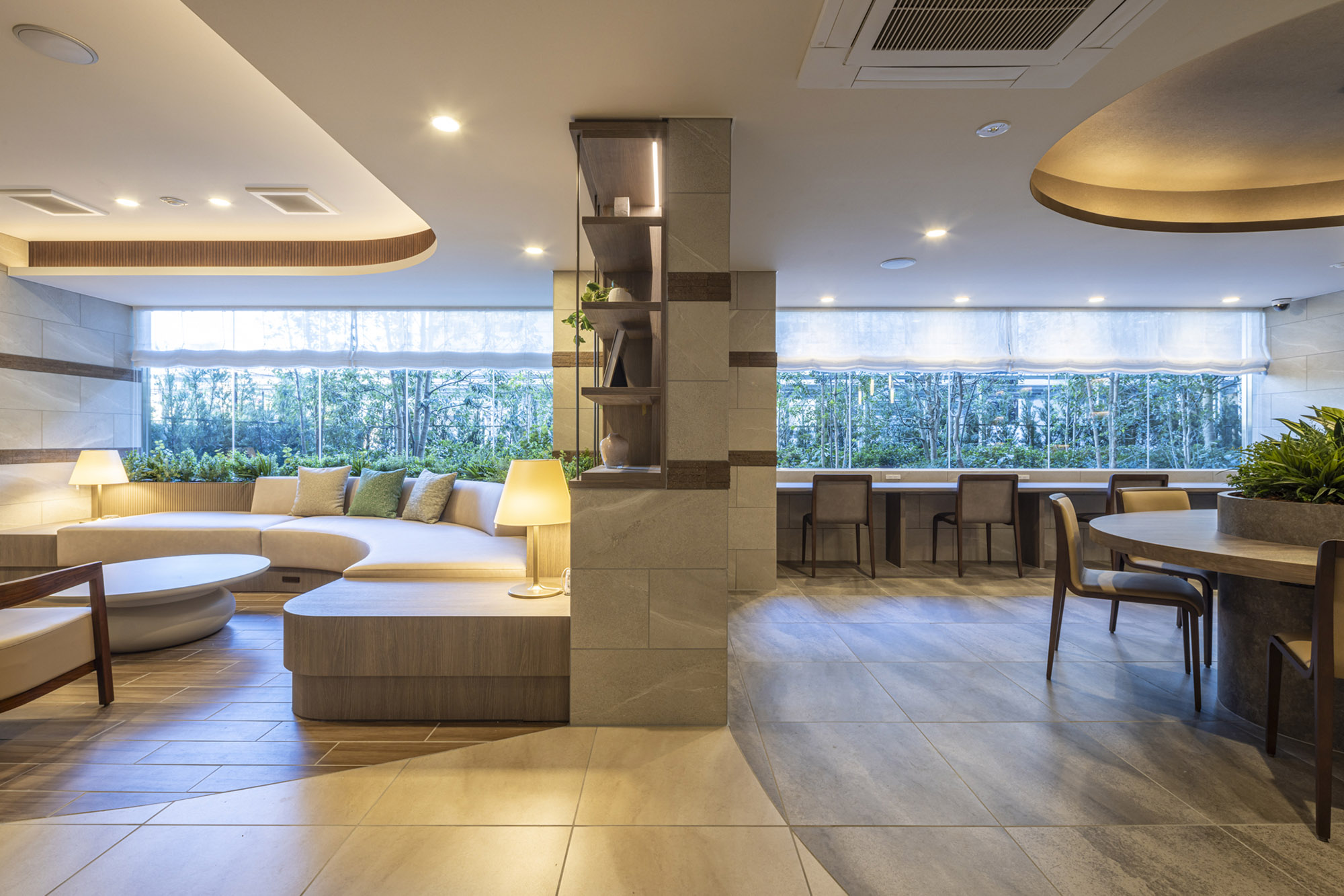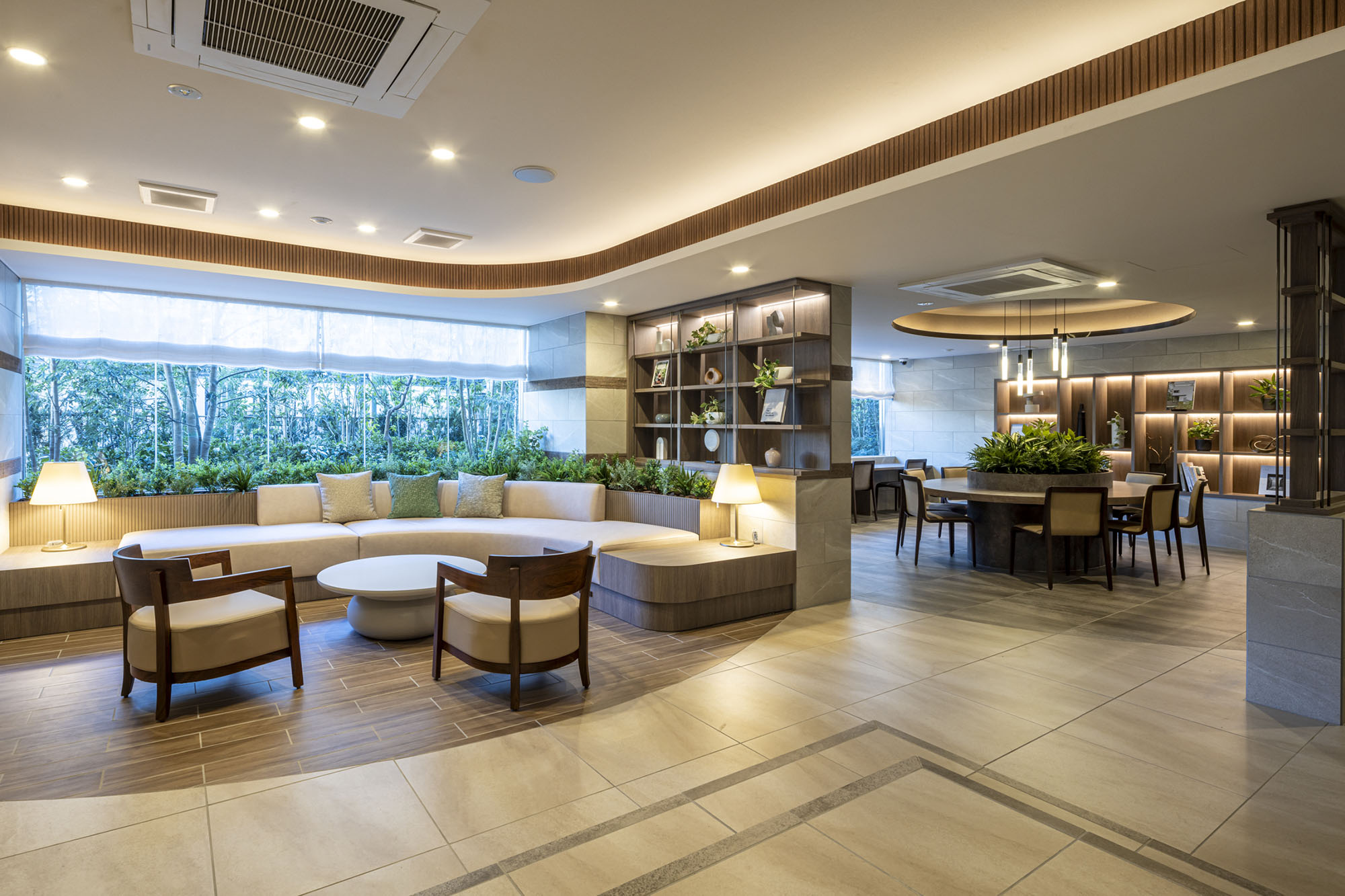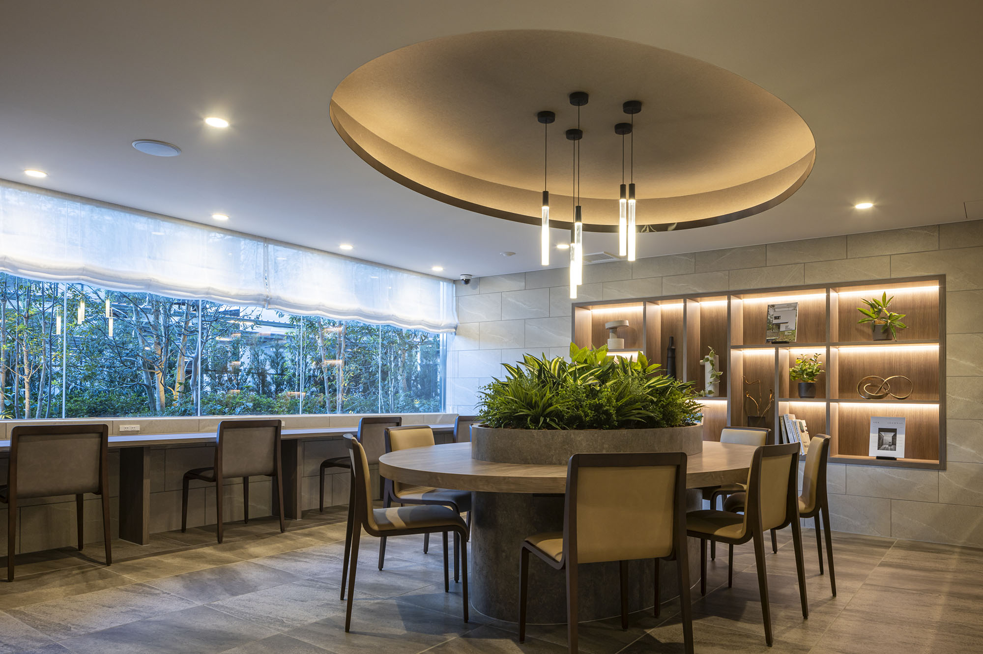 シンボルツリーをはじめ美しい緑が誘う優雅な迎賓のエントランスアプローチ。ホテルライクな車寄せは、雨の日にも濡れずに入館でき、荷物の多い時にも便利です。メインエントランスの先には、中庭の緑を眺めながら寛げる「待合スペース」、ゆったりとしたソファが設置された「リラクゼーションラウンジ」、窓辺のカウンターや本棚を設けた「ライブラリーラウンジ」があり、優雅なひとときを過ごせる空間が広がります。「プライベートワークブース」は電源完備で、仕事や勉強、オンライン会議にも使える鍵付きの個室スペースです。さらに多目的に使える「ユーティリティスペース」も完備。コミュニティ内の交流、趣味などのサークル活動、クリスマスパーティなど、プラスアルファの豊かなマンションライフの拠点となります。