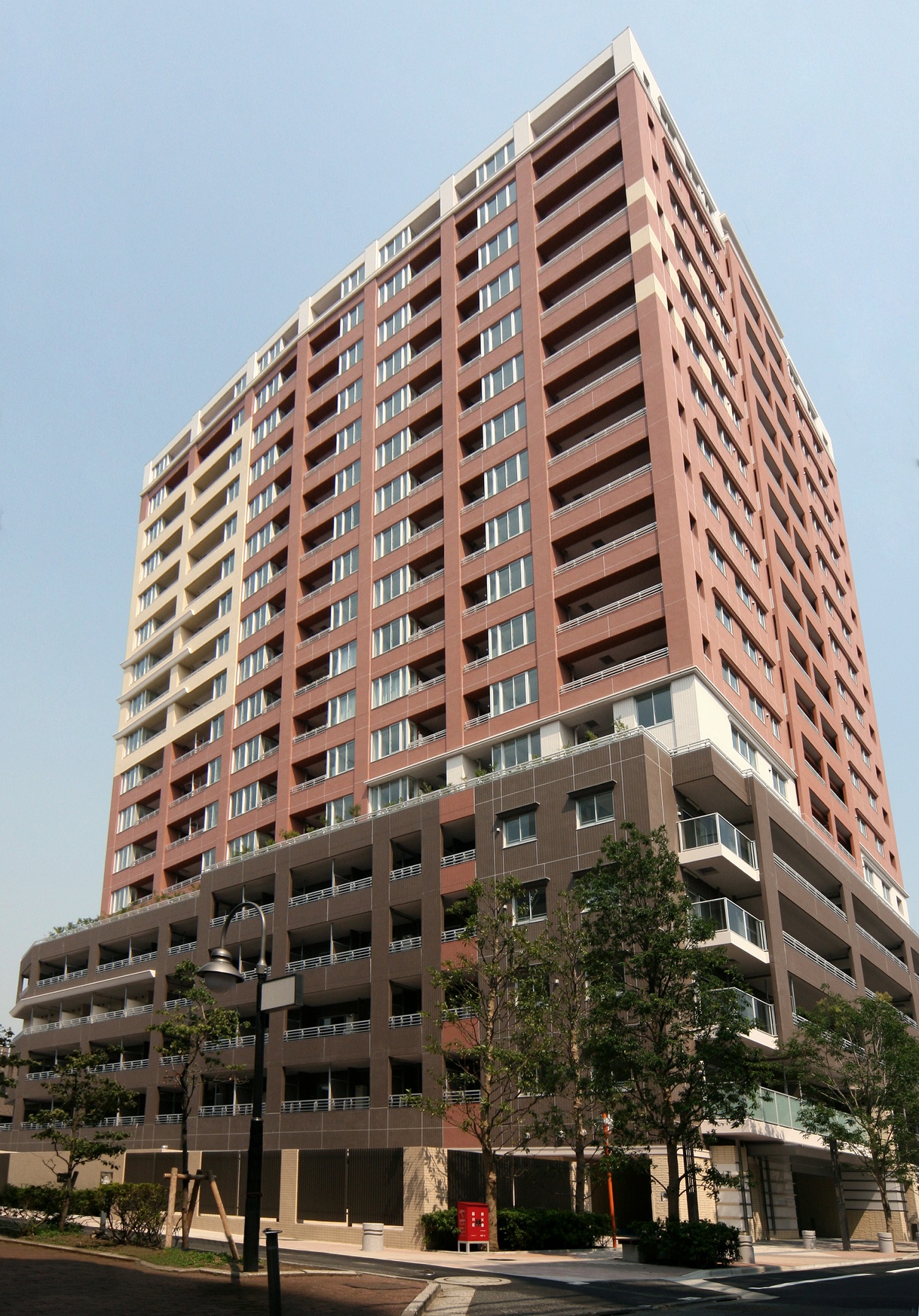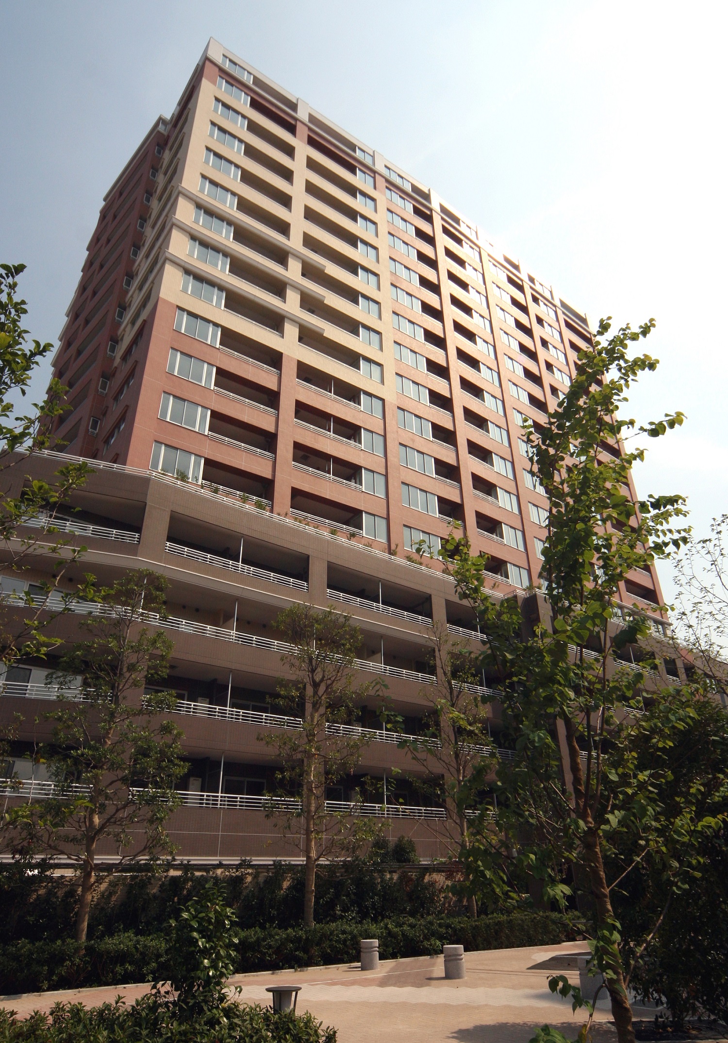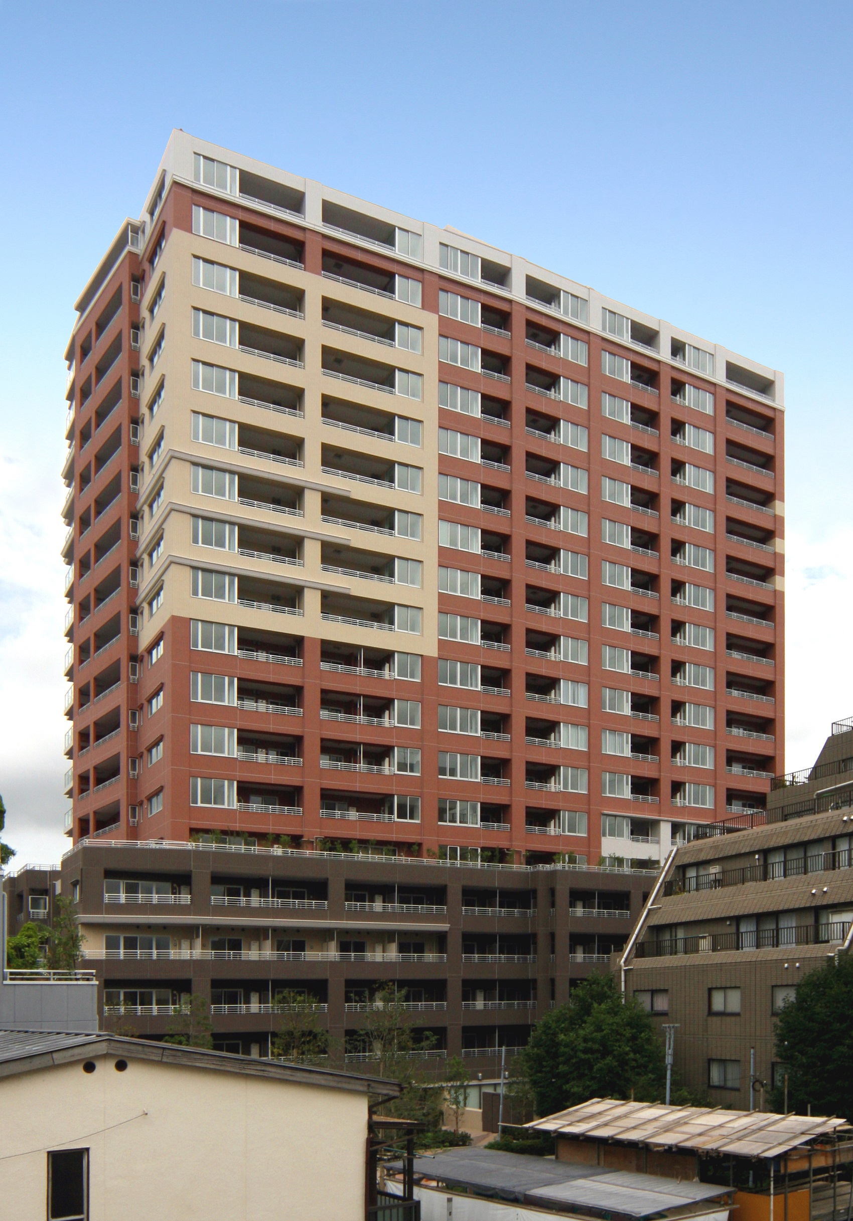 外壁には伝統的で落ち着いたアーストーンのレンガ調タイルを使いながら、伝統から一歩抜け出すコンテンポラリーなデザインスタイルを追求。威厳さえ漂わせるシンプルでエレガントな表情の中に、江戸時代の浮世絵に通じるような“粋”のセンスを端正に織り込むことで、武蔵小山ならではの洗練された生活感を表現しています。また、19階建というスケールを景観と調和させるために、視線が集まる先にはネックレスやイヤリングを思わせる新鮮で繊細なアクセントを演出。武蔵小山のもつ都市性と親密感をバランスよく映し出す、シンボルにふさわしい外観デザインです。