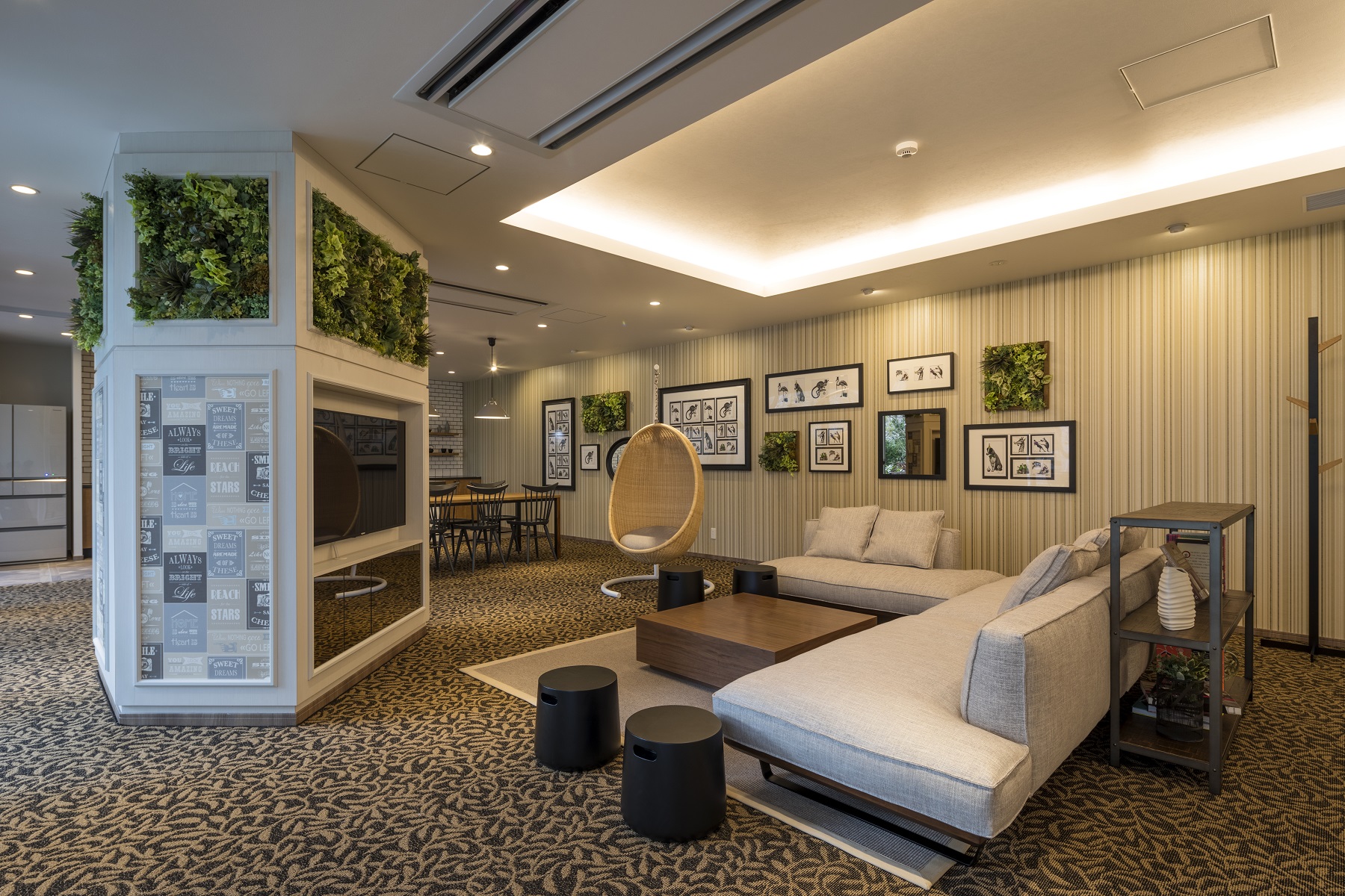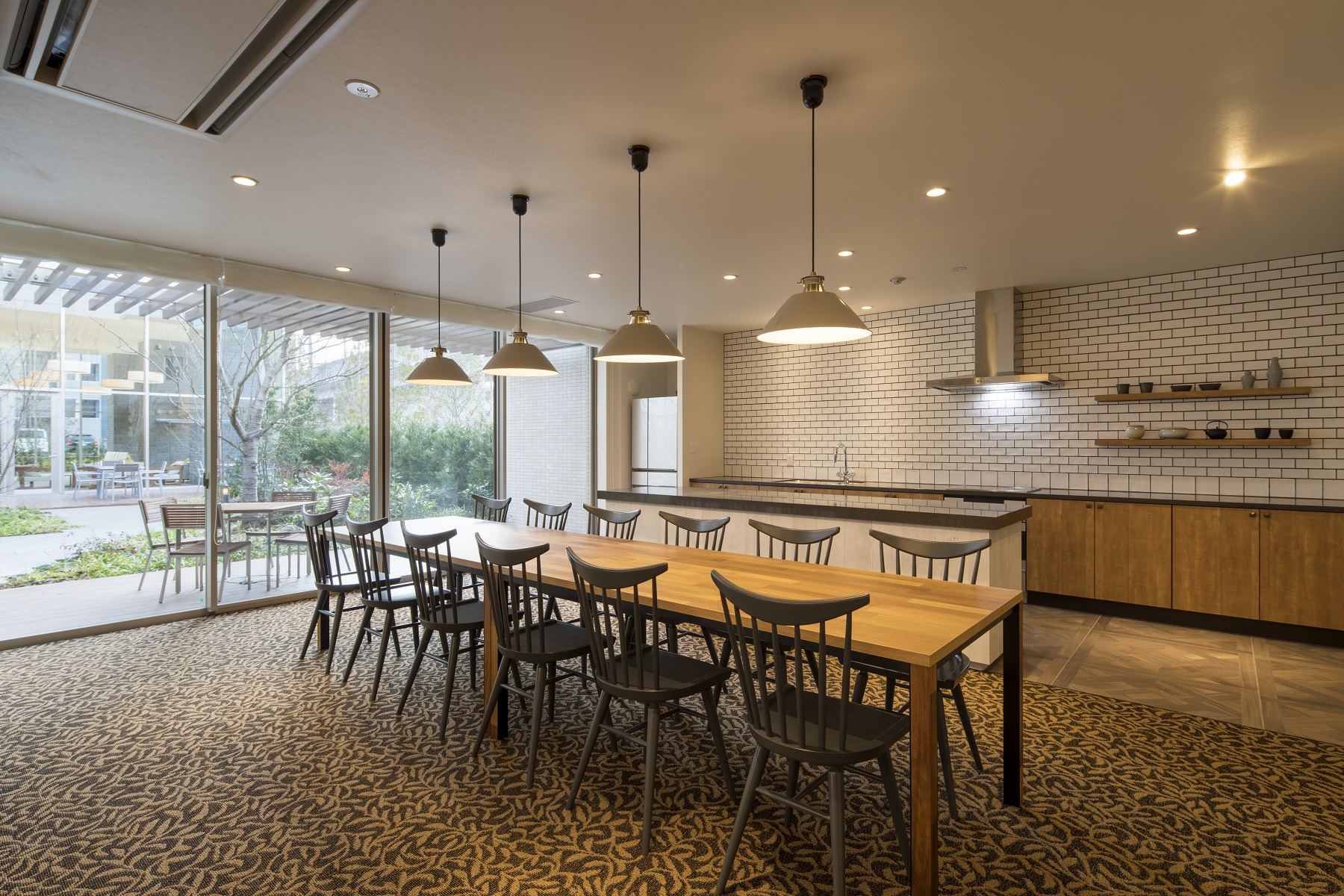 大窓を採用した2層吹抜のエントランスホールや、ガーデンビューラウンジなど、敷地内の景観を愉しめる共用スペースが備えられています。ランドスケープとのつながりを大切にした、豊かな緑と一体感のある空間です。また、スケールメリットを活かし、集いを愉しむコミュニティサロンやゲストルームなど、様々なシーンに対応する多彩な共用施設を完備。341家族の交流と暮らしやすさを包みます。