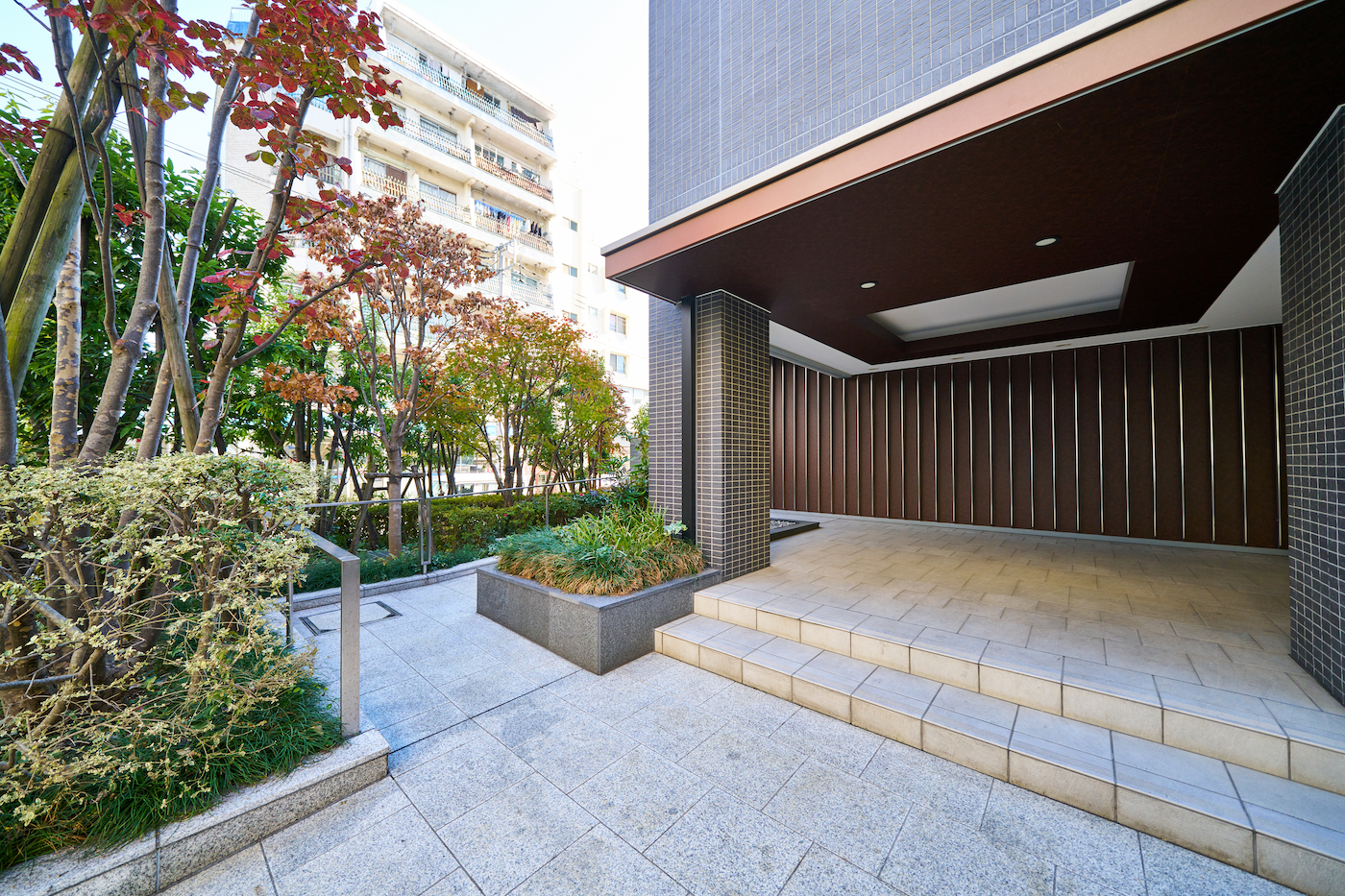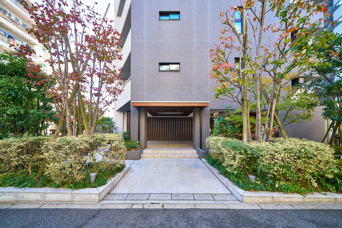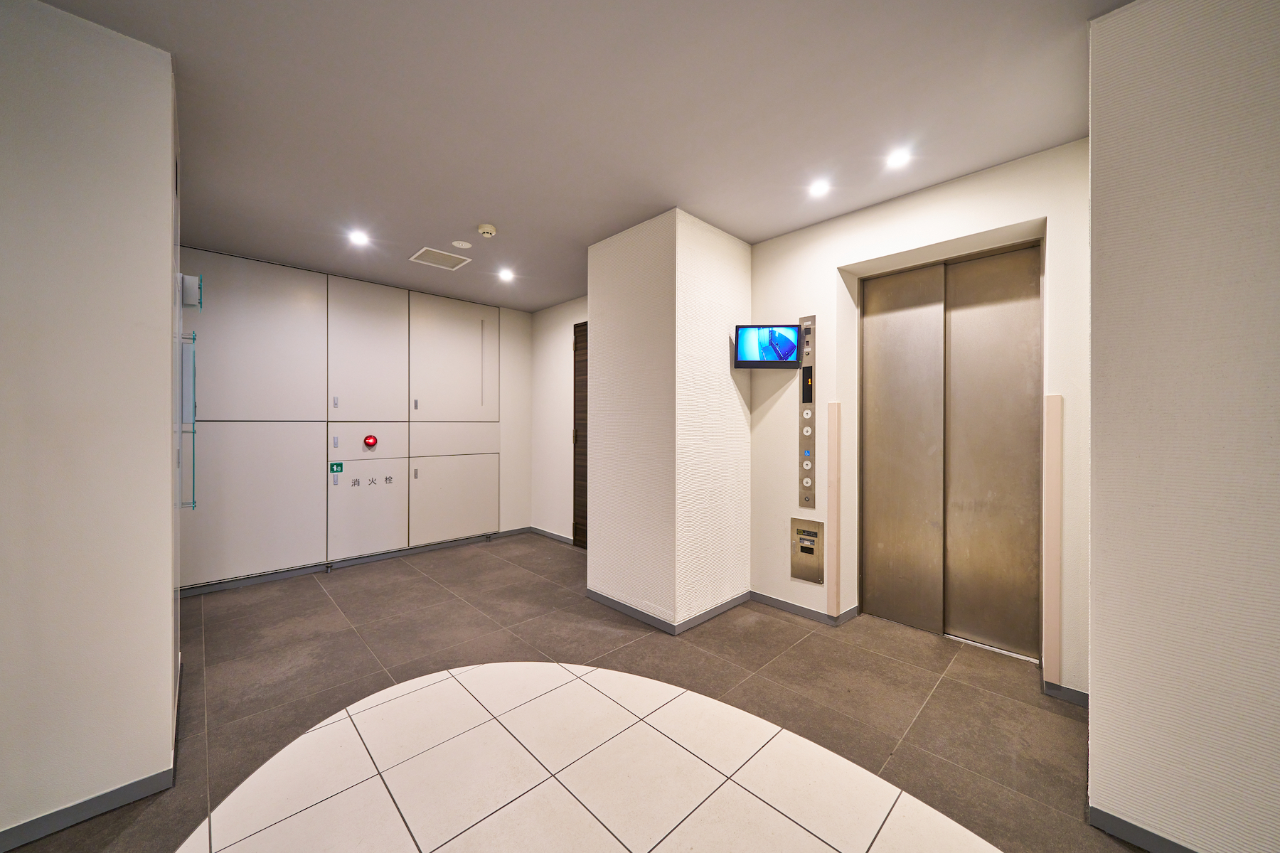 エントランスから住戸までのアプローチは、「我が家に帰ってきた」という安心感に包まれる優しい空間が形成されています。曲線を描くエントランスホールの壁面には、光沢を抑えた素材が使用され、さらにやわらかい照明が優雅さと落ち着きのある空間を演出。住戸まではタイルカーペットが敷き詰められた内廊下が続き、ホテルのような安心と洗練を与えてくれます。