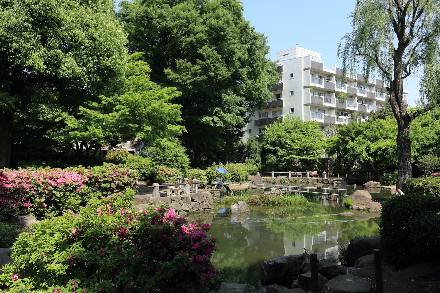 「中野」駅前の喧騒や商業施設を抜けて、フラットな道程で徒歩9分。「パークホームズ中野」は、穏やかな住宅地の一角に位置します。「中野」駅前には、サブカルチャーの聖地として知られる「中野ブロードウェイ」や、「中野マルイ」などの大型商業施設、スーパーが充実。「中野サンモール商店街」をはじめとした商店街は、大手チェーン店から昔ながらの個人商店などが軒を連ね、多くの人で賑わっています。「中野」駅北口の賑わいから歩を進めると、早稲田通りを境に街の表情は一変し、桜並木やケヤキ並木など、自然を身近に感じられる場所に。「中野四季の森公園」や「新井薬師公園」など、自然豊かな公園も点在し、落ち着いた環境が広がっています。