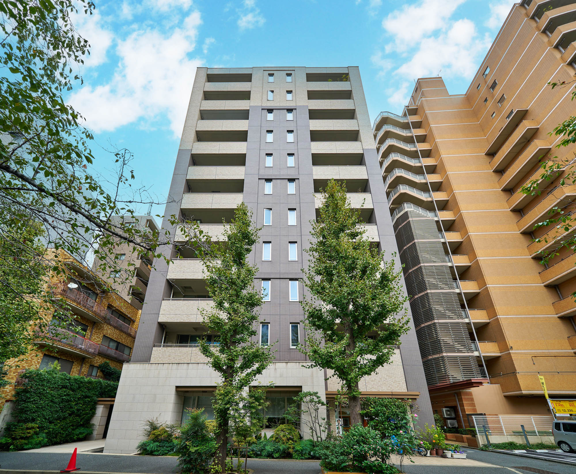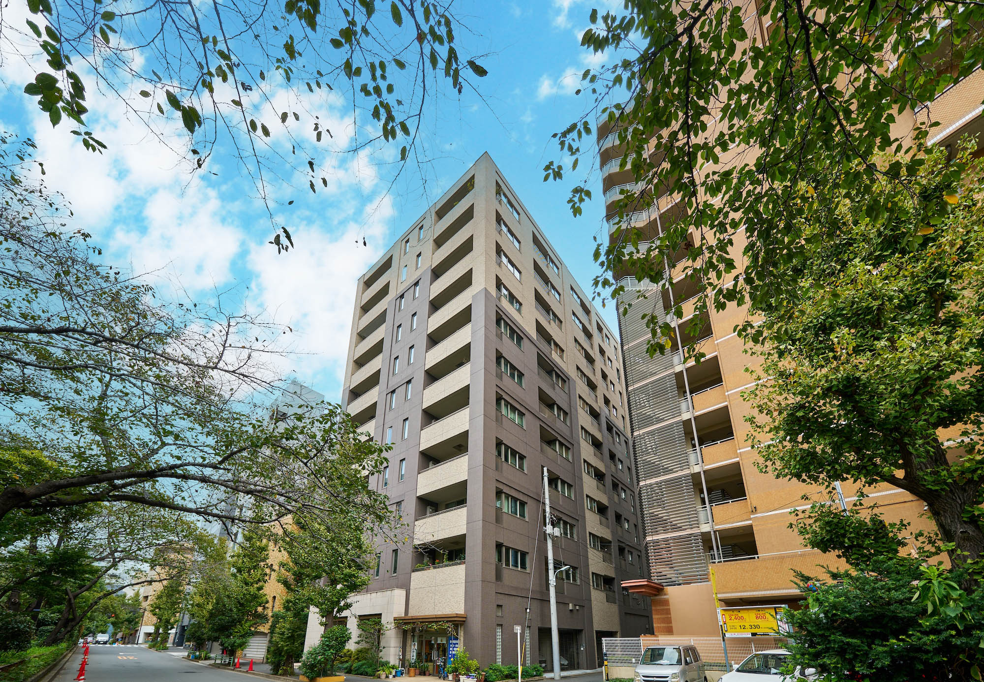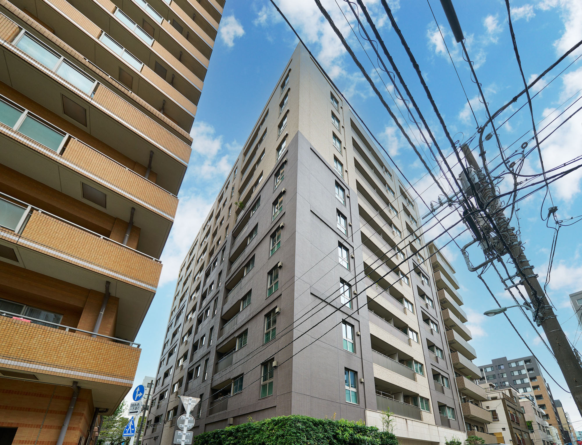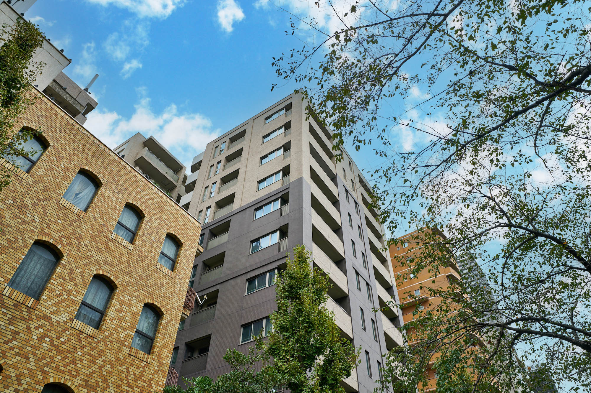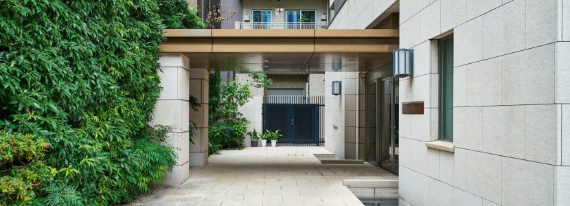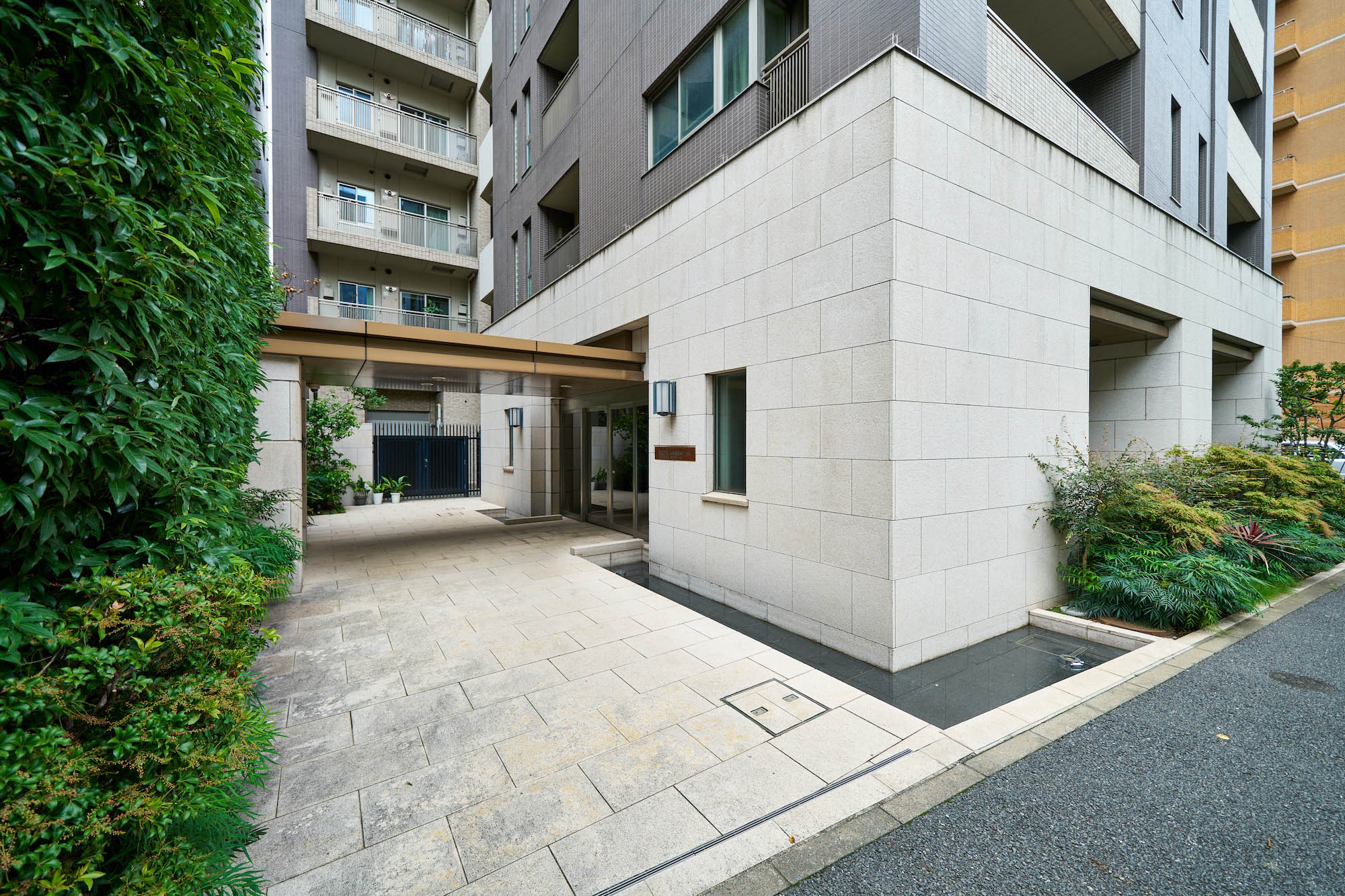 江戸時代から人が行き交い、日本を代表する老舗が本店を構える日本橋。粋な情緒や和の雰囲気だけでなく、明治以降は「日本銀行」の本店や「三井本館」のように、ヨーロッパの影響を受けた建築物も多く建てられ、和と洋が上手にシンクロしてきた街の歴史があります。「パークホームズ日本橋浜町二丁目リビオガーデン」はその歴史を大事にし、どこかなつかしく、うつくしく、そしてあたらしい、「ネオ・ノスタルジック」という考え方をデザインのコンセプトに掲げました。モチーフは、パリの運河沿いに佇むクラシックホテル。隣接する「浜町緑道」が、江戸時代には運河であり、周囲には洋食のレストランも多く、ヨーロッパの雰囲気もどことなく漂うこの地。まるで昔からそこにあったようなレトロなデザインと色調を取り入れています。エントランス廻りの外壁はクラシカルな石貼り、建物全体はブリックカラー(レンガ色)で統一。柱と梁は濃いフレームでモダンな印象を醸し出しています。クラシックな雰囲気を持つボディの上に、濃い色の新しい装を纏った、この地に相応しくも存在感のある佇まいです。