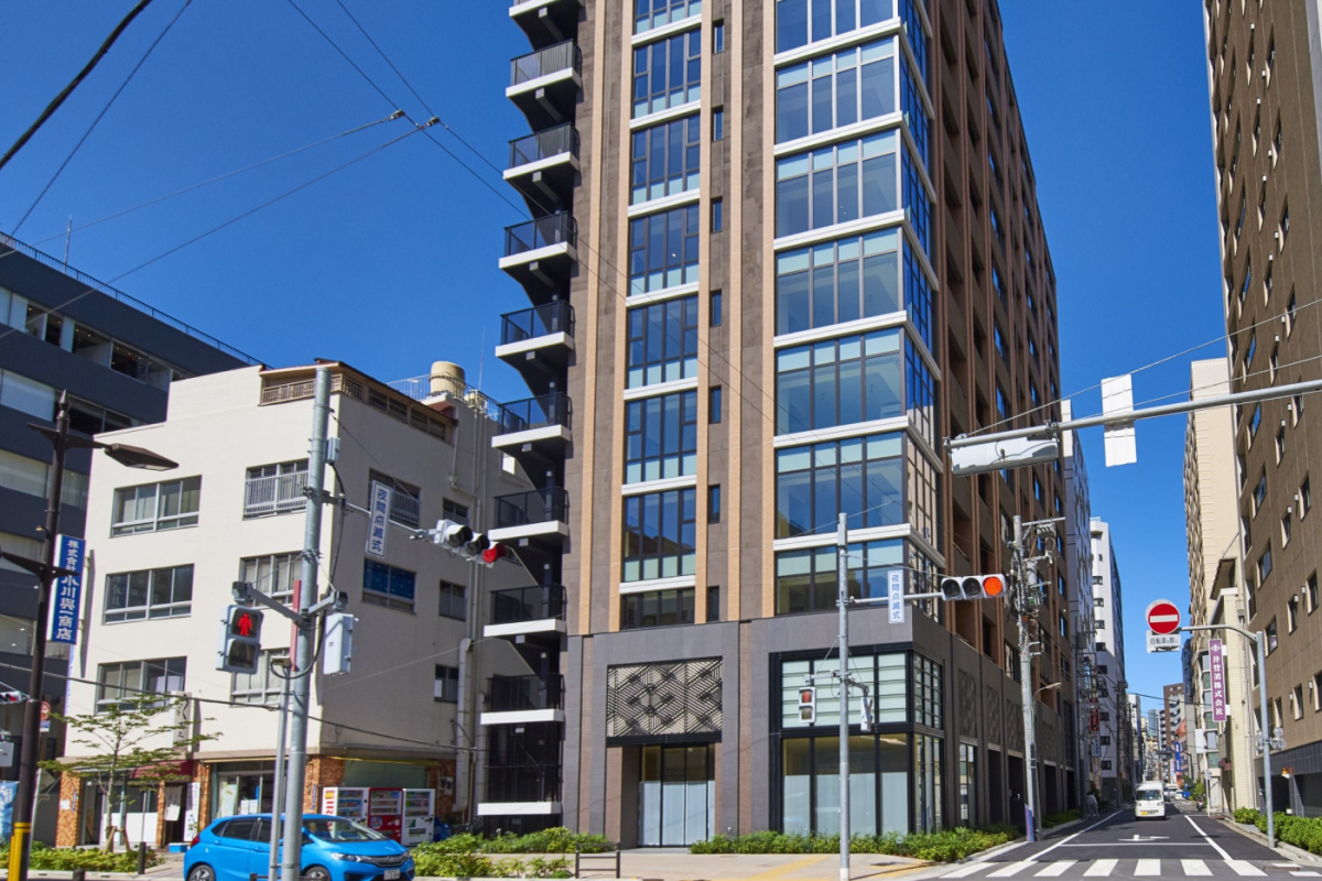 デザイン 色彩と素材感を大切にした、 ダイナミックかつ端正な外観デザイン。 江戸の町人文化の「活気」を表すために暖かみのある色彩を多用し、職人街でもあった名残を瓦タイルやアルミ鋳物などの「手仕事感」のある素材で表現。 これら色彩・素材感と、縦マリオンの連続や雁行した建物形状とを組み合わせた外観デザインは、ダイナミックかつ端正な表情を街に映し出します。