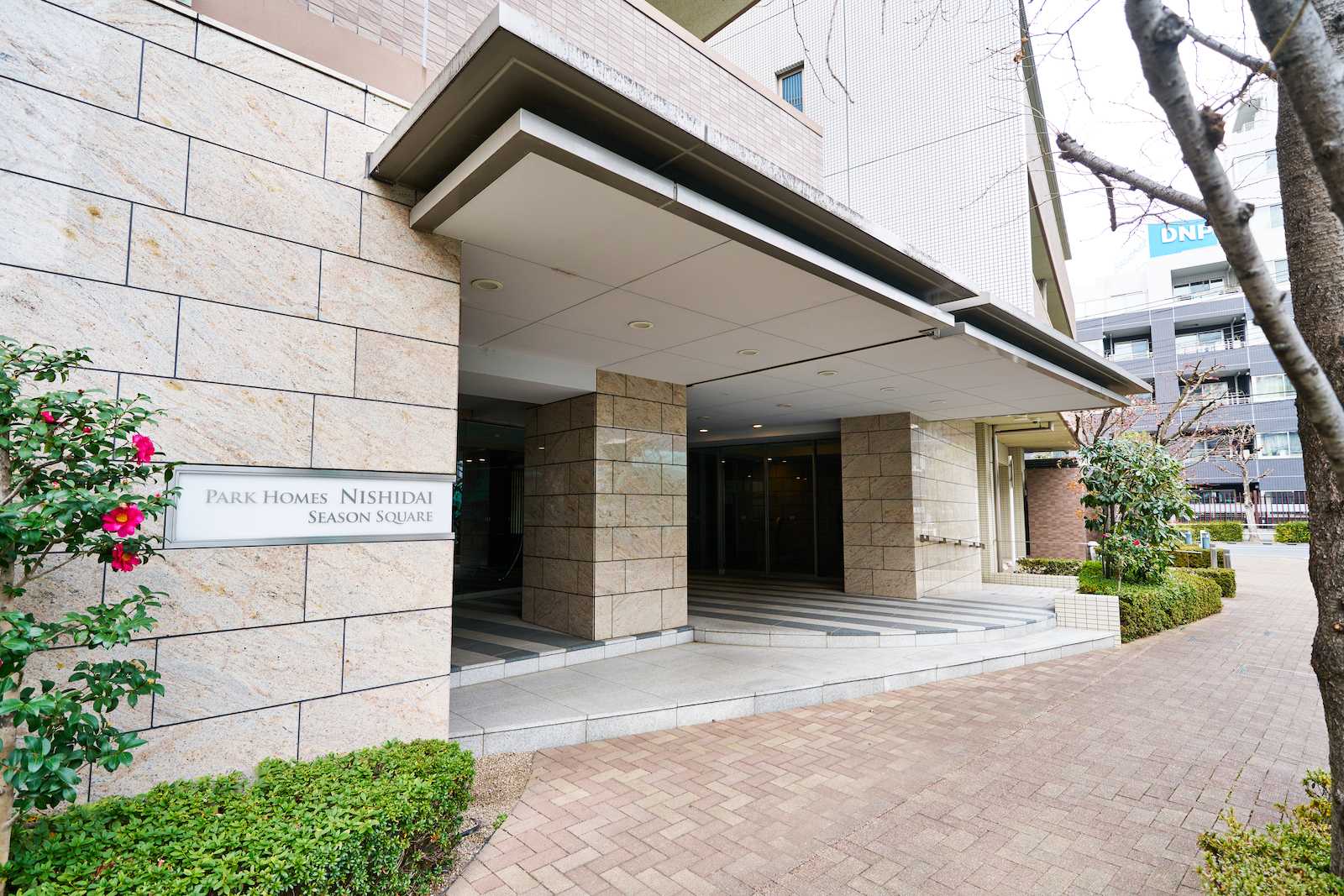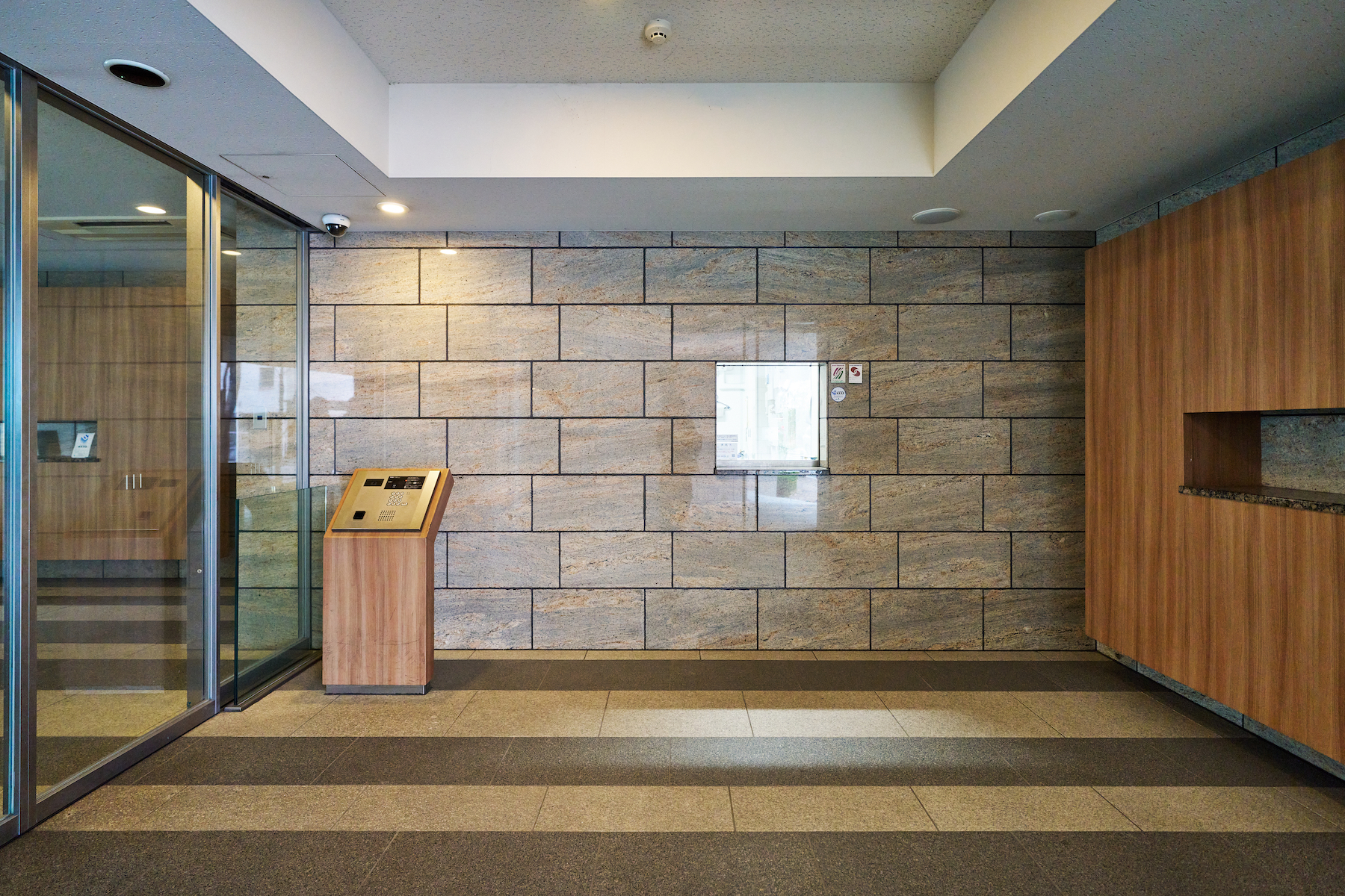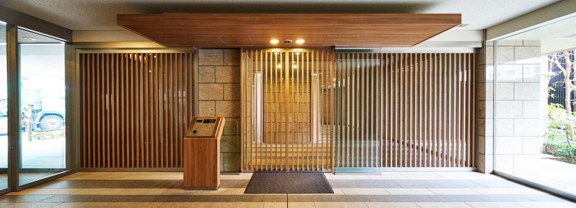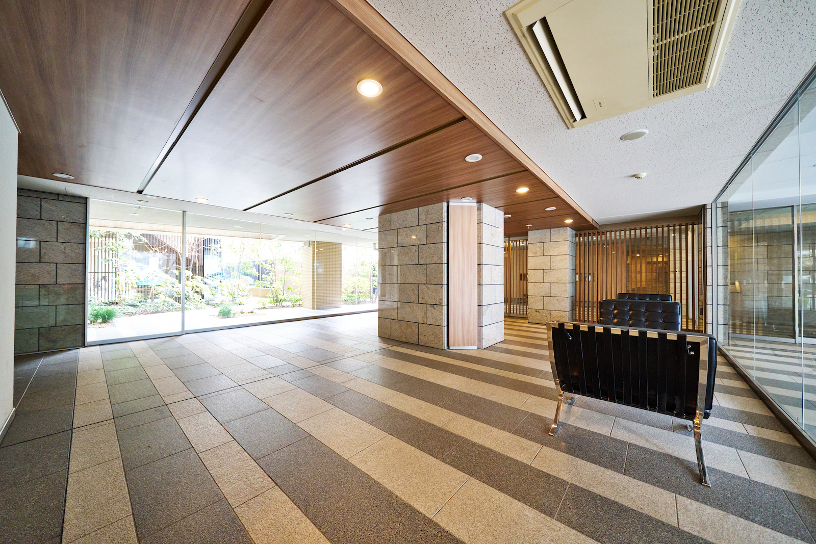 住まう方、訪れる方を優しく迎える静謐なエントランス。壁一面のピクチャーウィンドウの奥にシーズンガーデンを配したラウンジとエントランスホール。上質でスタイリッシュな佇まいとともに、寛ぎの邸宅にふさわしい深い安らぎを兼ね備えています。