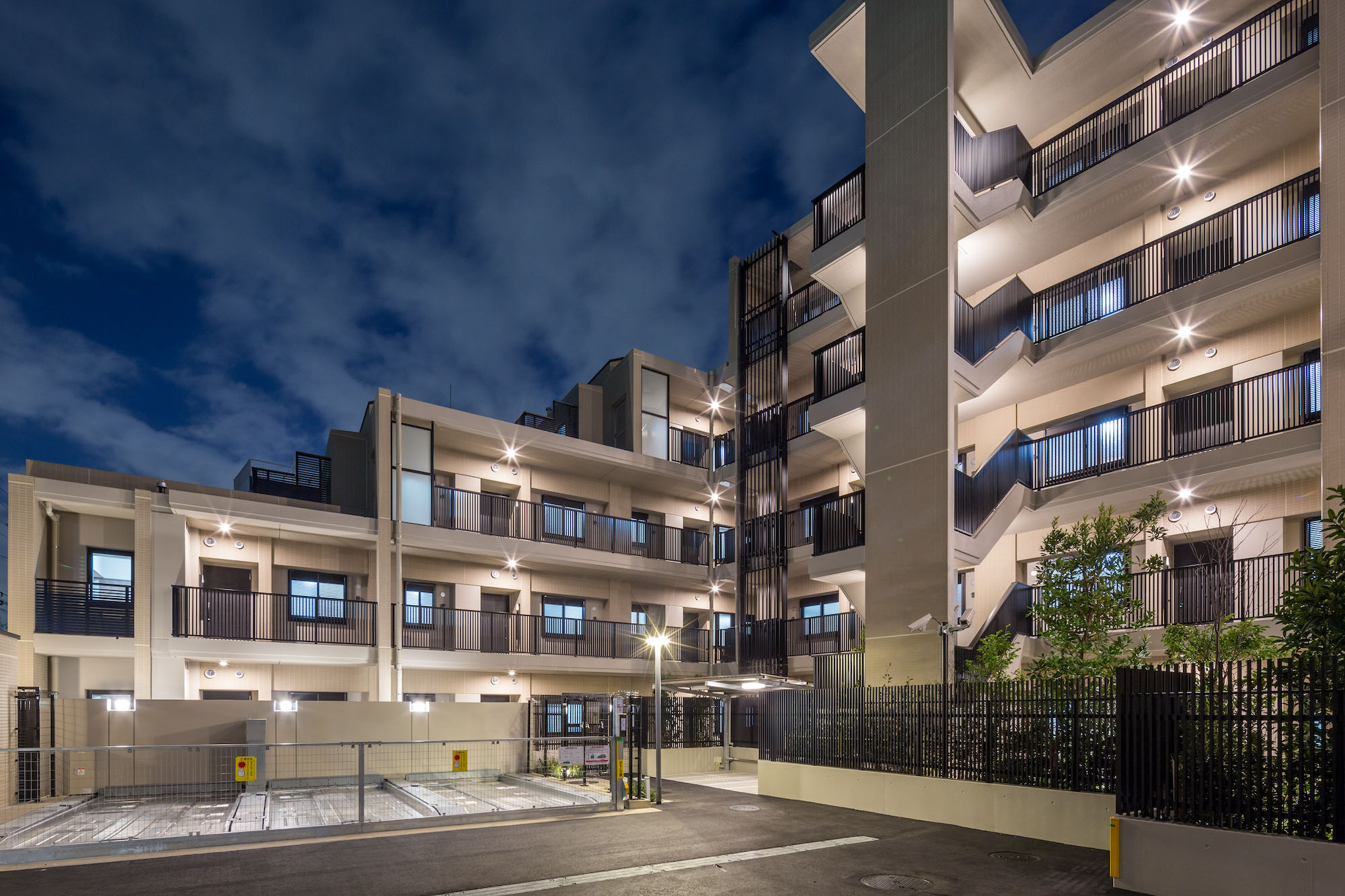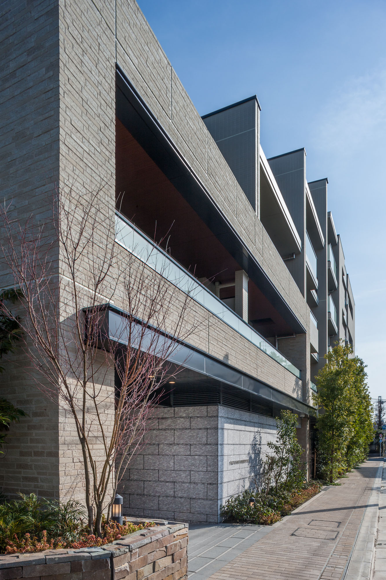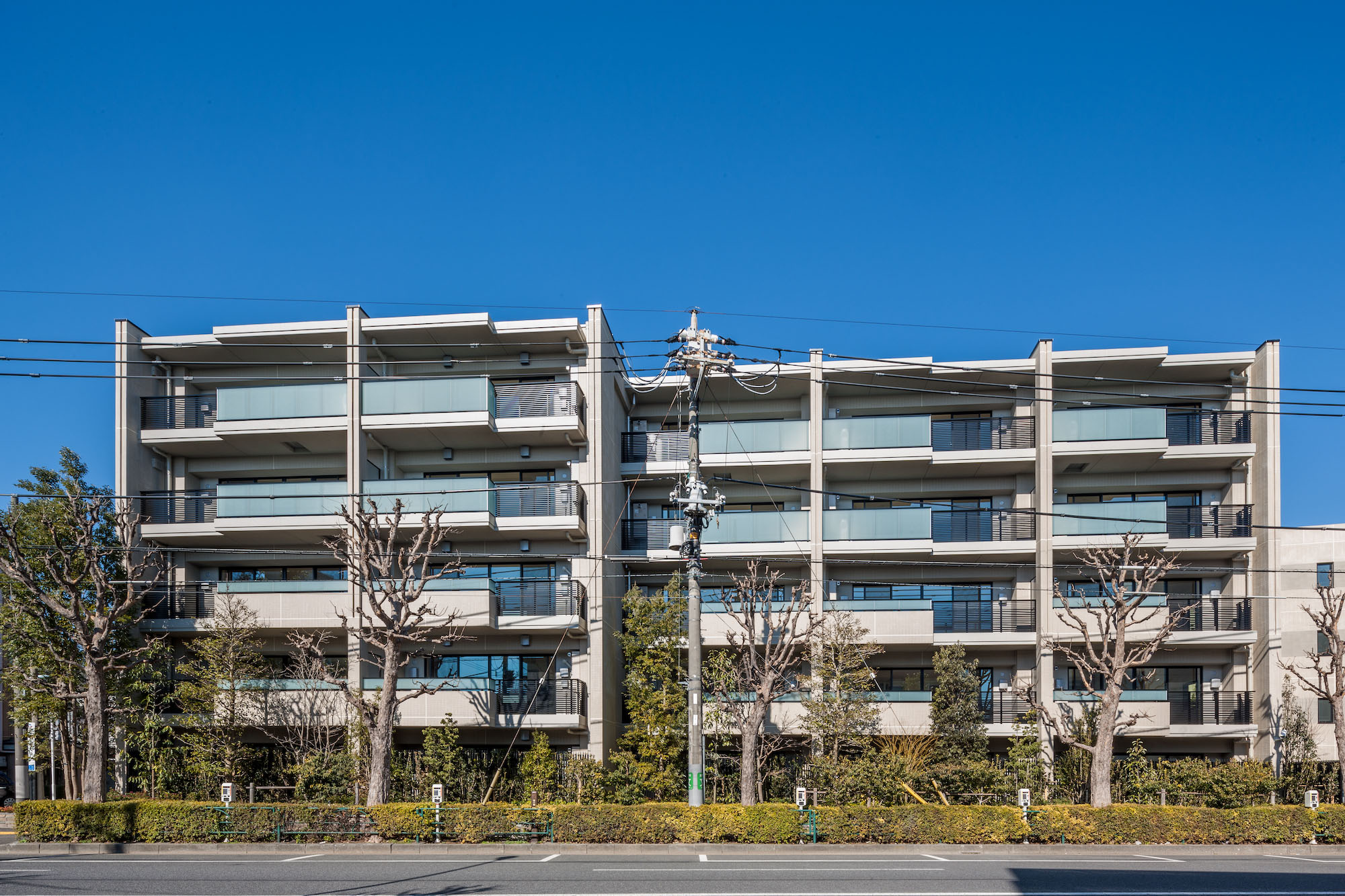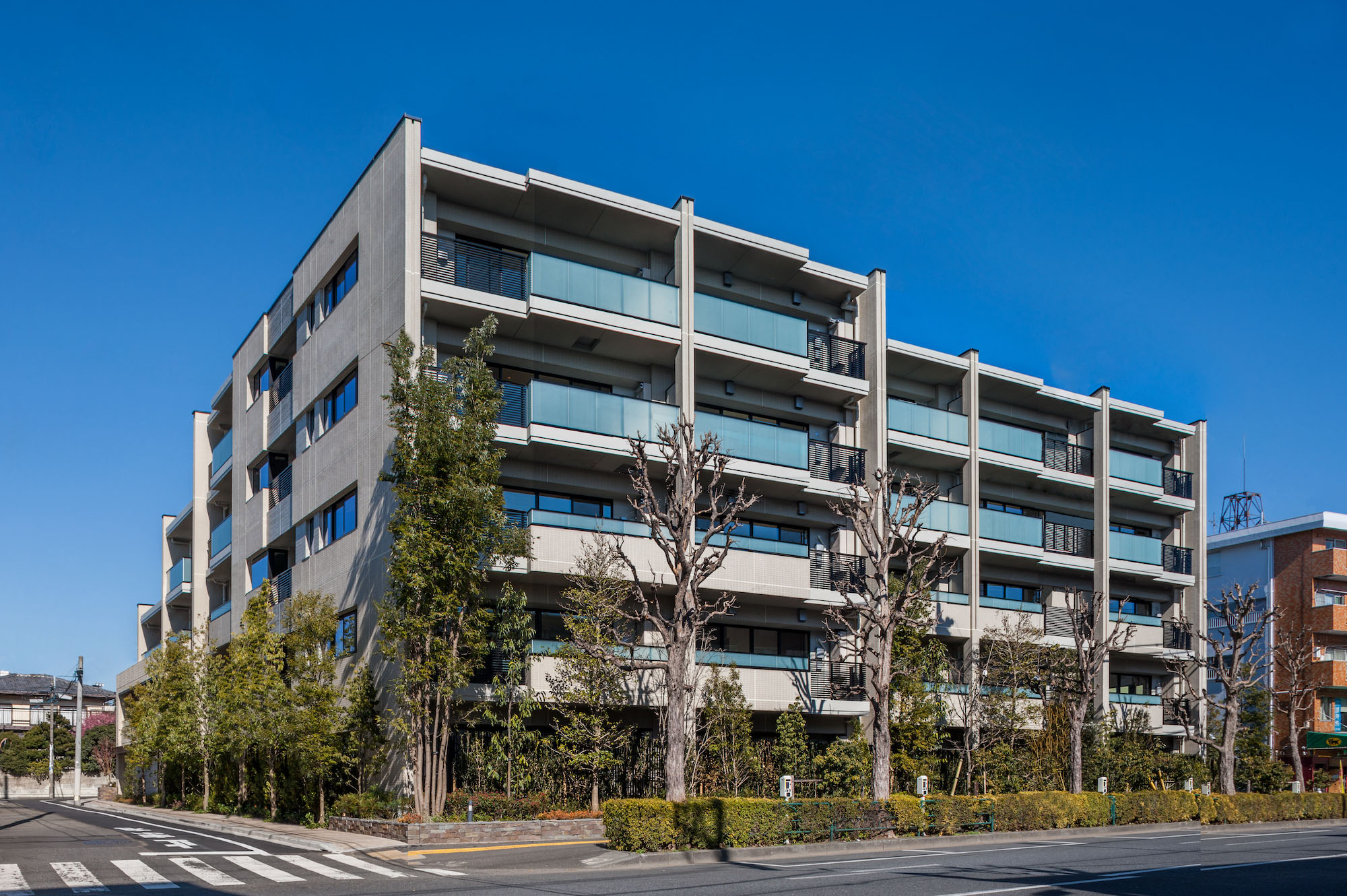 閑静な周辺環境に調和する、低層フォルムを纏う「パークホームズ西永福」。陰影を湛えた彫刻的な外観にはベージュの砂目地タイルを配し、凛とした中にも穏やかさの感じられる表情を演出しています。三方が道路に接する、独立性あふれる角地に位置し、豊かな採光・通風、開放感とプライバシー性の高さを実現。敷地内にはきめ細やかに植栽が施され、光と風と自然に彩られた、豊かなレジデンスがデザインされています。