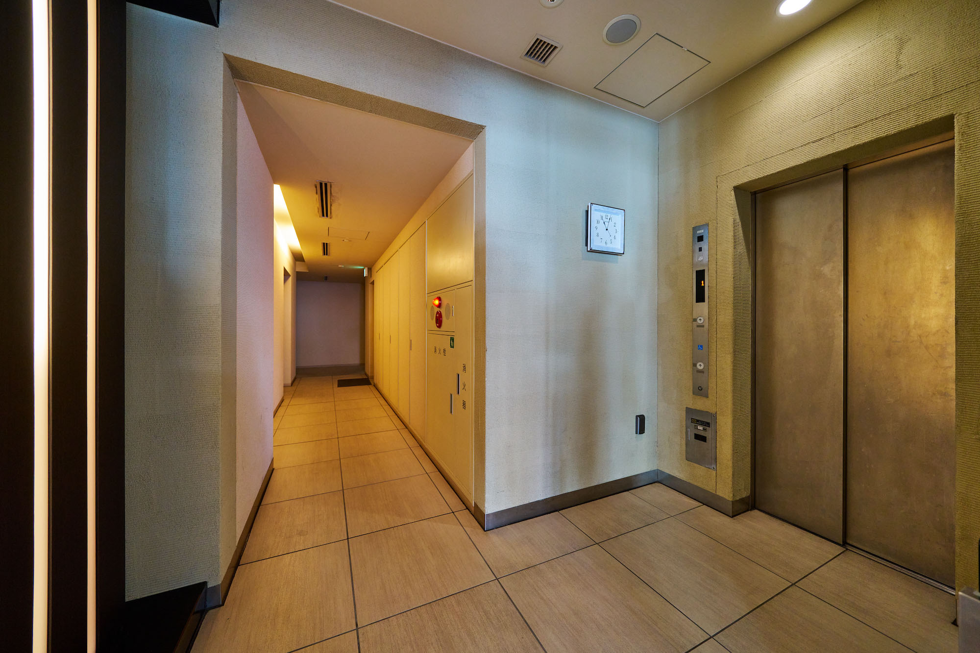 エレベーターホール、内廊下