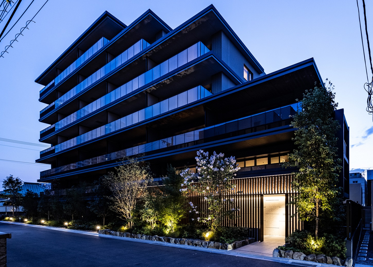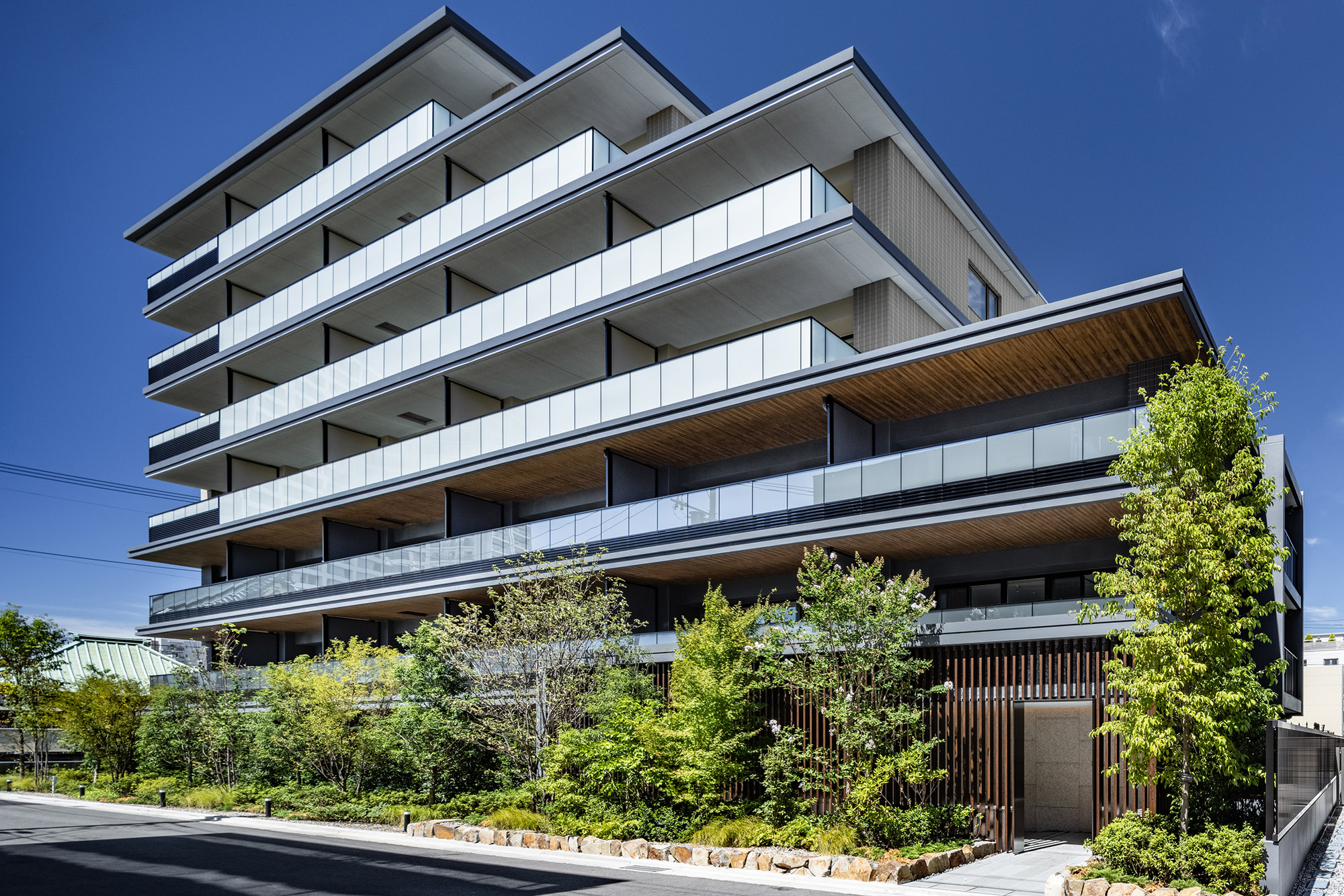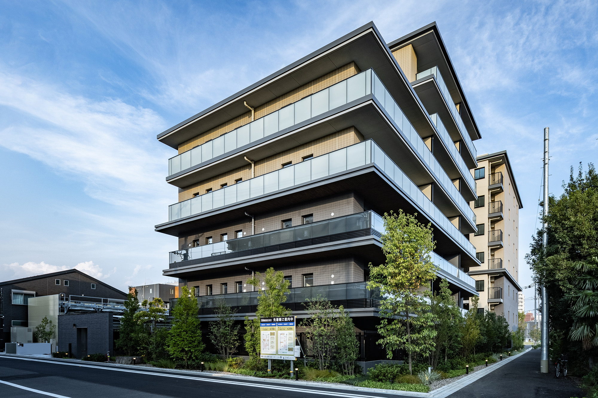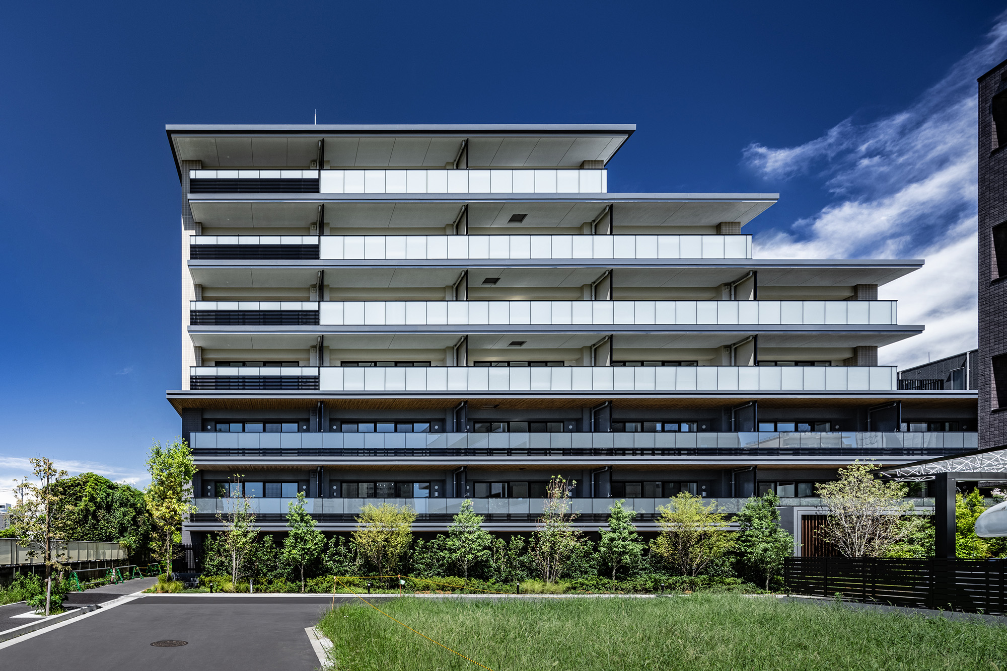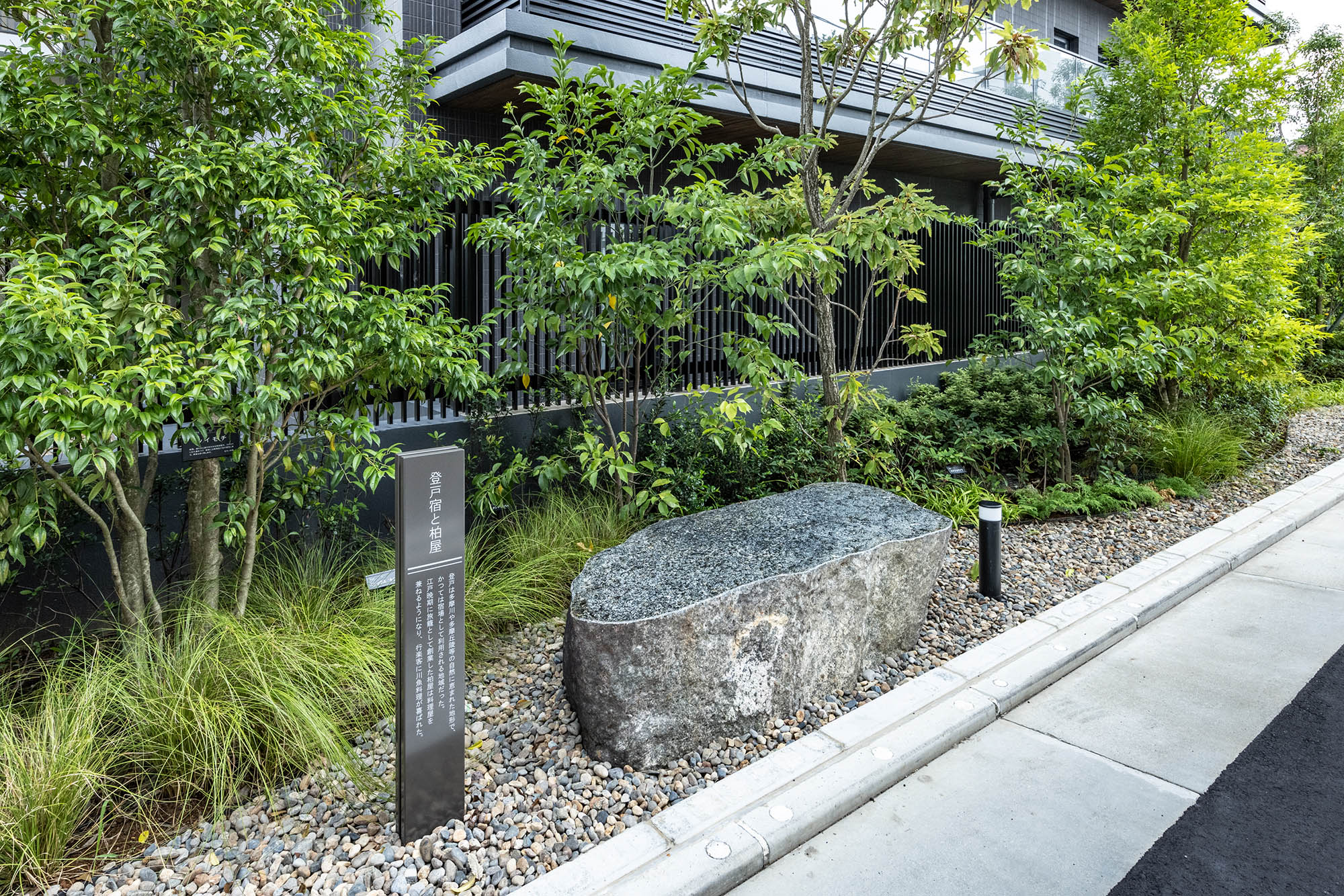足元の植栽は「自然の落ち着き」を、低層部は「歴史を感じる重厚感」を、上層部は「新しい街の洗練」をイメージした3層構成のファサードデザイン。豊かな自然と歴史を持つ場所に、新しい街が生まれていく——3層のレイヤーを積み重ねることで、そのすべての要素をさりげなく表現しています。水平ラインが際立つデザインは、すっきりした暮らしを予感させます。