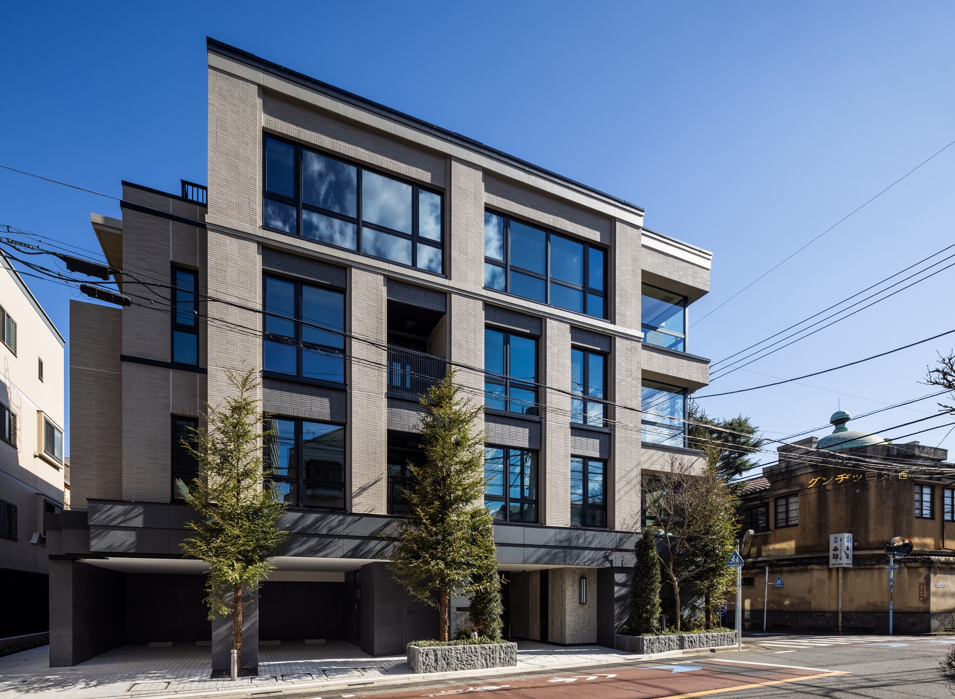 デザイン この地にあるべき、品格の佇まい。 荻窪三丁目に今も残る別荘や邸宅の特徴である洋館様式を取り入れた外観デザイン。均等に配された壁柱と縦長窓、自然石仕上げの基壇部、シャープなコーナーウインド等の意匠が、この地にふさわしい威厳ある佇まいを紡ぎ上げています。