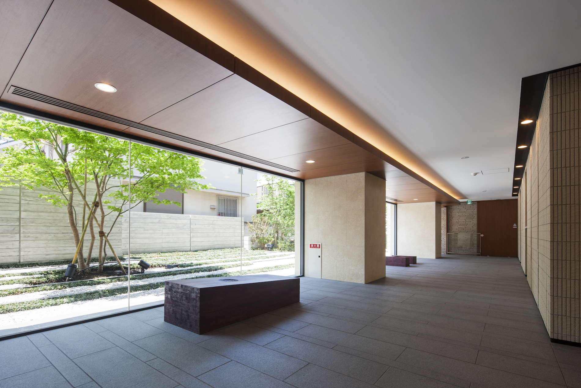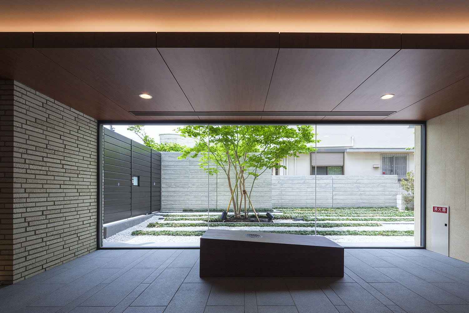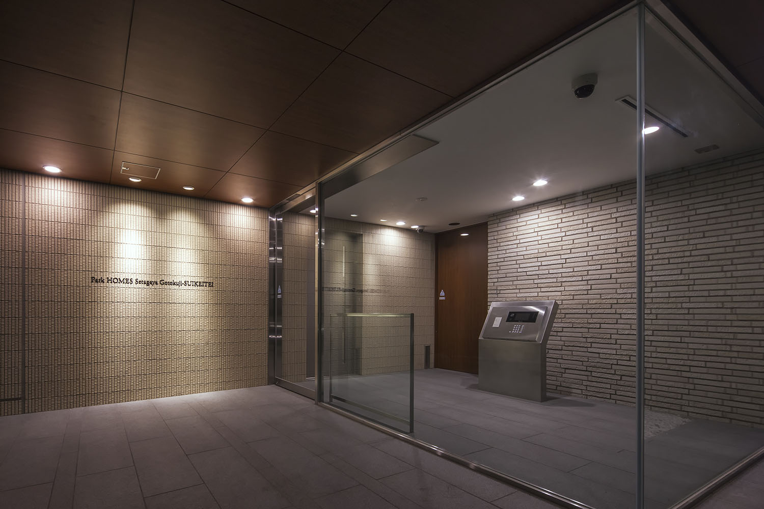 豪徳寺の地にふさわしい、自然の潤いに満ちたエントランス。風格あるキャノピーをくぐり、ガラスウォールの風除室を抜けると、迎えるのは2つのガーデンに面した大きなガラスウォールが印象的なエントランスホールです。四季折々の植栽にエスコートされ、心やすらかに私領域へと至る、贅沢な共用空間です。