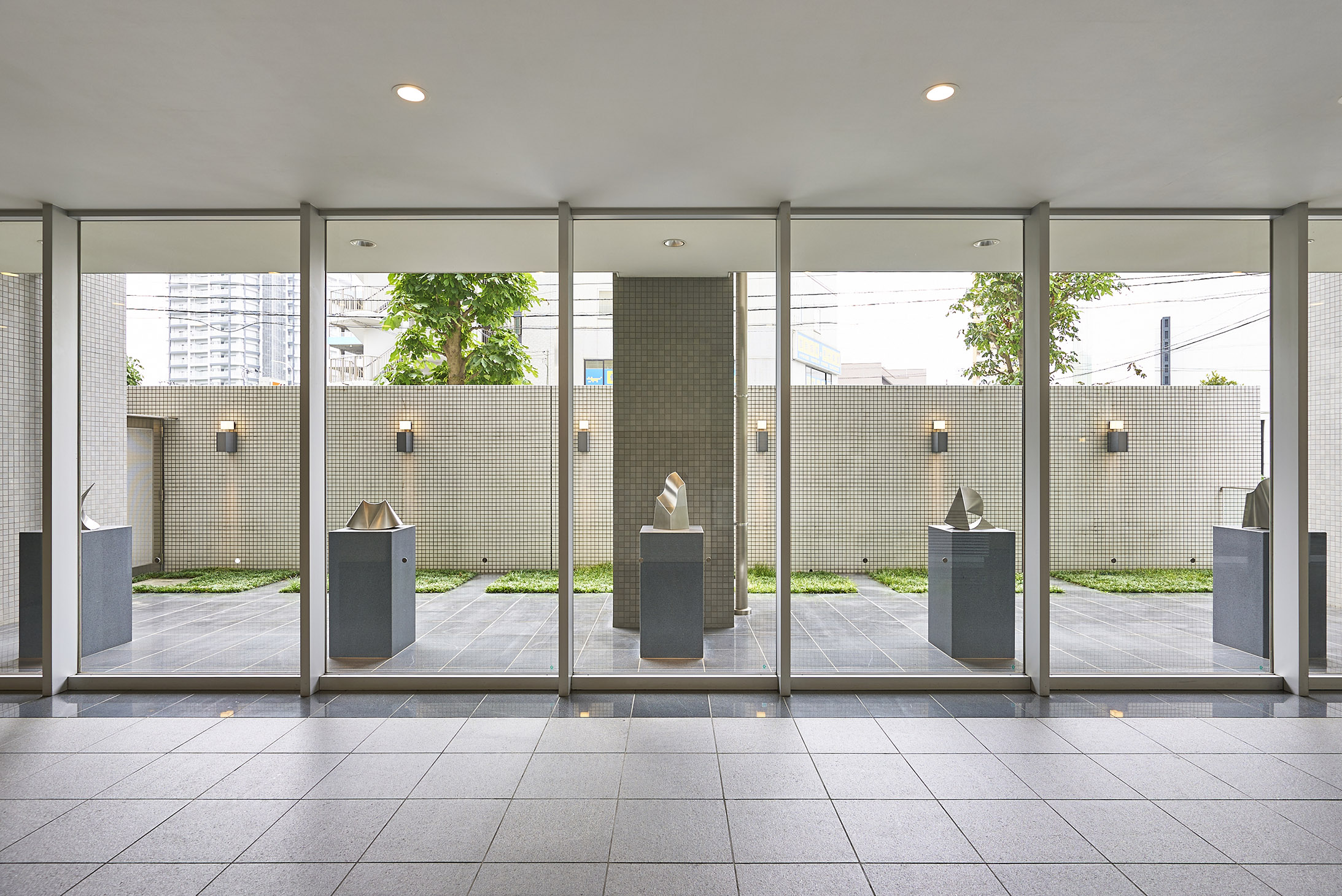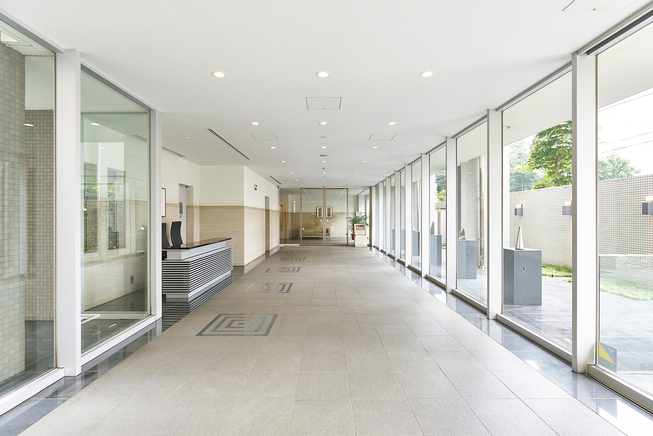 エントランスには趣きゆたかな質感のある壁石と、御影石仕上げの床が施され、建物内部へと優雅に導きます。その先に広がる「エントリーギャラリー」は、石の床とガラスの壁との異なった素材の対比とともに、連続性のある空間で奥行きを広げた、上質な共用スペースです。ガラスの外の「ギャラリーコート」には、研ぎ澄まされたフォルムのオブジェが並び、硬質の美を放っています。他にも、大理石の壁とニッチのある柱が風格と趣を醸し出すエントランスホールや、親類や友人の方の宿泊に利用できる1LDKタイプのゲストルーム、ミニキッチン付きで多目的に使える集会室など、ステイタス・スタイルの彩りに包まれた共用スペースが備えられています。
