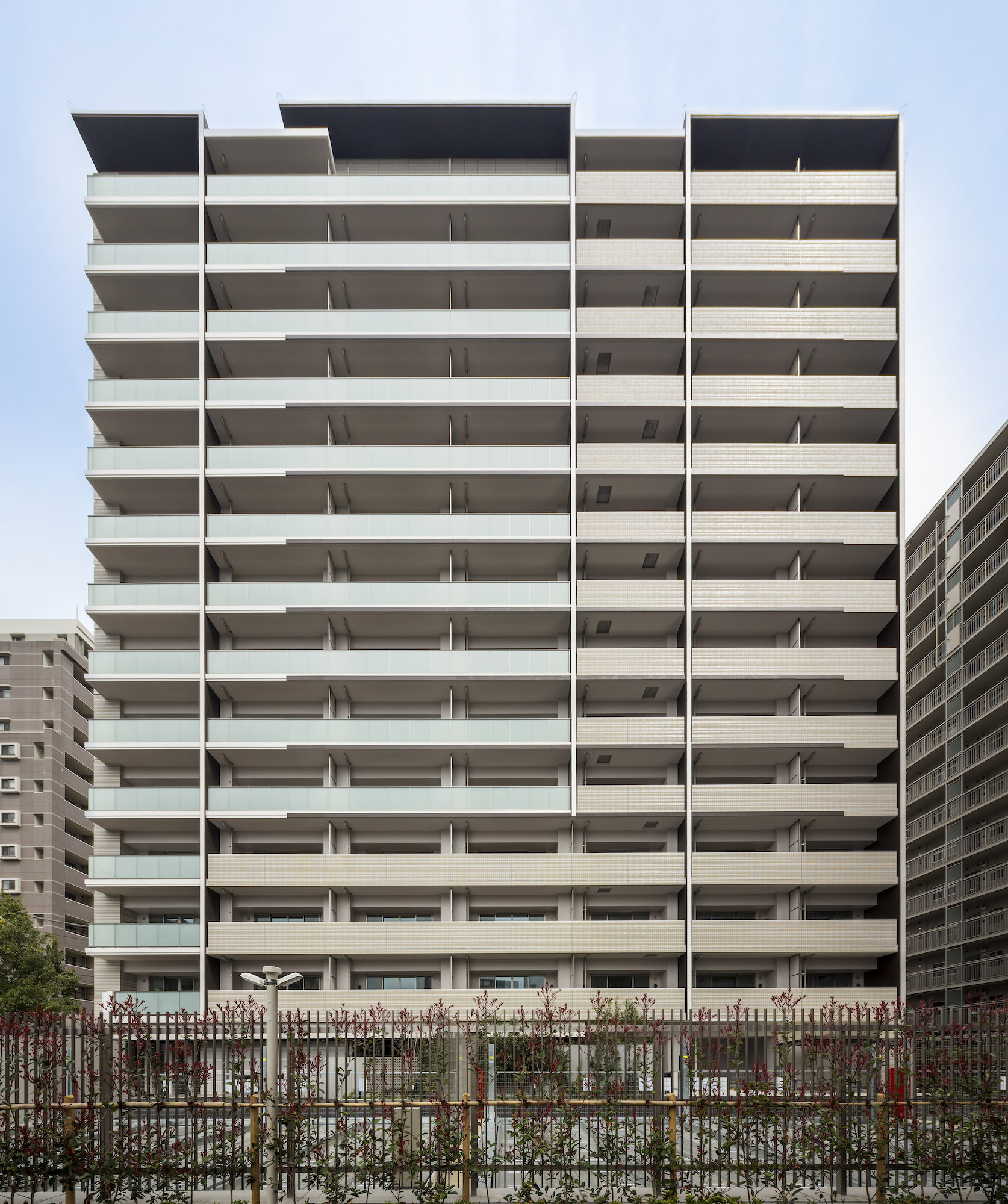「パークホームズ志木ザレジデンス」は、「CLASSIC」「MODERN」「ACADEMIC」の3つをコンセプトにデザインされています。外壁は淡いベージュを基調とし、バルコニーのガラス手摺りやマリオンがアシンメトリーに施された端正な顔立ち。エントランス部分は重厚感のあるしっかりとした「構え」で、訪れる人を格調高く出迎えます。