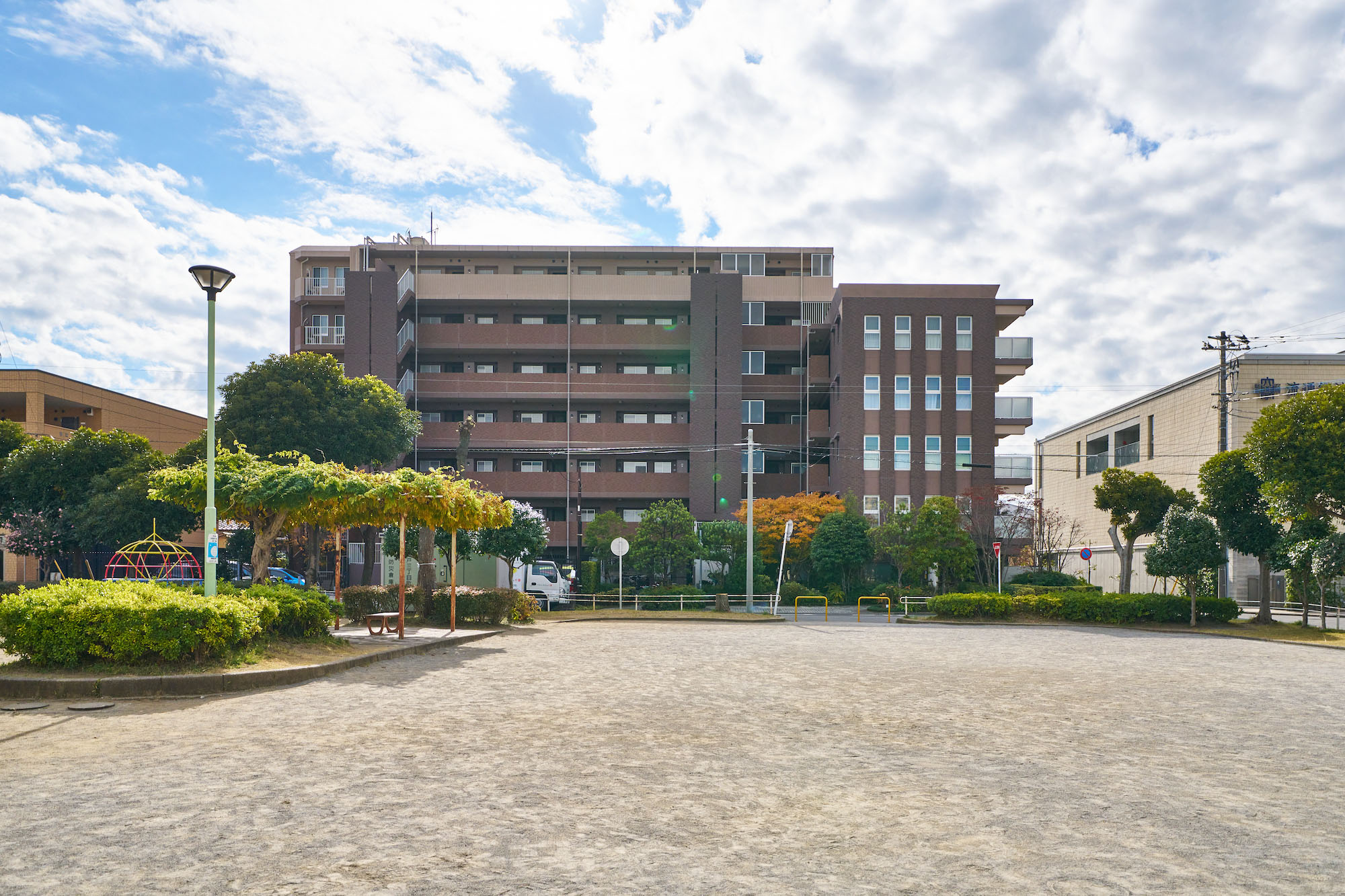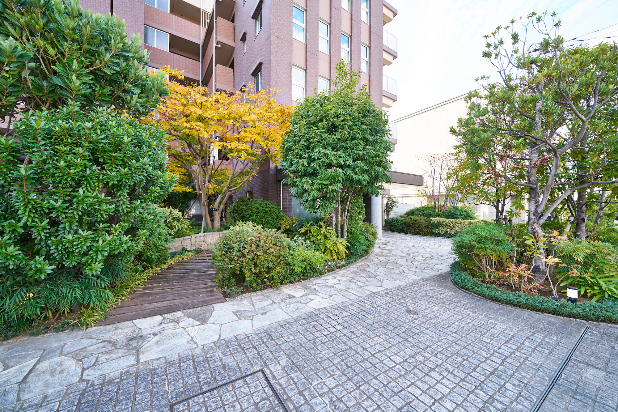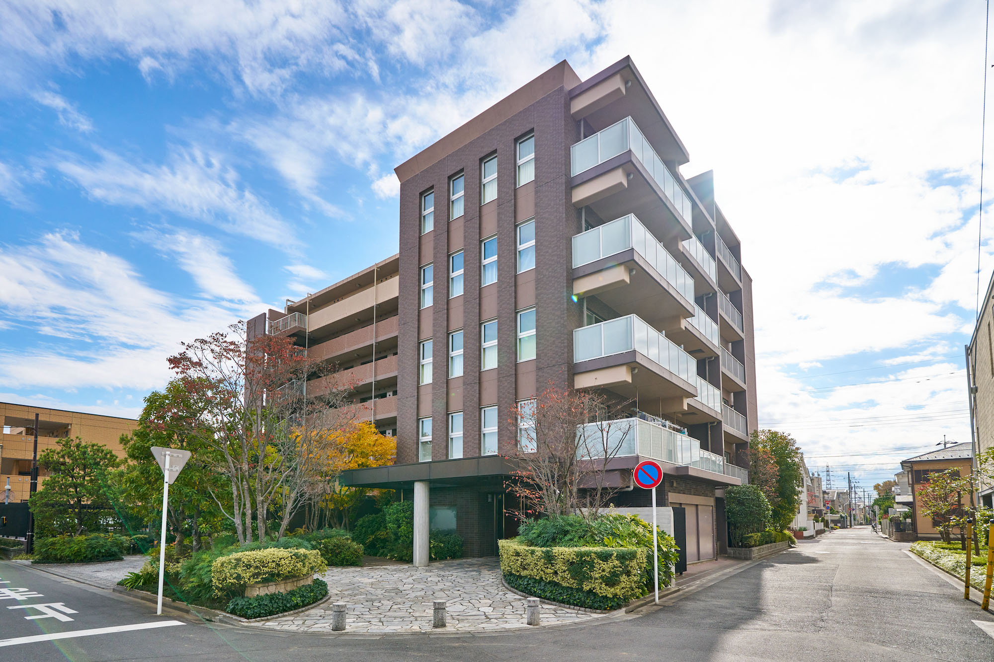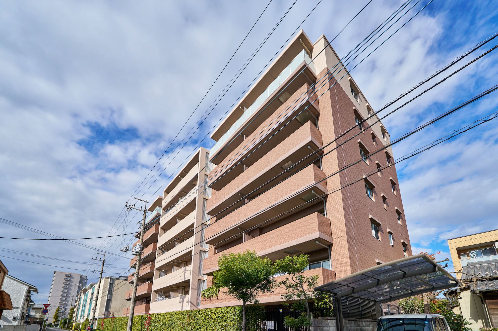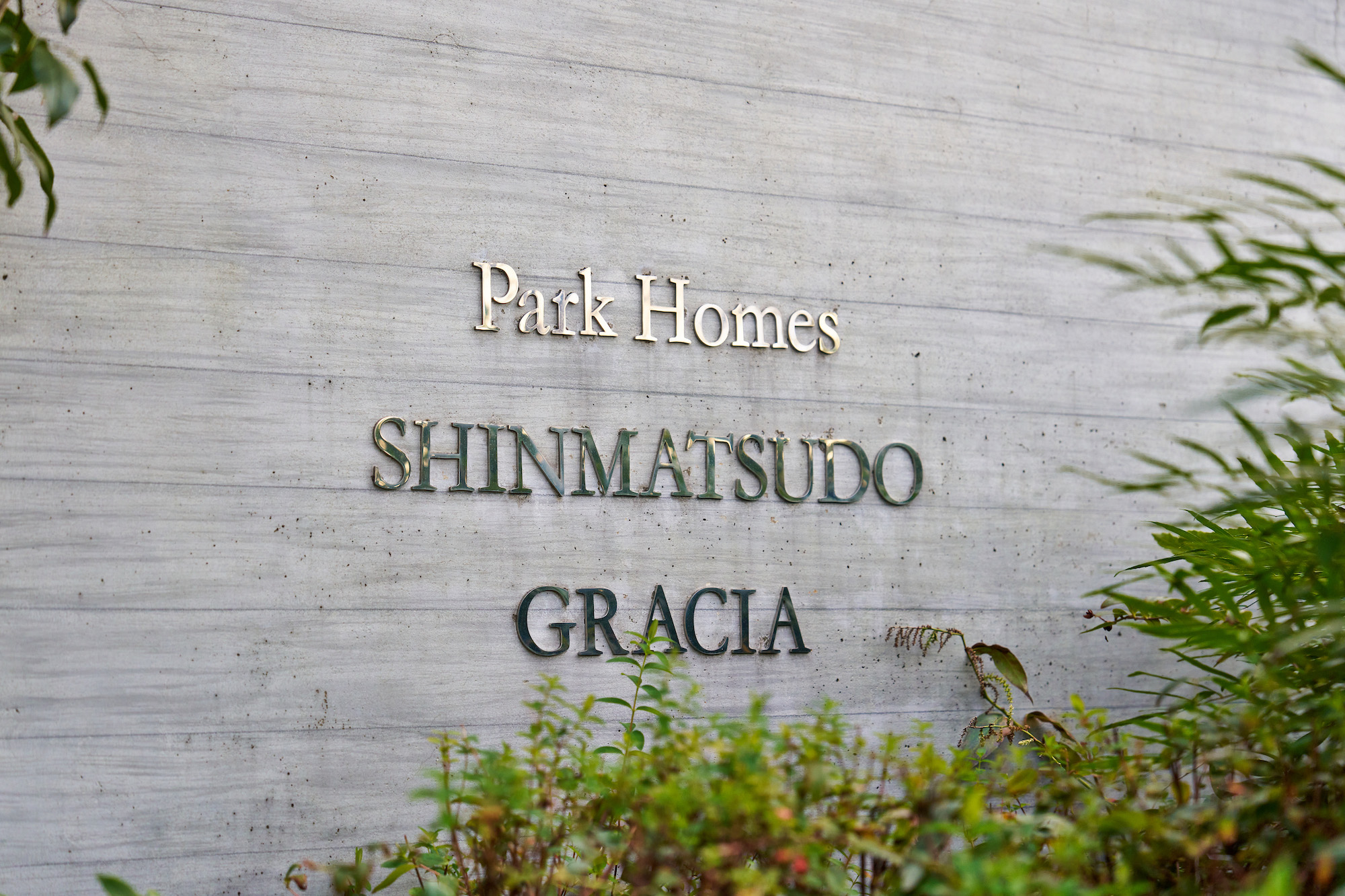 「パークホームズ新松戸グレイシア」は、北側は公園に隣接、南側は第一種低層住居専用地域の住宅街が広がる、開放感に満ちた立地に建っています。外観デザインは、そんな開放感や、緑や空とのつながりを意識し、絵になる邸宅を目指して設計されました。外壁は邸宅にふさわしい気品を感じさせるシックなブラウンを基調とし、エントランス前にはゆとりあるスペースを設け、豊かな植栽を配置。潤い溢れる敷地計画が美しい街並みを創り上げ、住戸からのワイドな眺望が家族の豊かな暮らしを育みます。