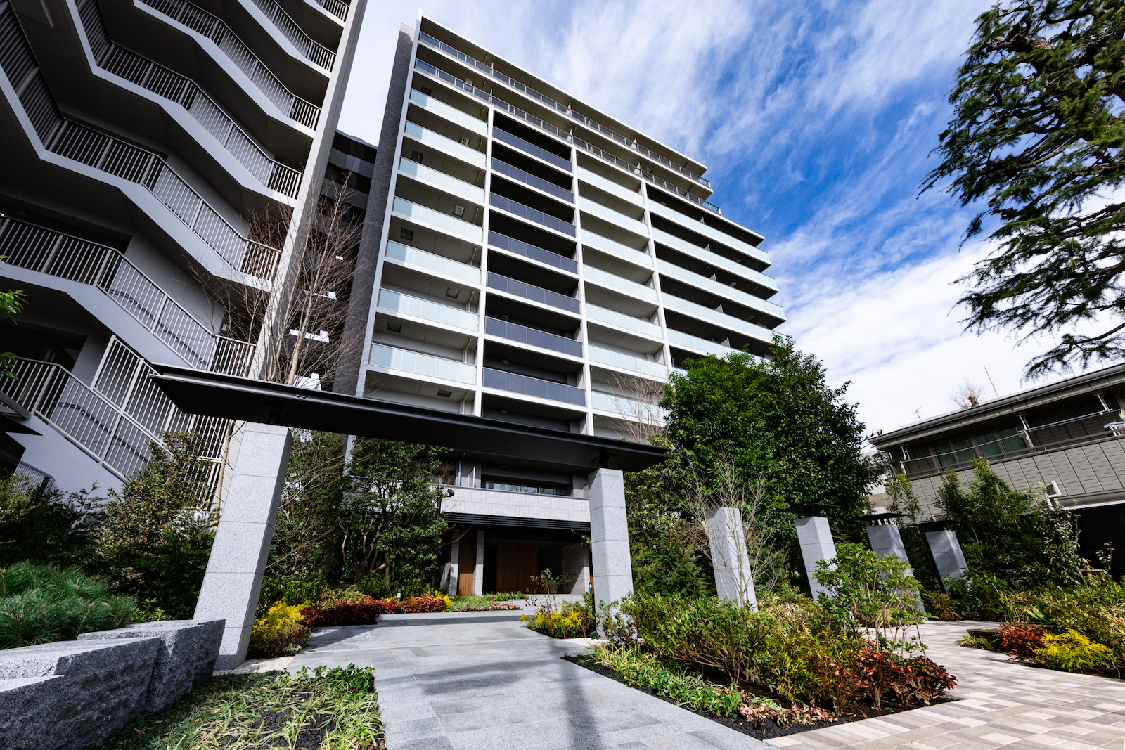 デザイン 潤いと寛ぎに満ちた、緑豊かなレジデンス。 美しい自然に包まれたアプローチ。そしてその先に佇む、都市的な洗練と確かな品格を備えたレジデンス。歴史ある邸宅地に調和しながらもシンボルとしての個性を放つ、住む誇りあふれる邸宅です。